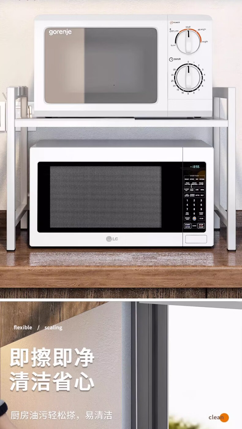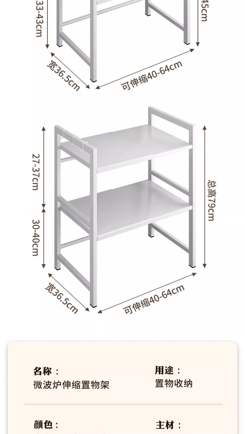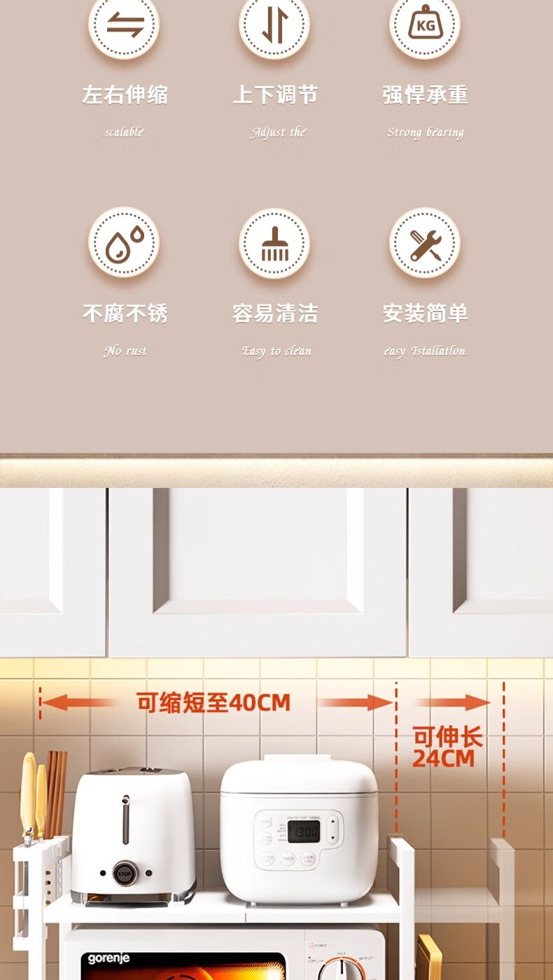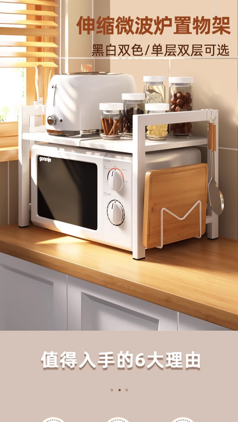 JINXIUBAINIAN kitchen rack retractable microwave rack rack oven household rice cooker countertop storage rack bracket single layer white telescopic type +6 hooks