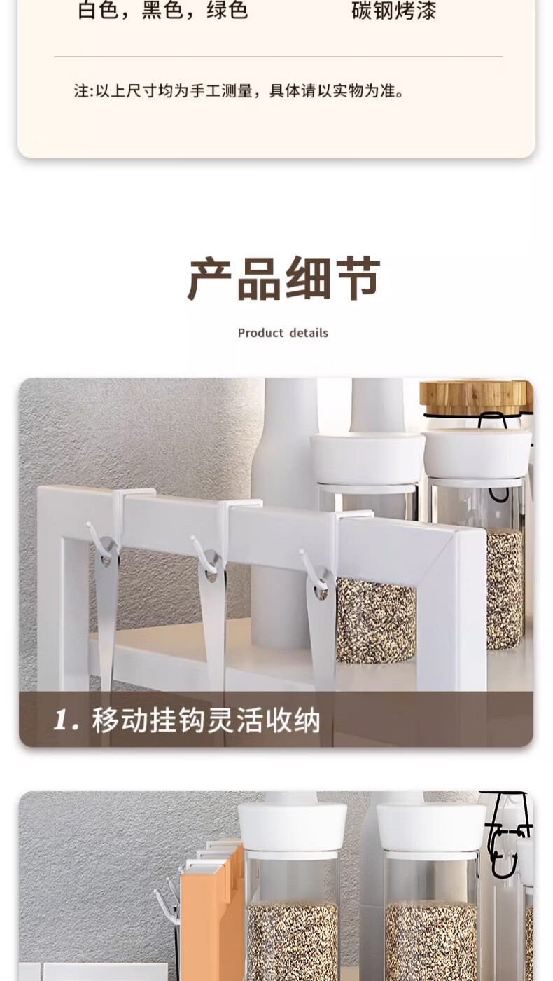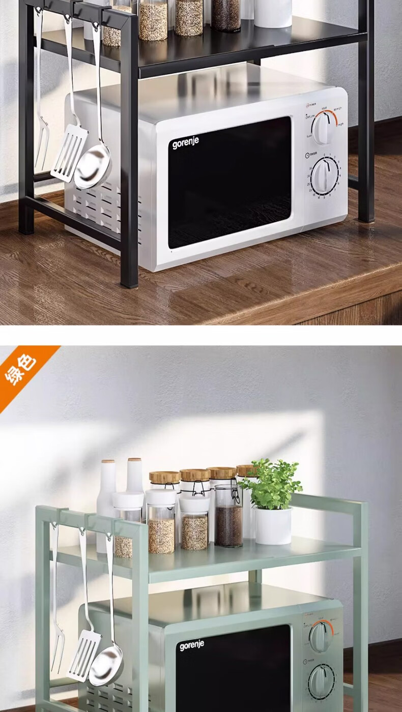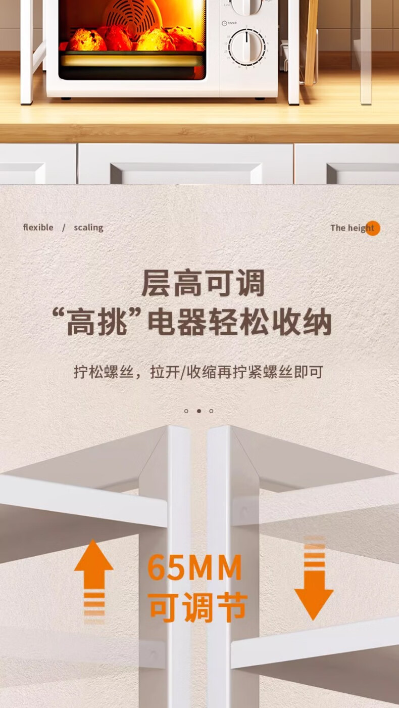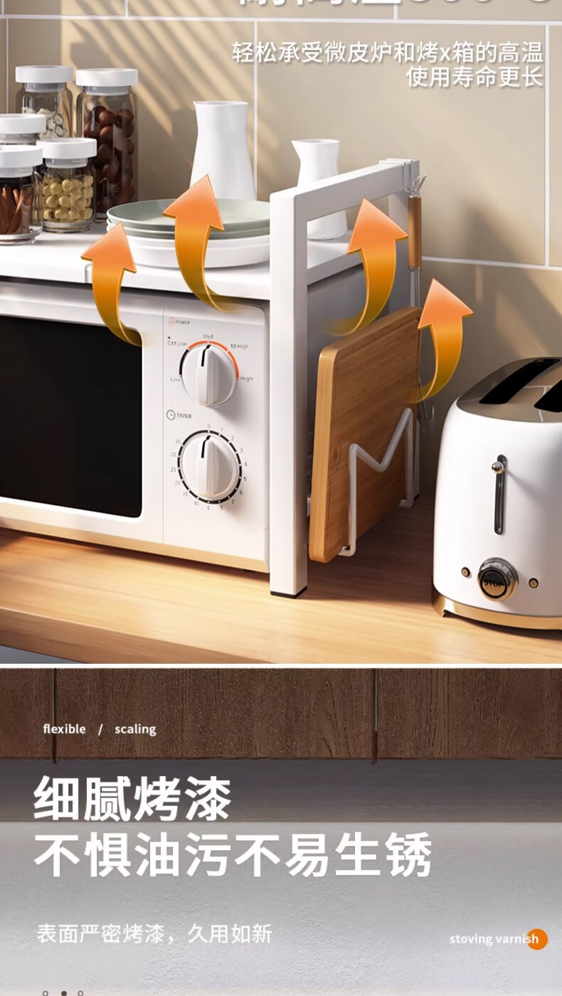 JINXIUBAINIAN kitchen rack retractable microwave rack rack oven household rice cooker countertop storage rack bracket single layer white telescopic type +6 hooks
