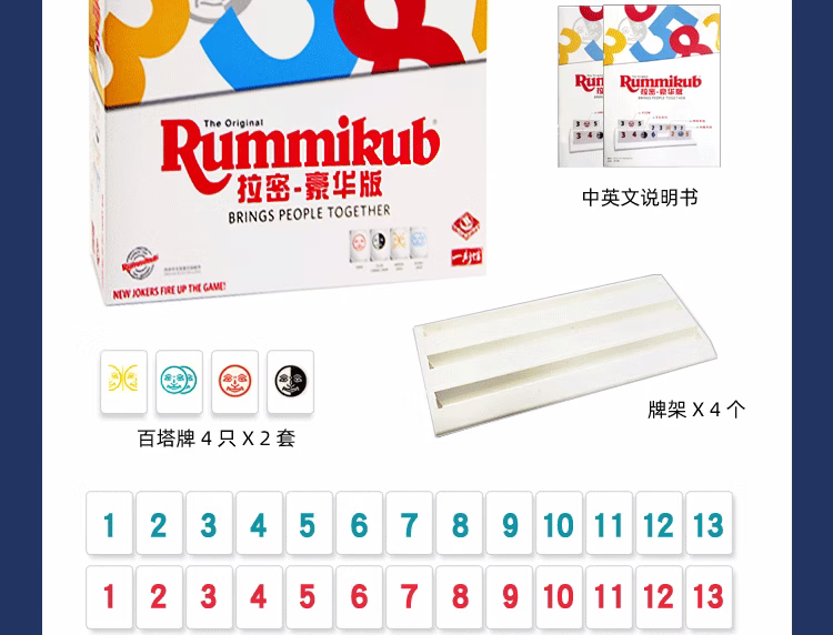 Mojikuan Rami Deluxe Edition Flagship Store Genuine Board Game Toy Children Israeli Parent-Child Educational Tabletop Game Rami (Deluxe Edition Suitable for 7 Years+
