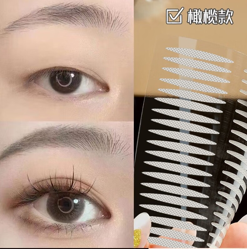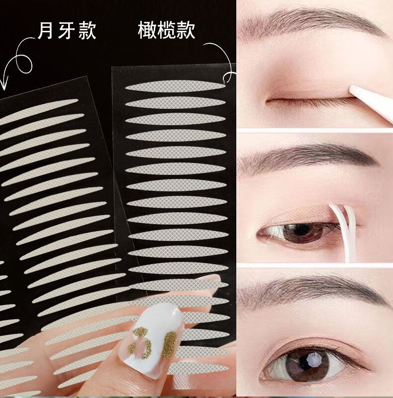 BLUETHIN Lace Double Eyelid Stickers Natural Invisible Matte Traceless Crescent Olive Shape Bubble Eye Single Eyelid Double Eyelid For Men and Women Half Moon Shape 3 sheets (144 stickers)