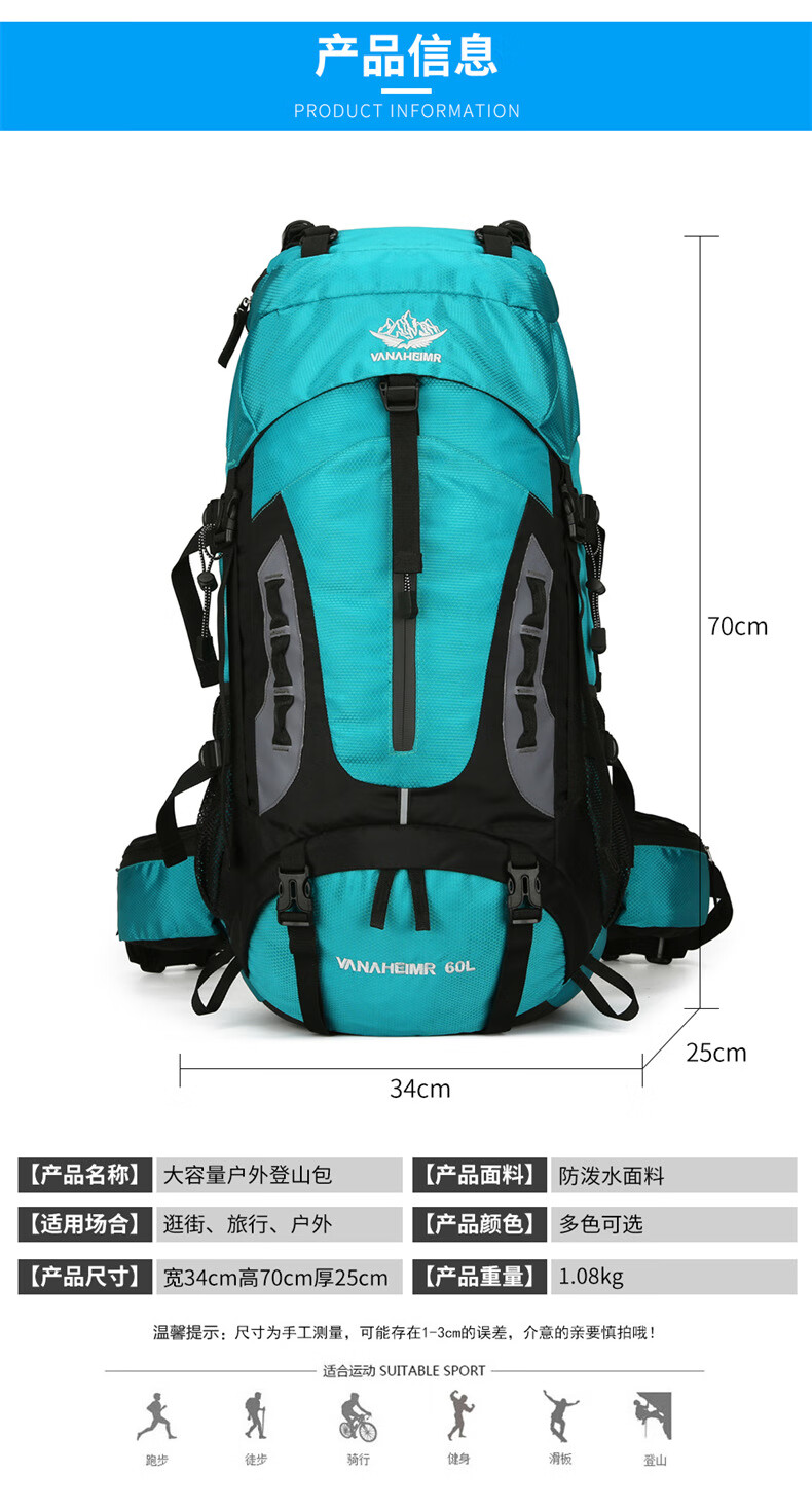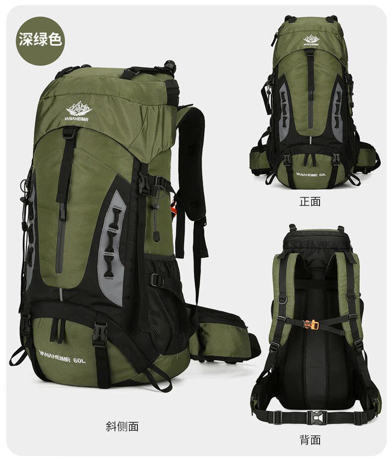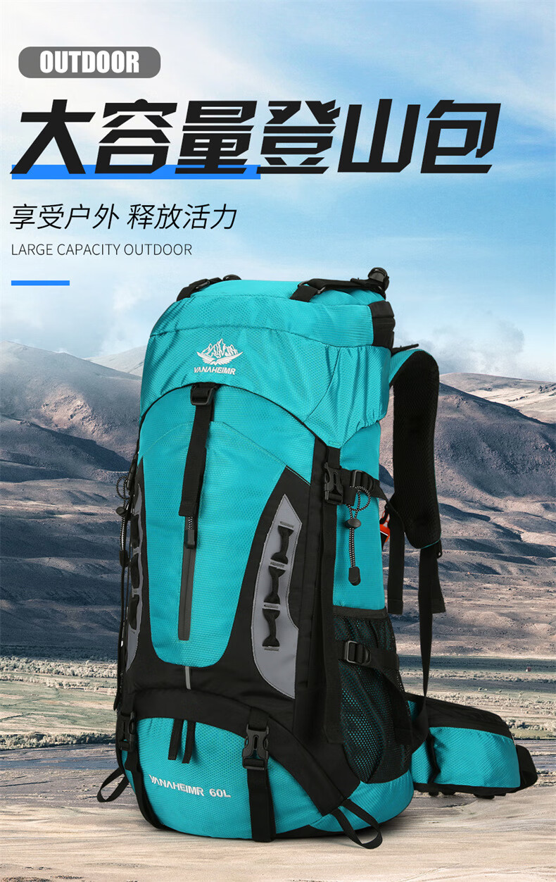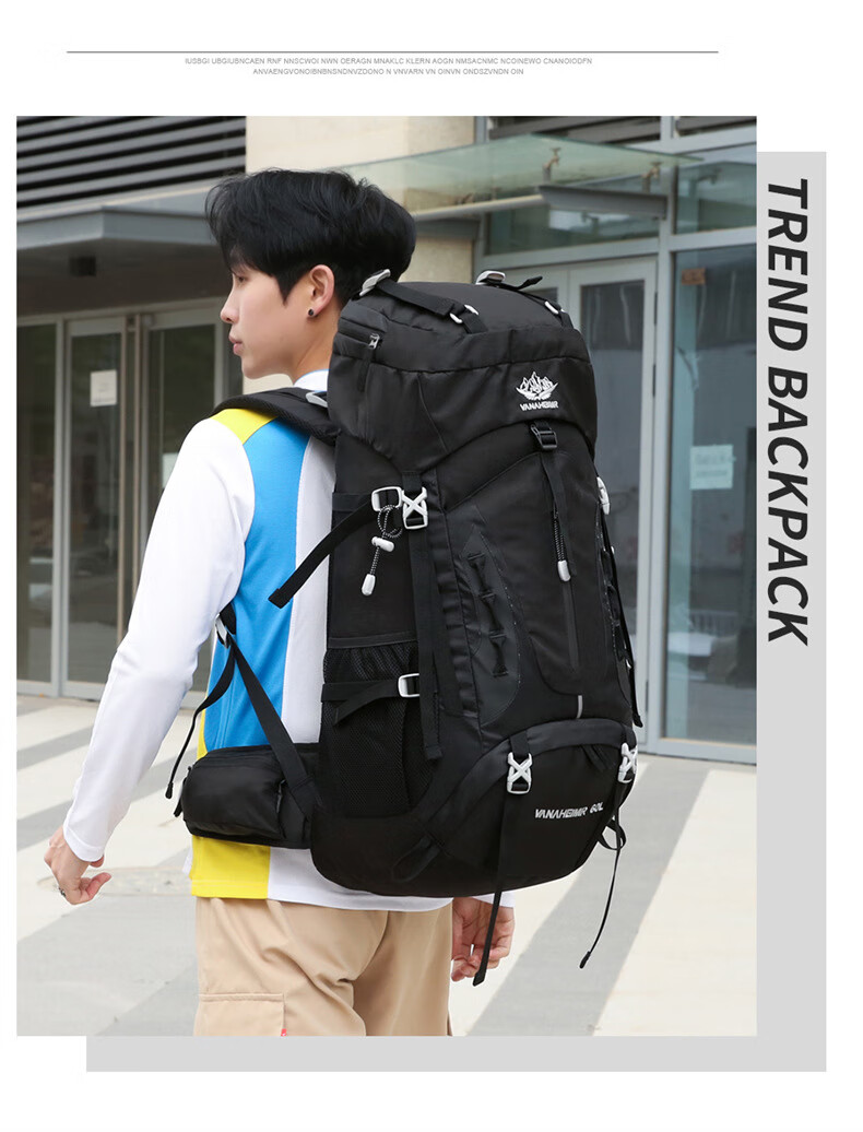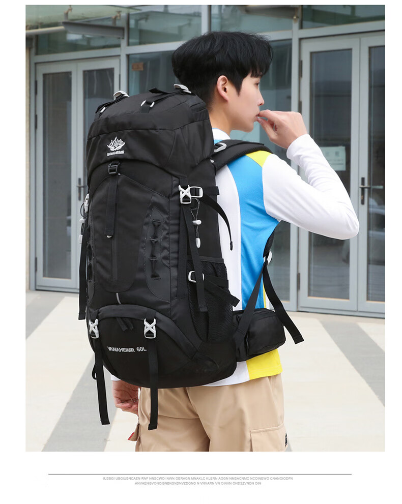 Vanaheimr new new mountaineering bag outdoor backpack mountaineering bag large capacity 60 liter multi-functional backpack hiking backpack black (strap) 60L large bag