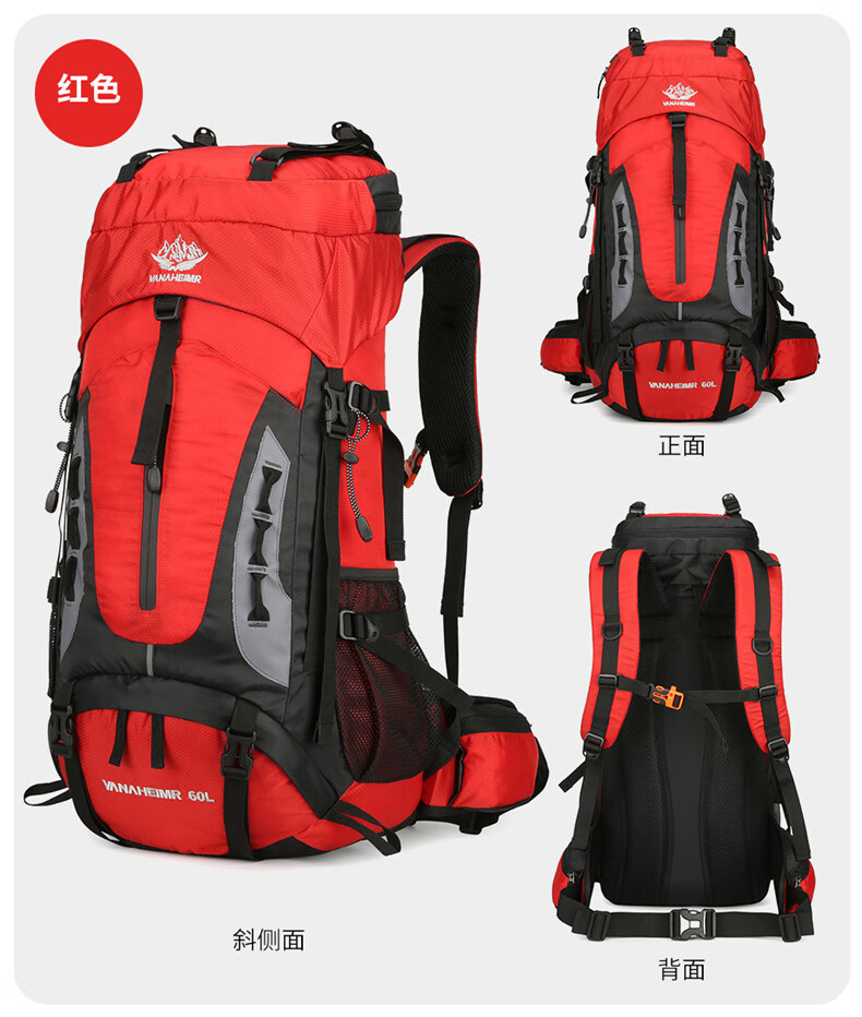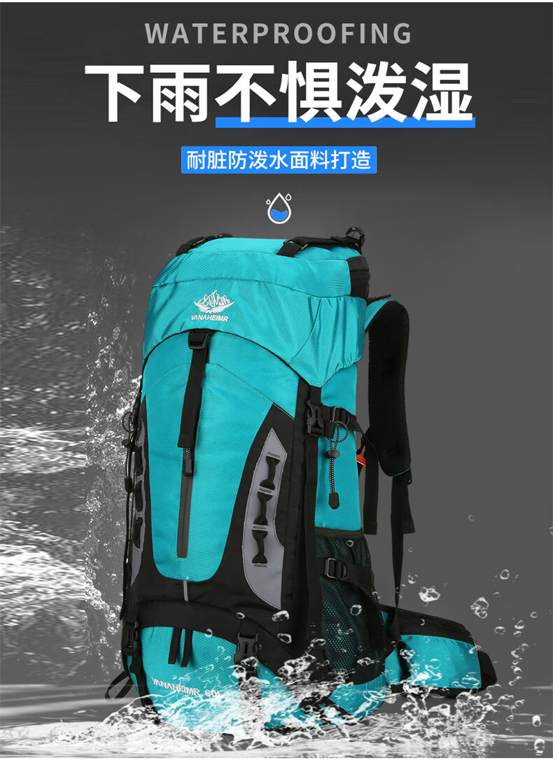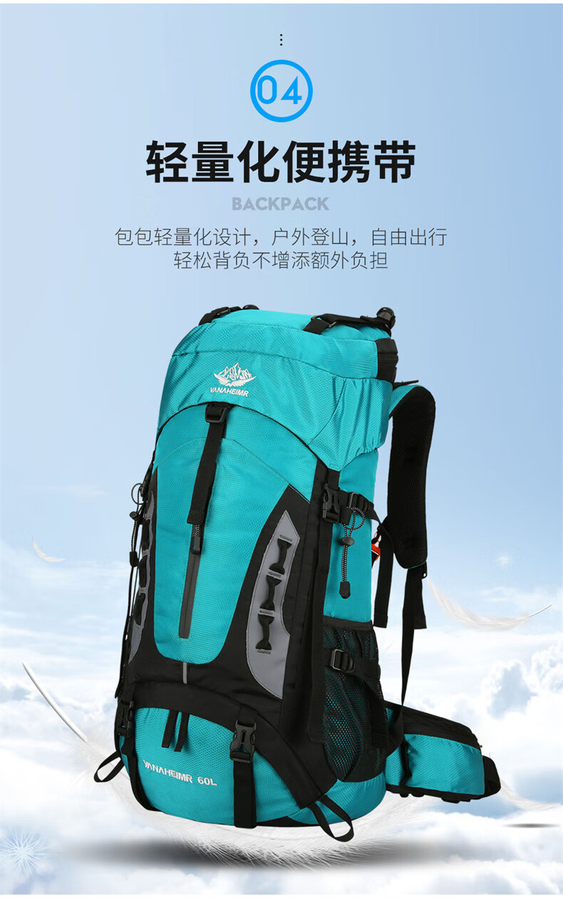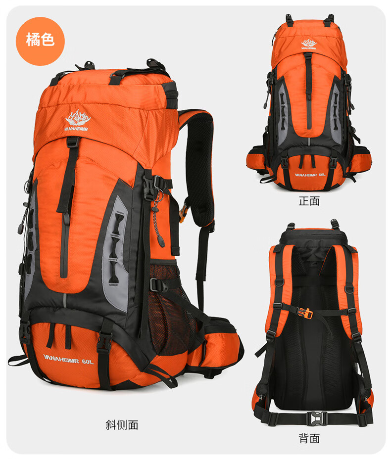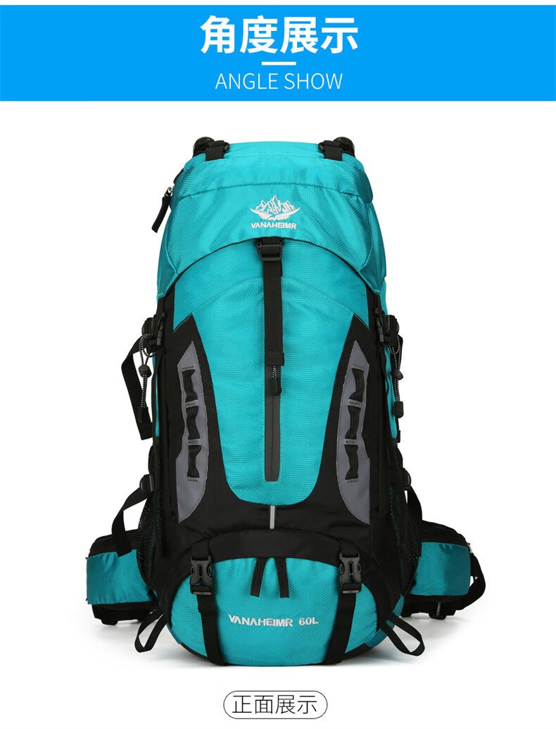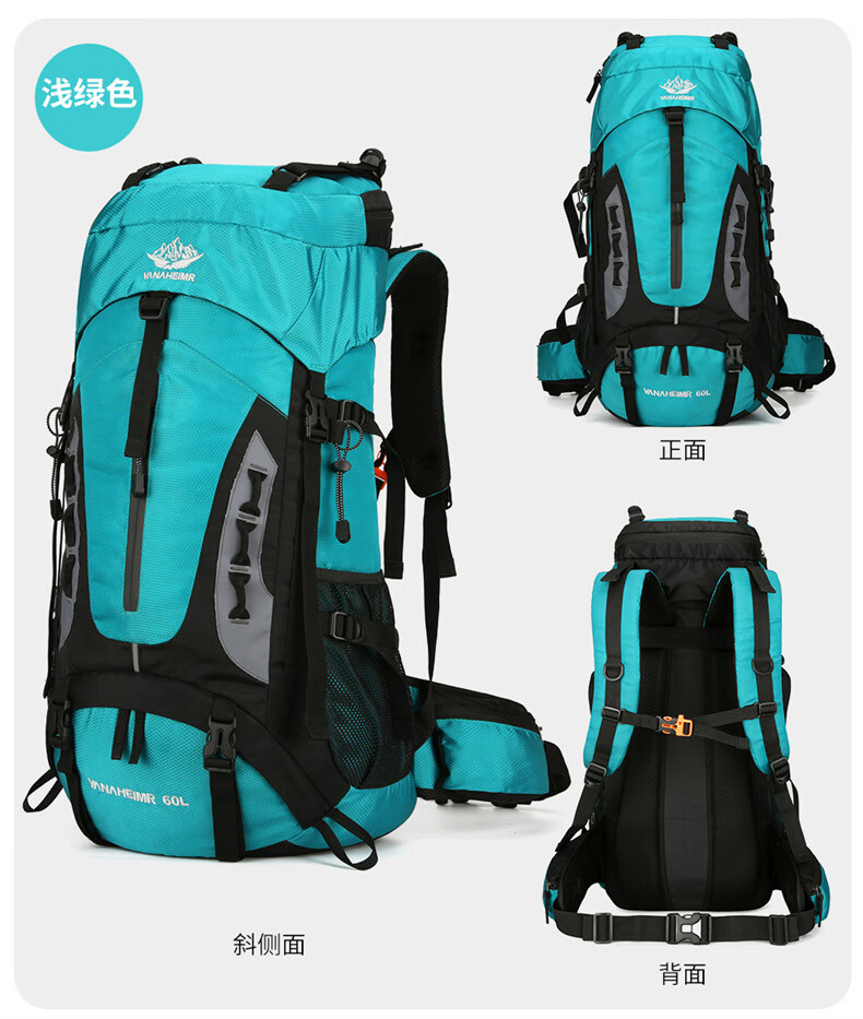 Vanaheimr new new mountaineering bag outdoor backpack mountaineering bag large capacity 60 liter multi-functional backpack hiking backpack black (strap) 60L large bag
