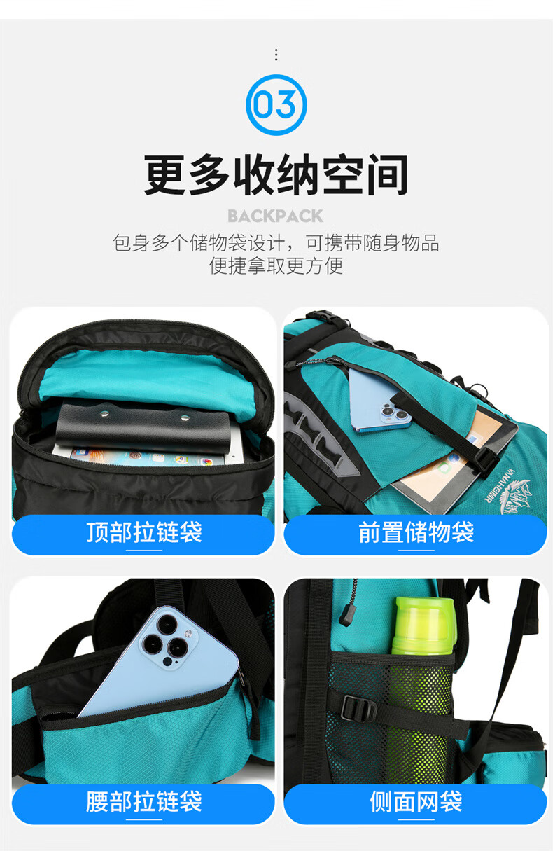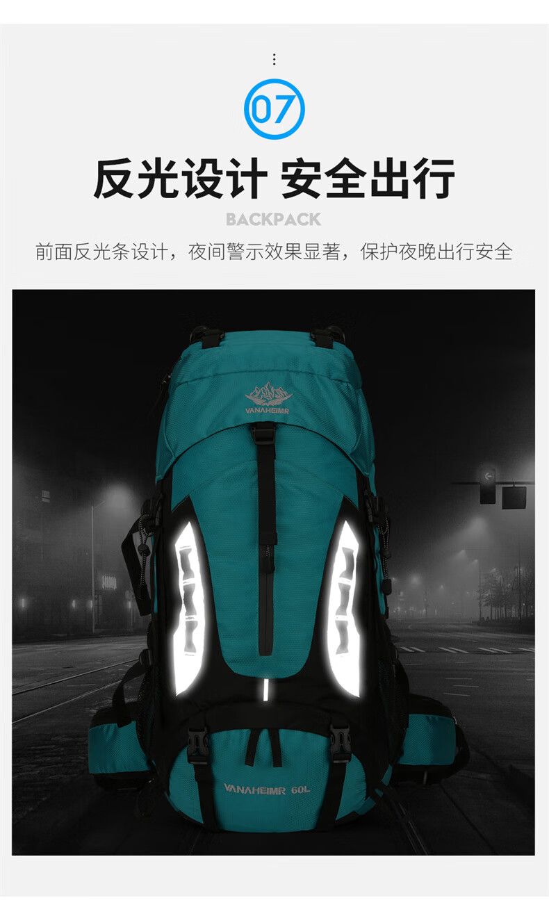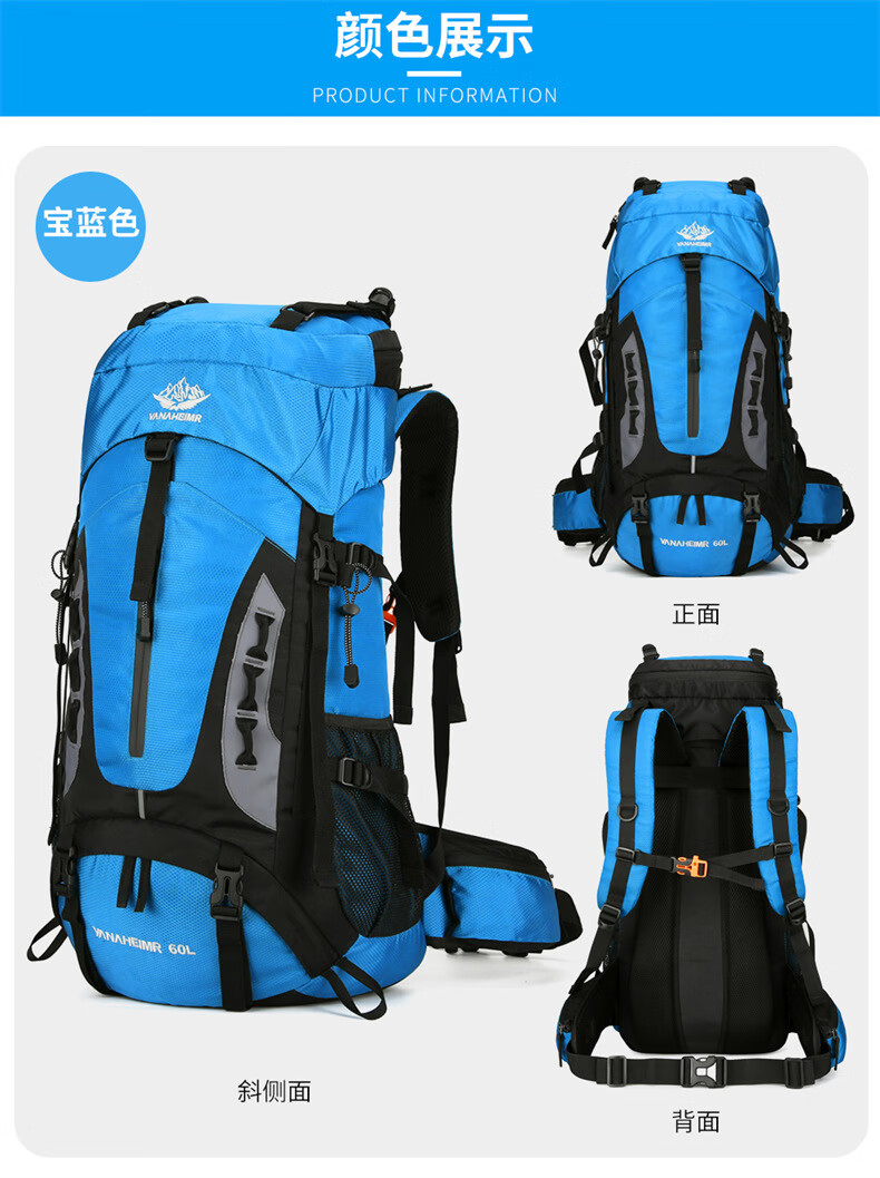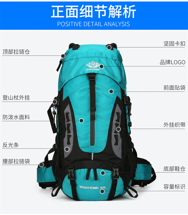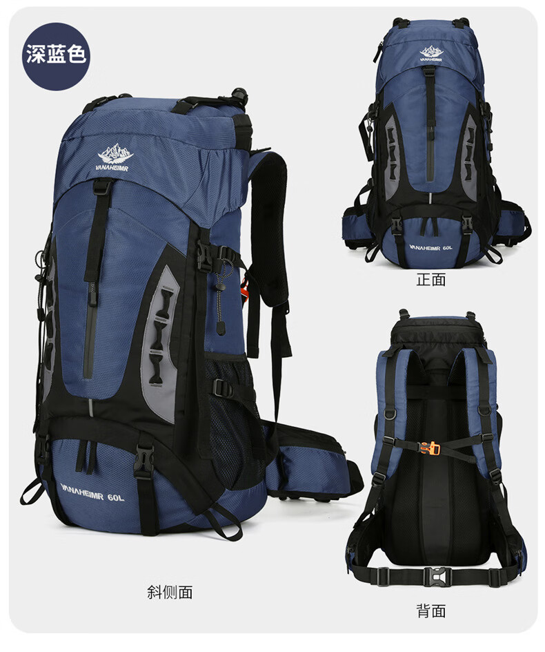 Vanaheimr new new mountaineering bag outdoor backpack mountaineering bag large capacity 60 liter multi-functional backpack hiking backpack black (strap) 60L large bag