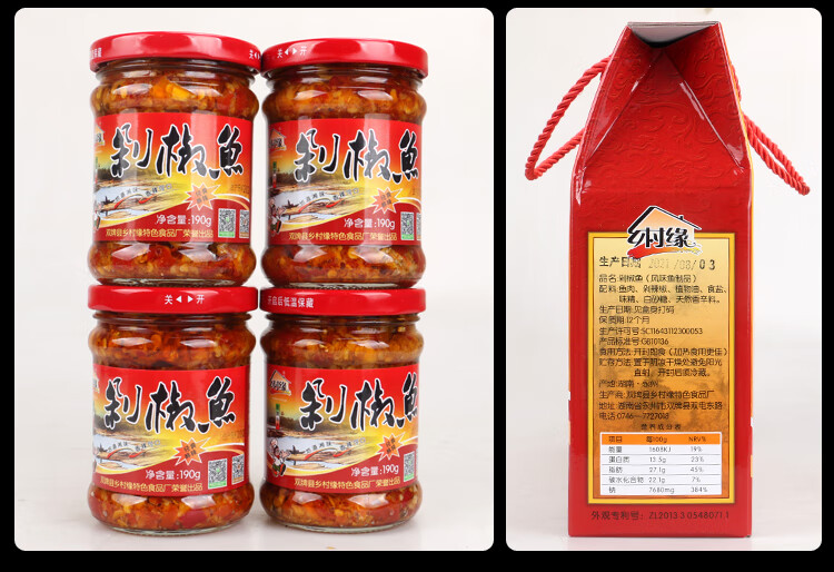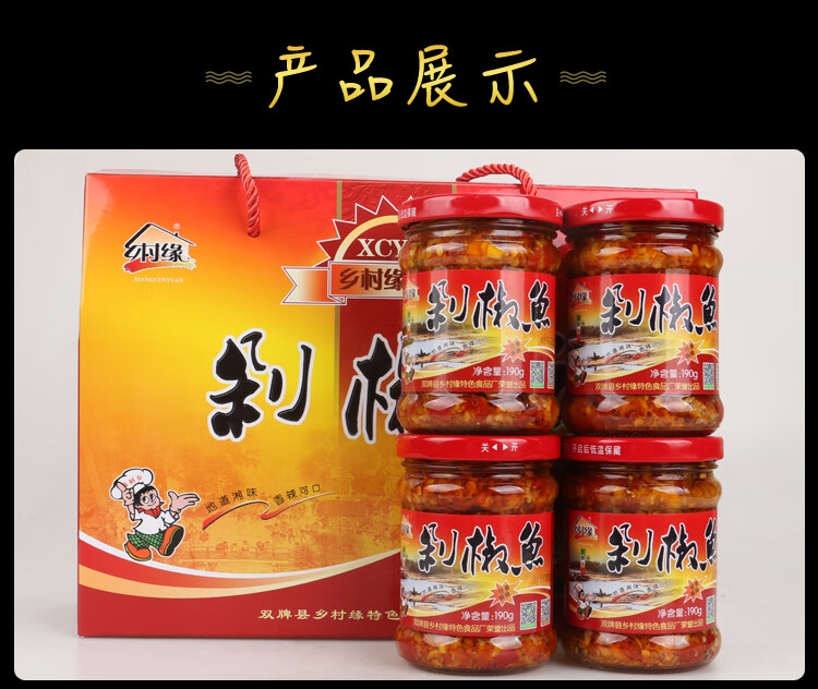 Village Yuan Double Brand Jiangcun Village Yuan Chopped Pepper Fish Hunan Specialty Yongzhou Fish Clear Water Fish Baby Fish Gift Box 4 Bottles Gift Box
