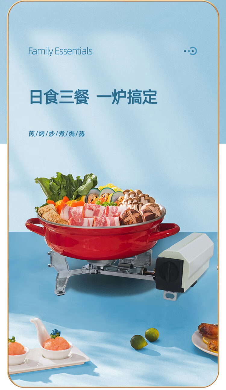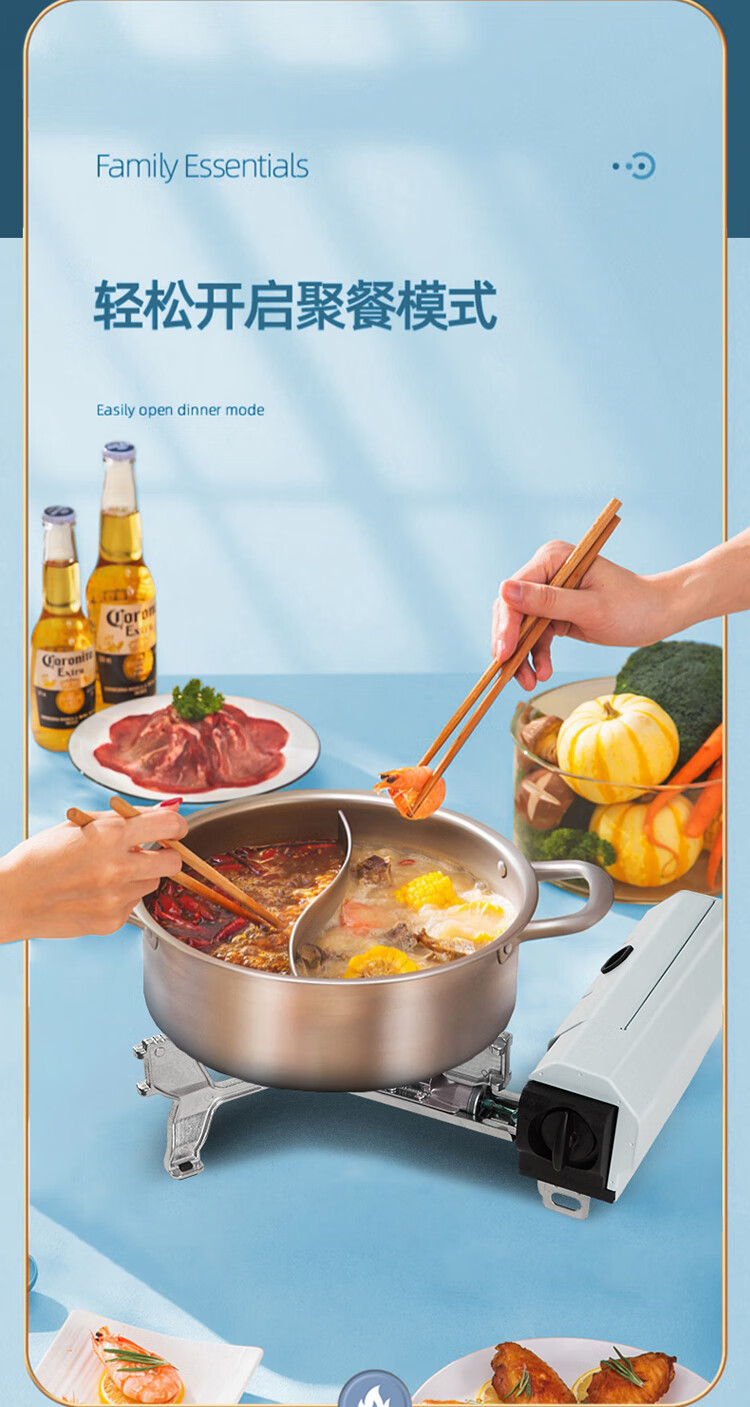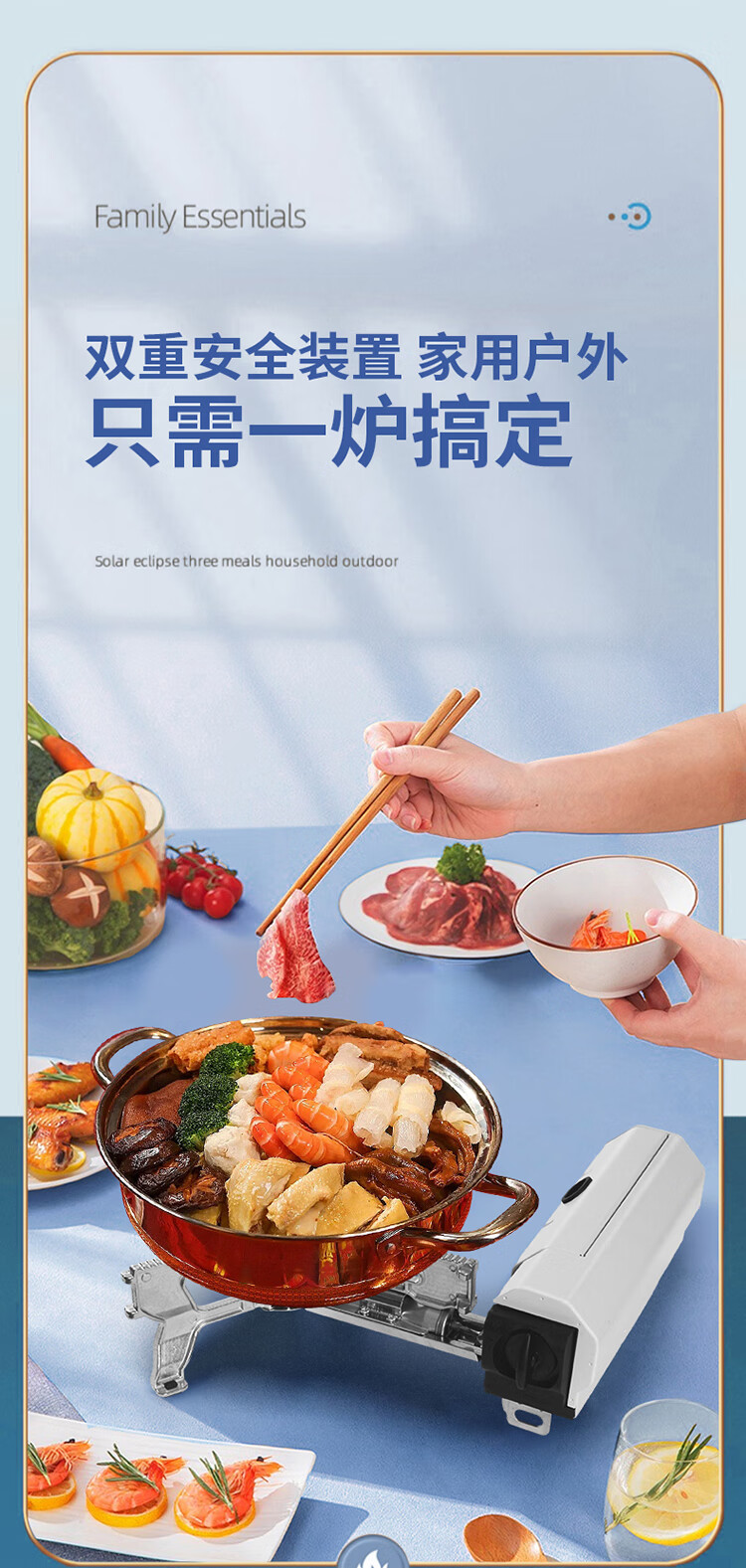 Lantu portable cassette stove set outdoor camping stove outdoor hot pot gas tank stove gas stove card magnetic stove card stove + aluminum alloy 4-piece set + baking pan + 4 free bottles of gas