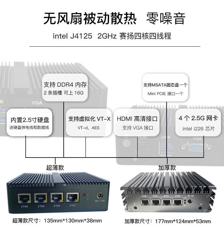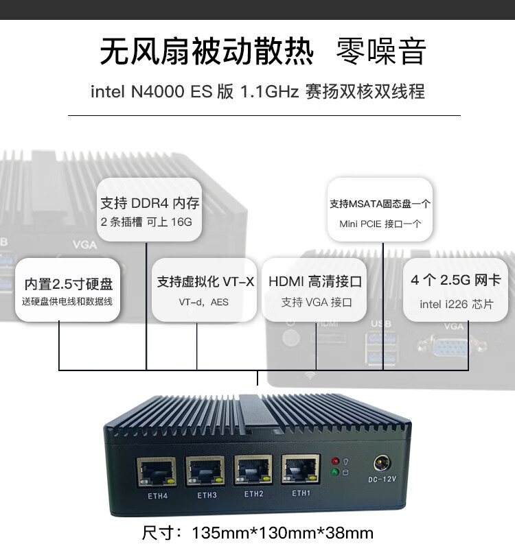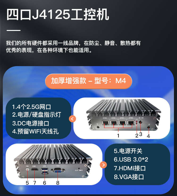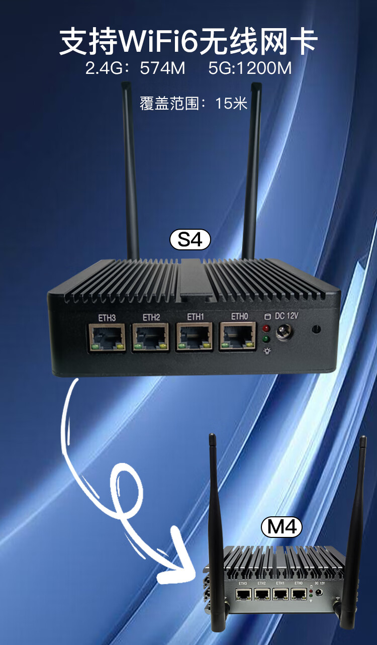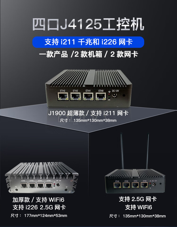 FISUSEN 4-port j4125 soft router n4000ES wireless wifi6 mini X86 enterprise router j1900 S4 thin section-j4125-wifi6 no disk no memory no power supply
