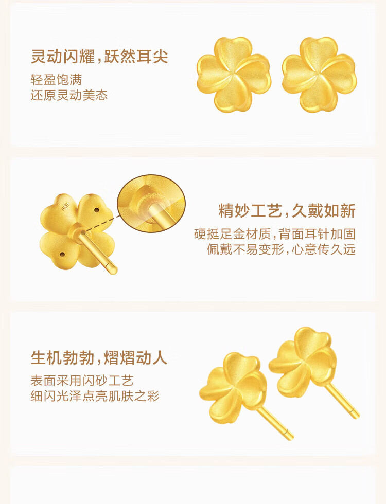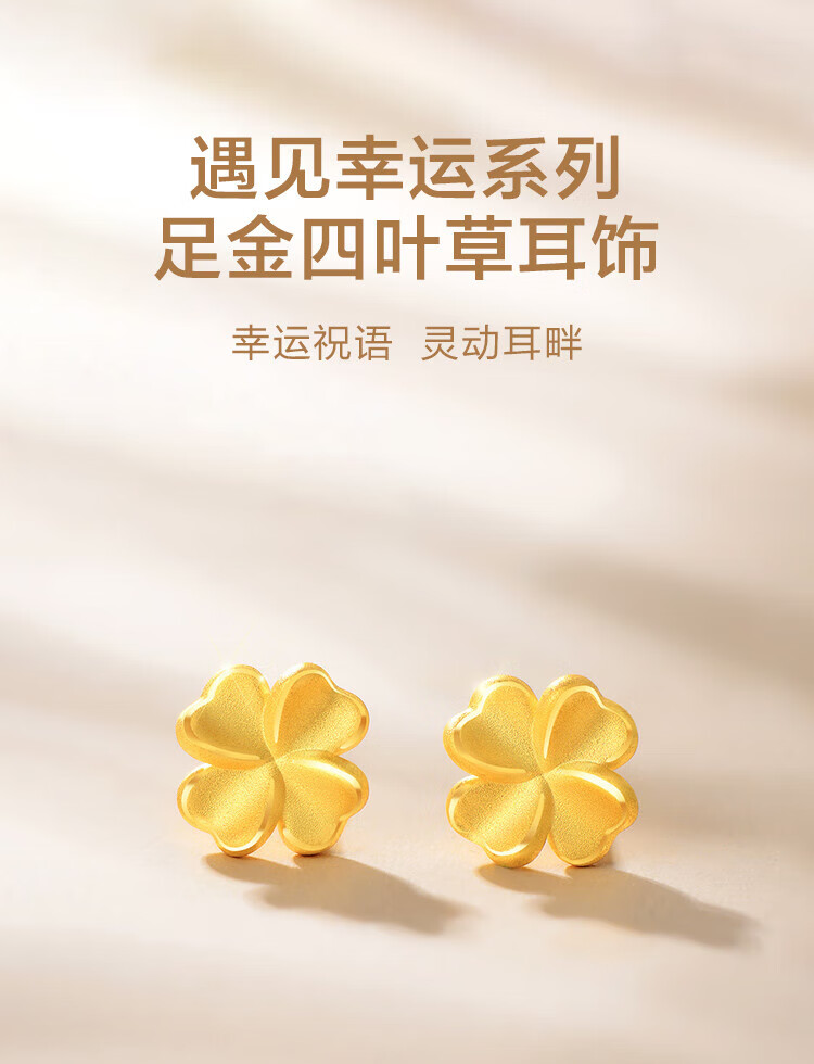 CHINA GOLD Four-leaf clover gold earrings women's gold earrings birthday gifts for girlfriends and wives 90% of customers choose - lucky four-leaf clover earrings about 0.8-0.9g