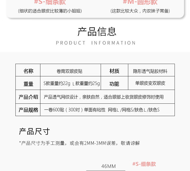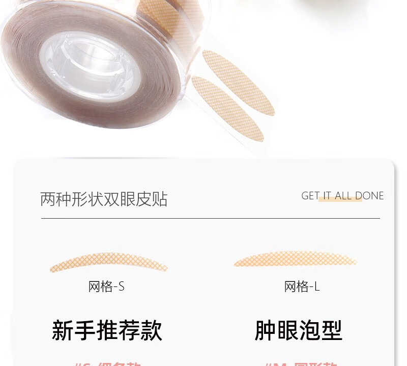 Mecafuyu double eyelid patch invisible traceless 600 patches suitable for swollen eye blisters, students, men, double skin color, beauty patch roll, roll S type + L type 1200 patches