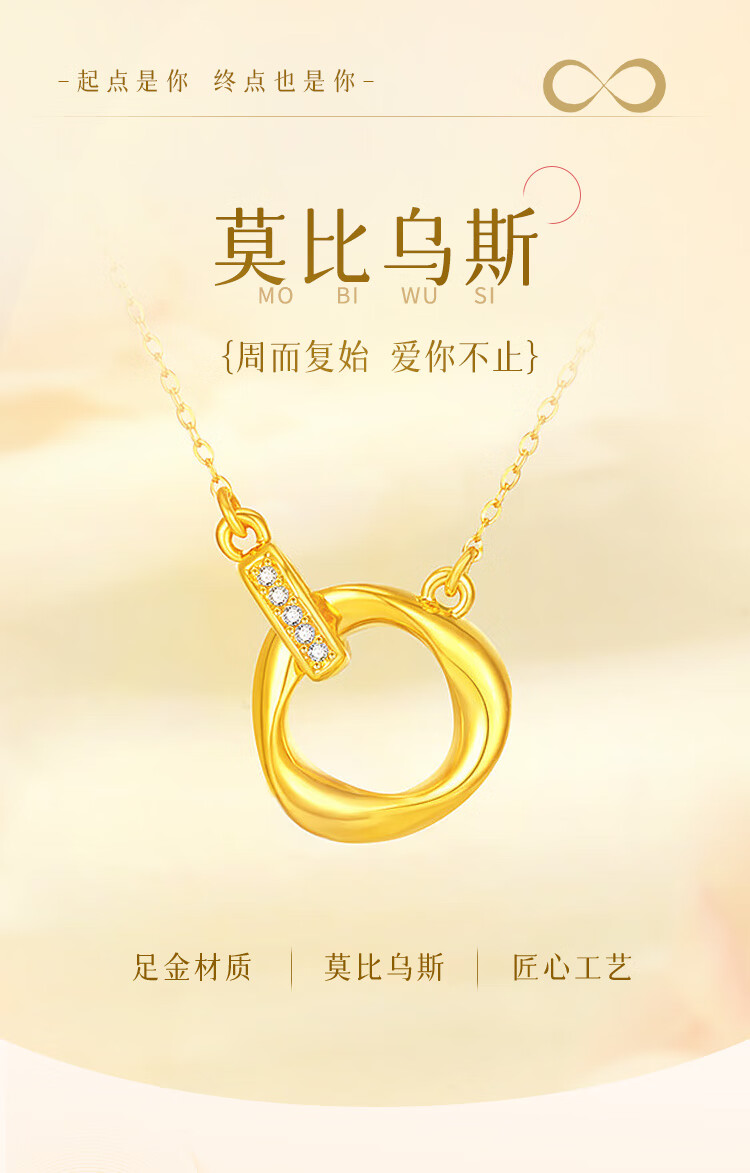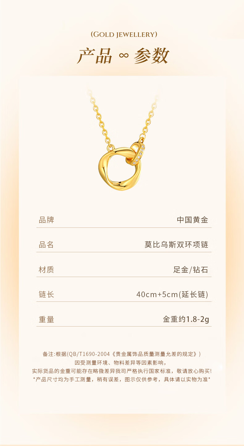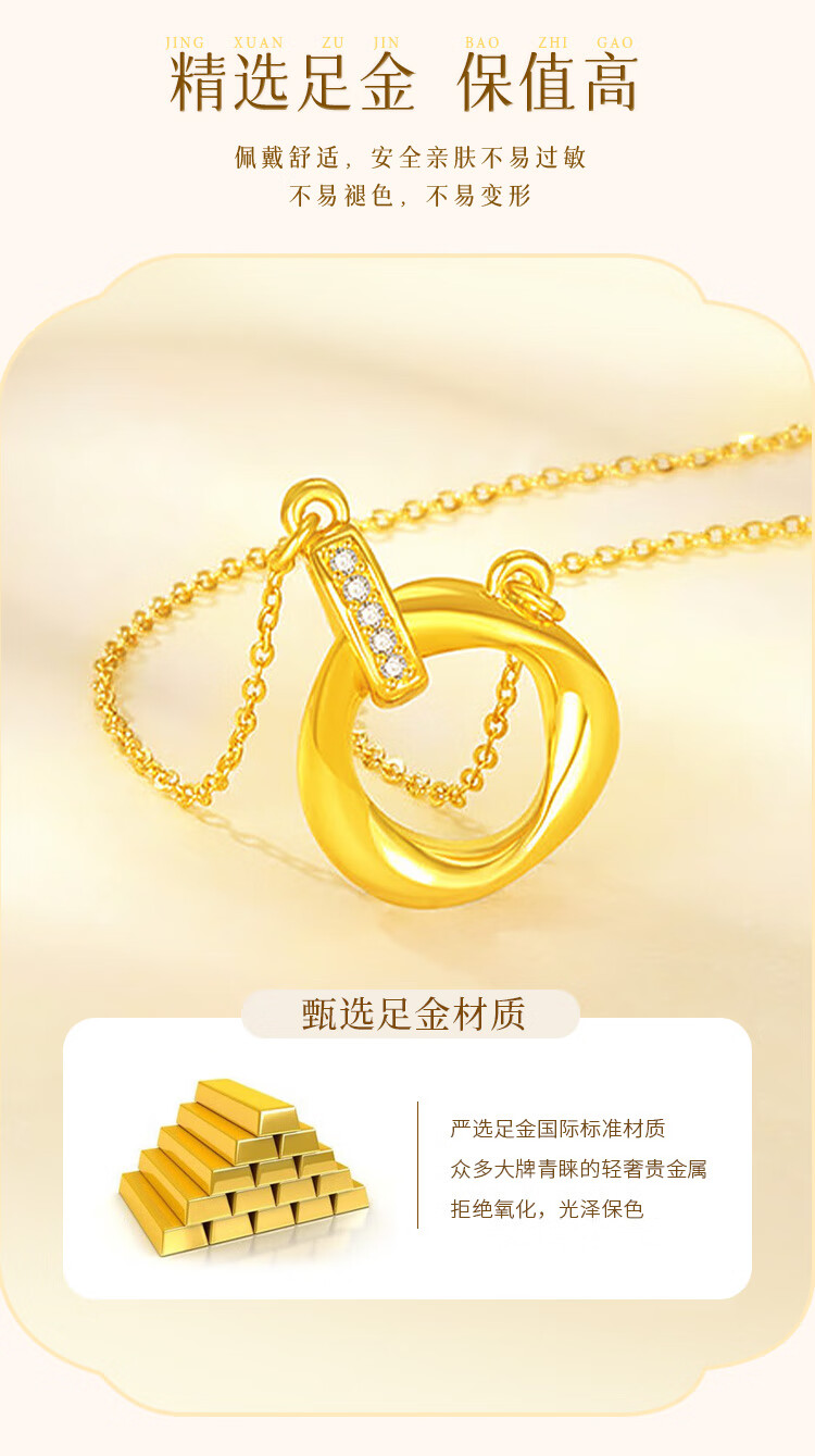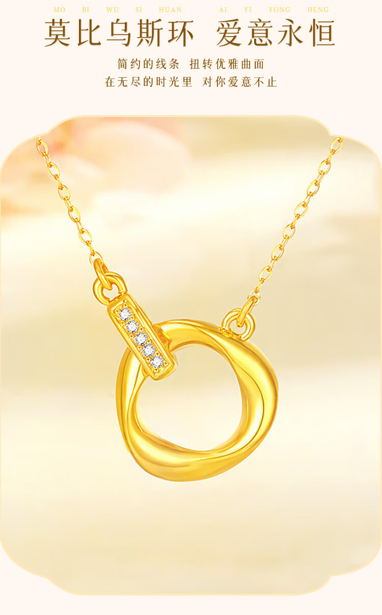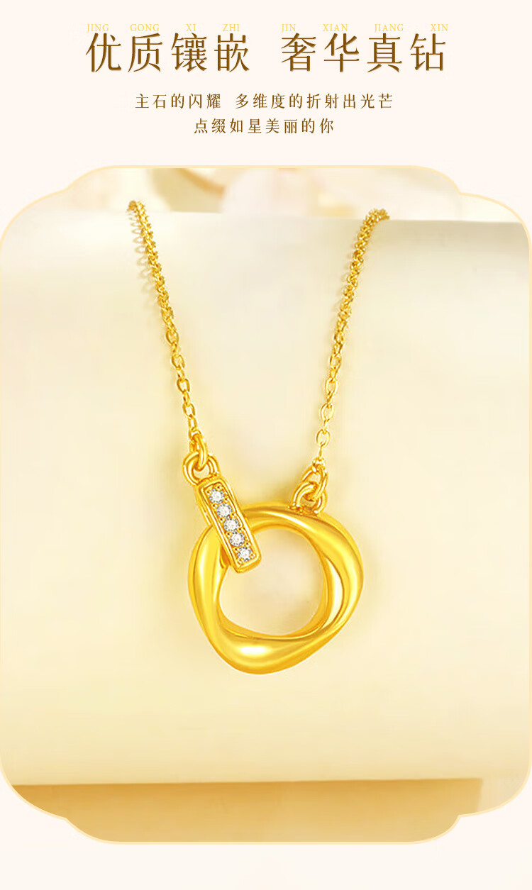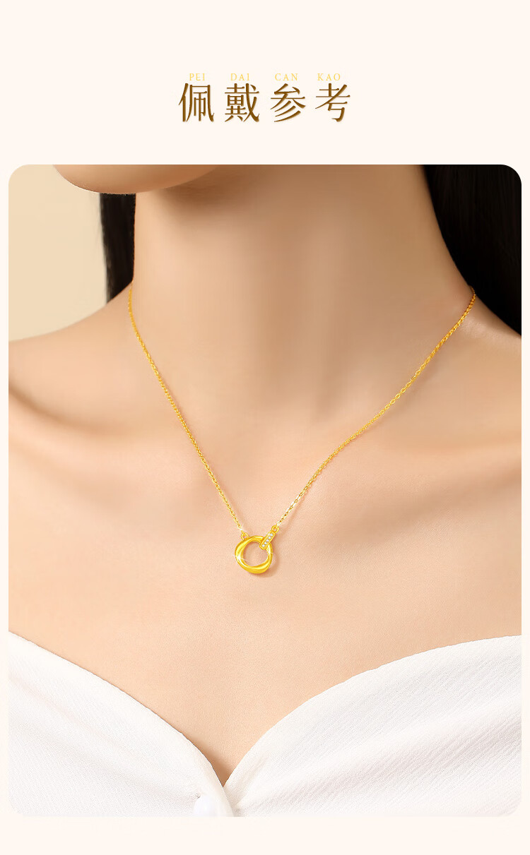 China Gold (CHINA GOLD) Möbius Double Ring Gold Necklace Women's Pure Gold Diamond Pendant Clavicle Chain Birthday Gift for Girlfriend and Wife Diamond Double Ring Pure Gold Necklace Souvenir