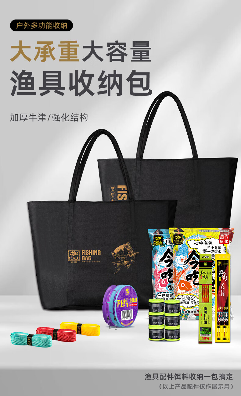 Fishing King Fishing Gear Storage Bag Thickened Portable Multi-Function Fish Protection Bag Wild Fishing Outdoor Large Capacity Tote Bag Fishing Bag Fishing Gear Storage Box Bag Black Large