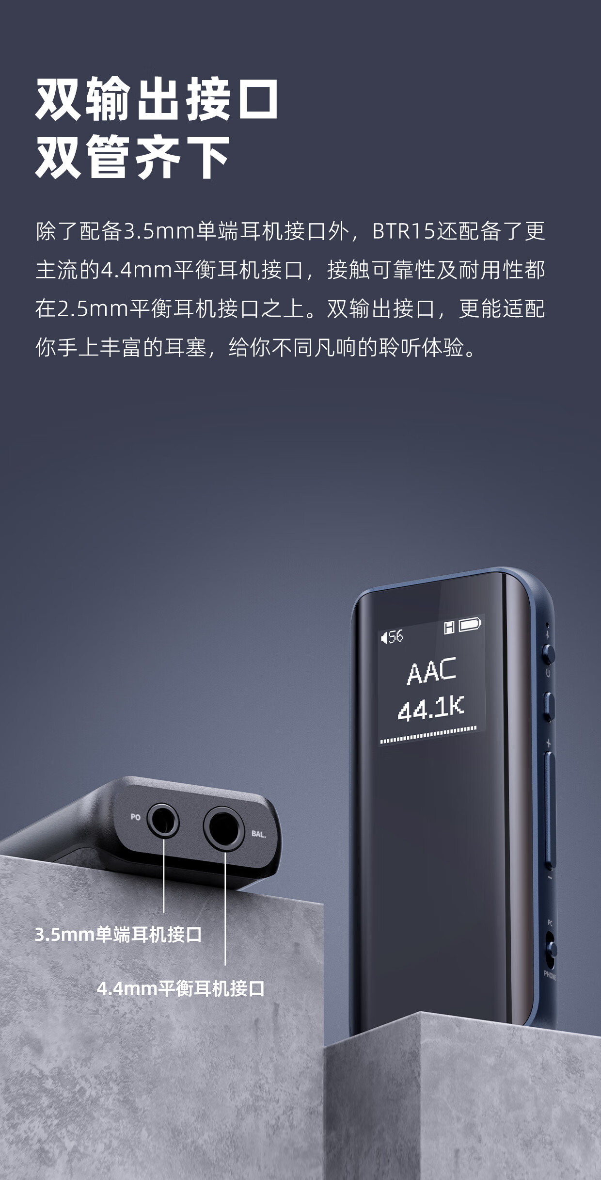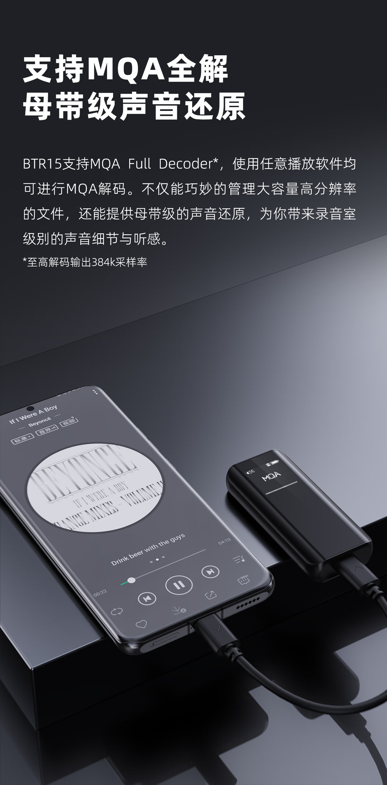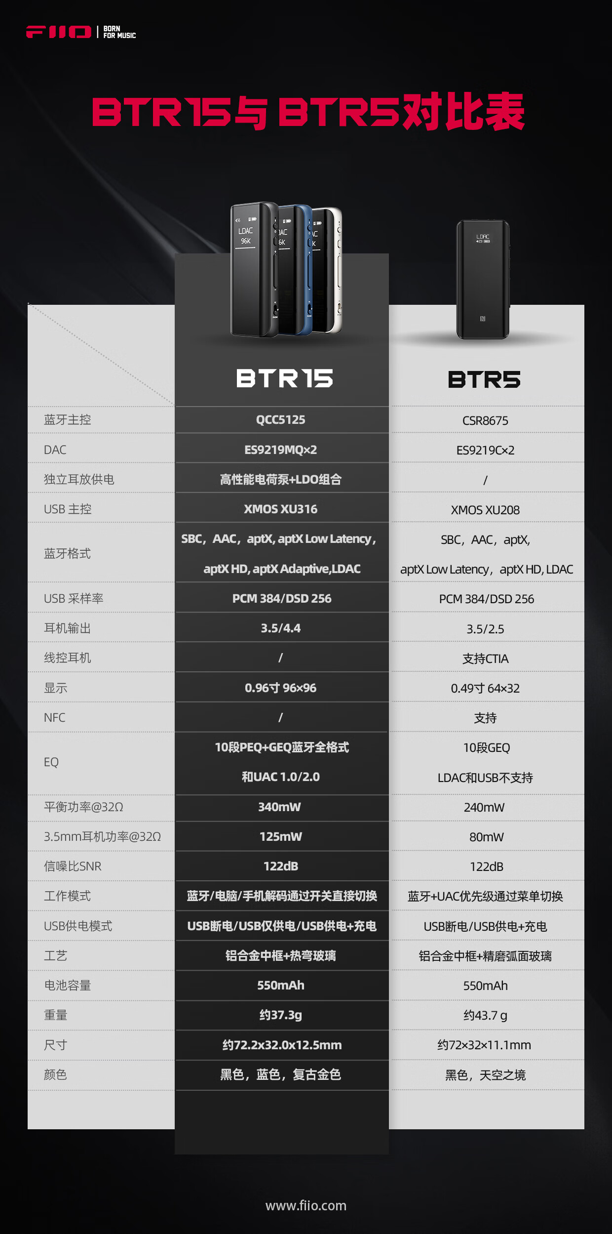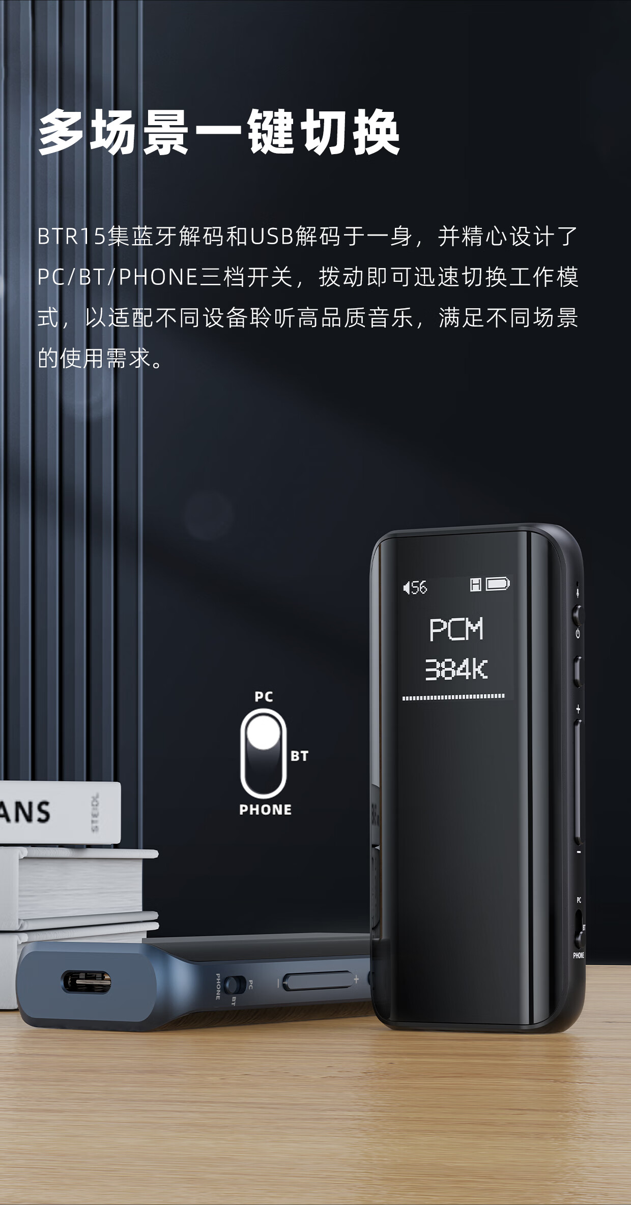 FiiO BTR15 Portable Wireless Bluetooth Wired Decoder Headphone Amplifier for Android Pingguo Phone Small Tail Black