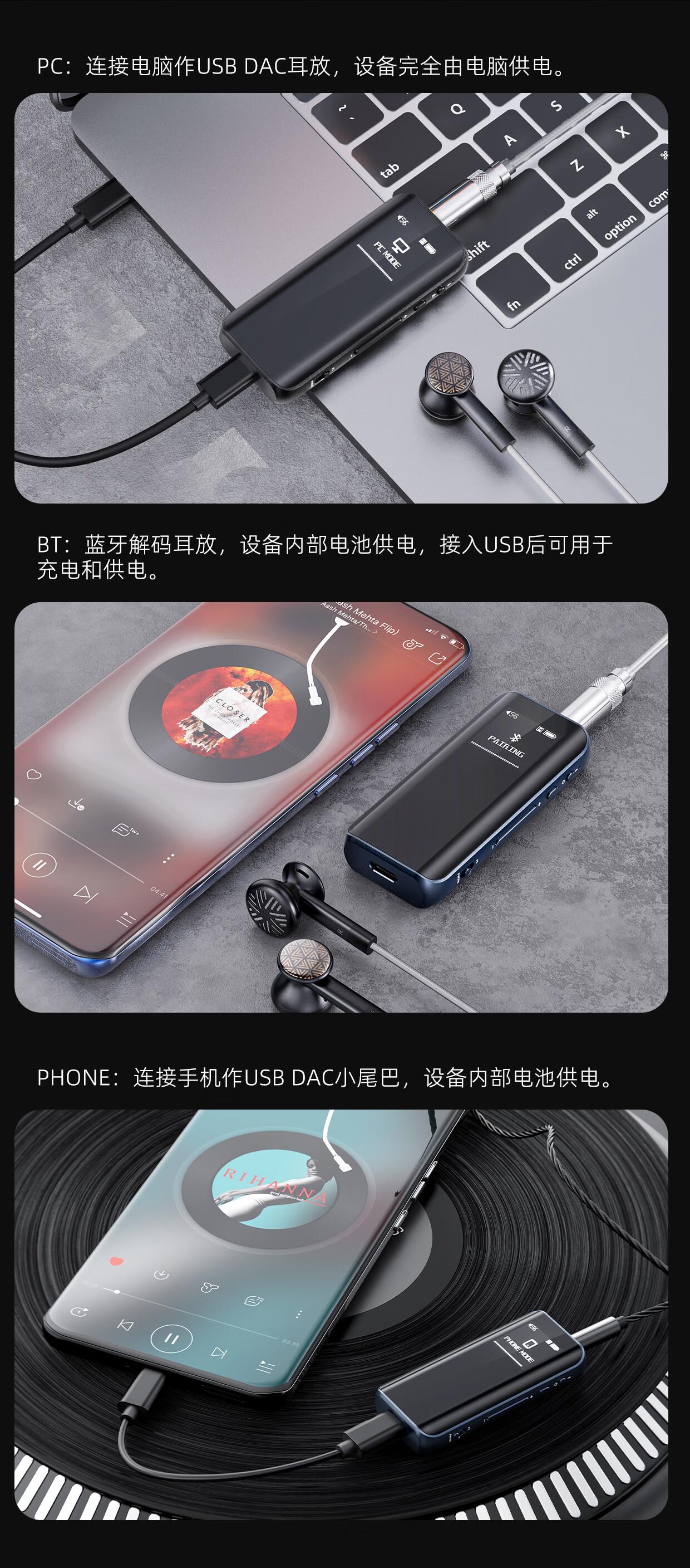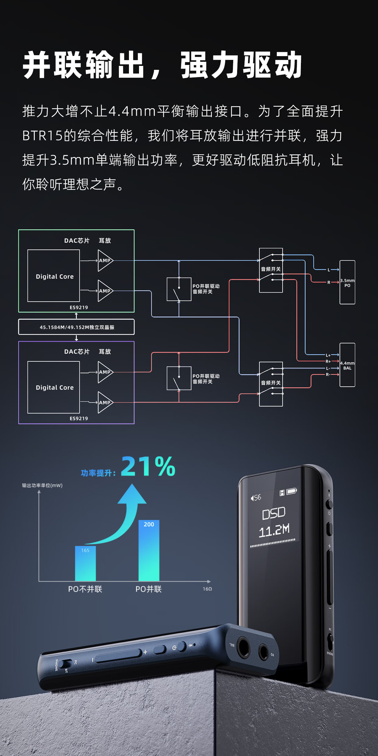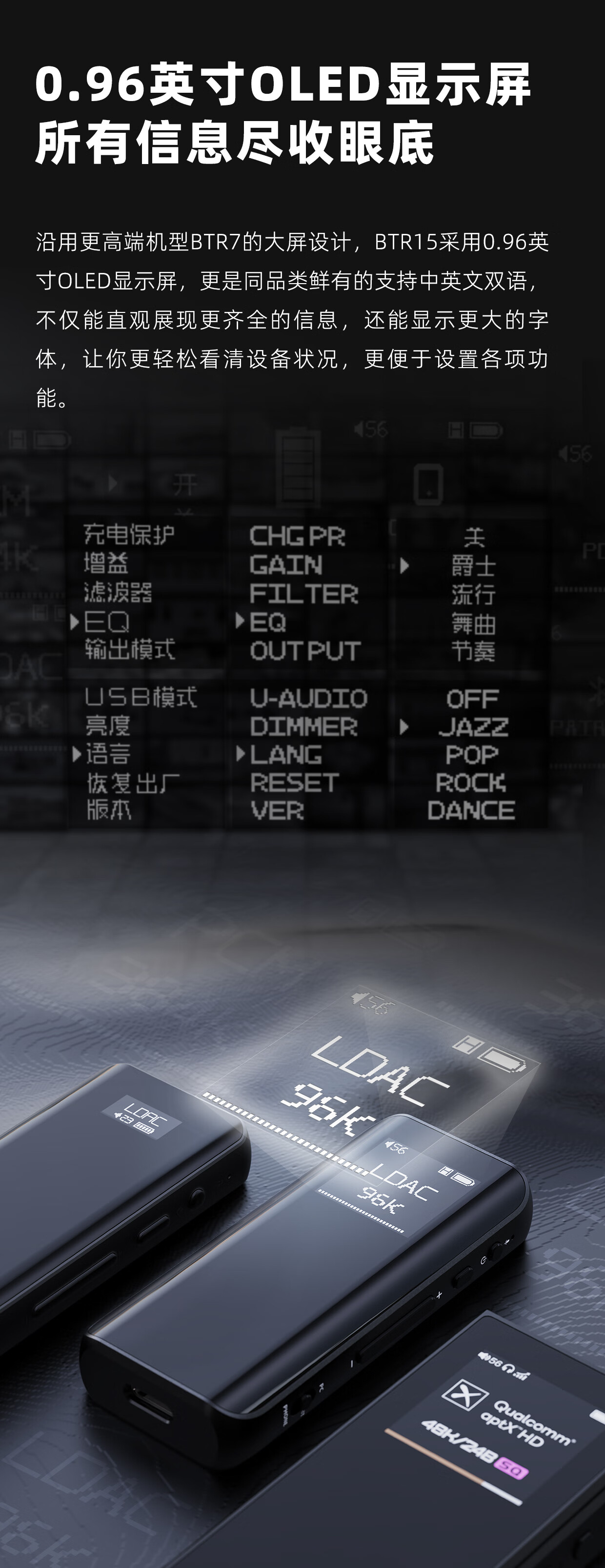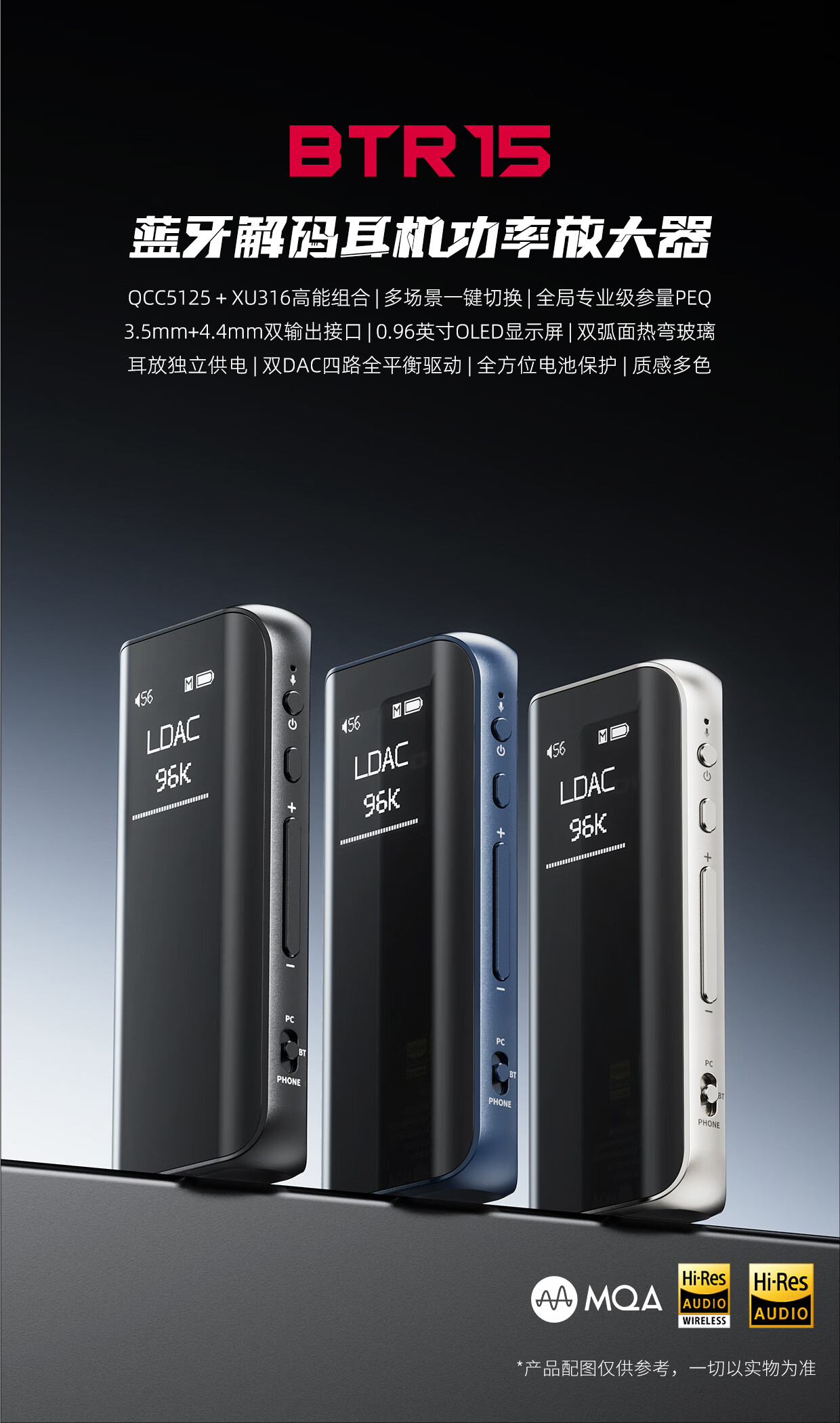 FiiO BTR15 Portable Wireless Bluetooth Wired Decoder Headphone Amplifier for Android Pingguo Phone Small Tail Black