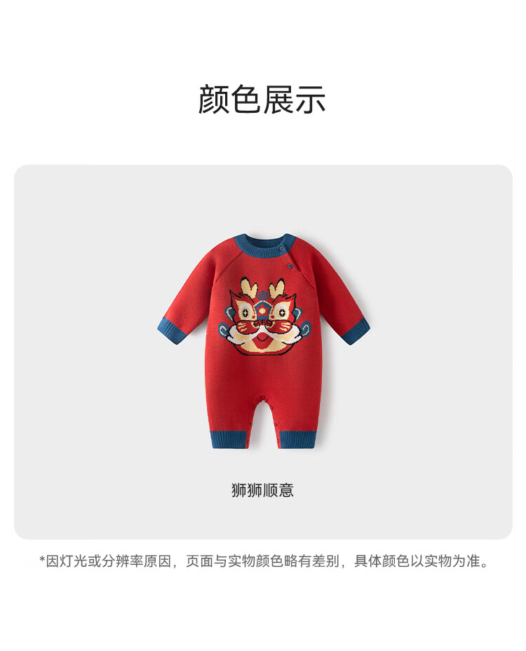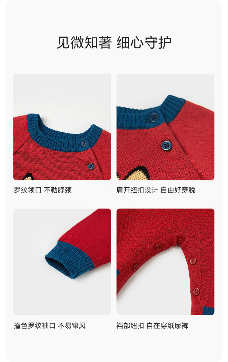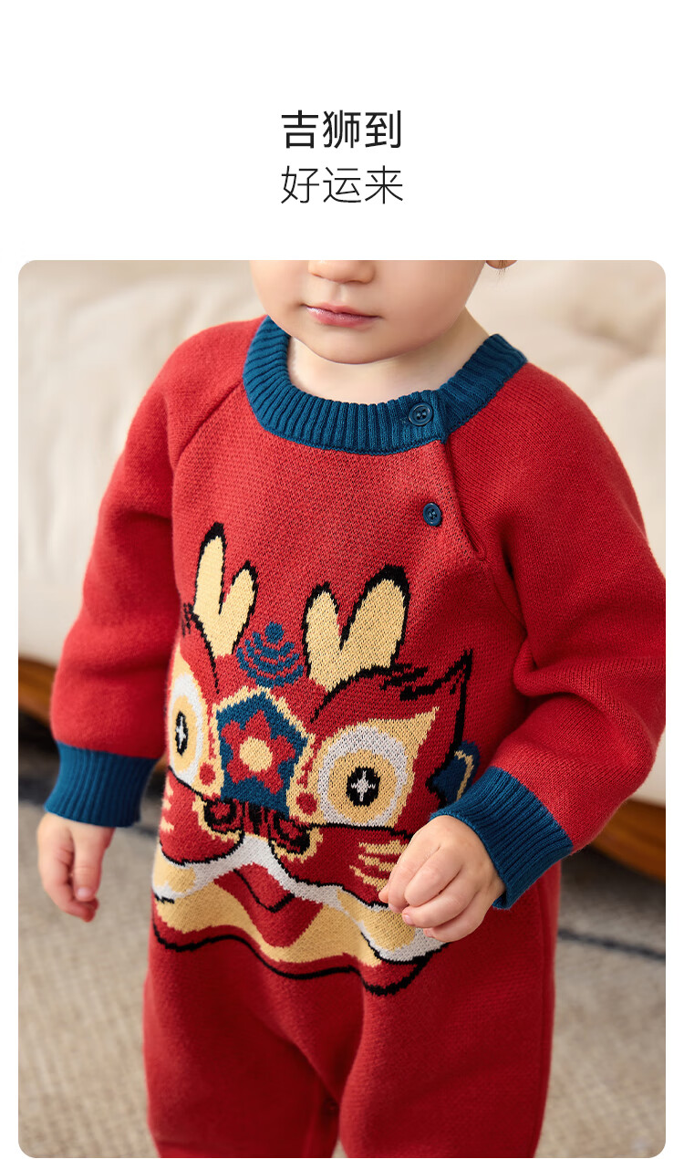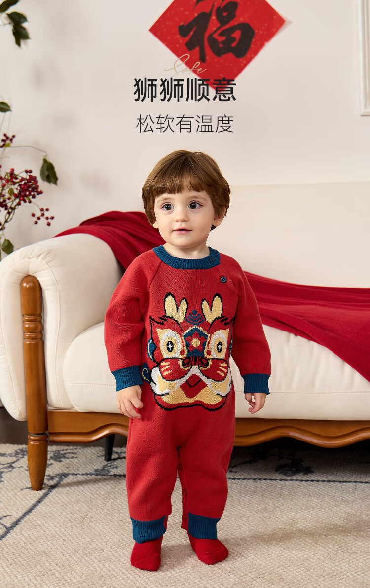 Babylove clearance baby knitted jumpsuit spring and autumn baby warm thickened robe festive new year red sweater spring clothing Shishi Shunyi 73cm