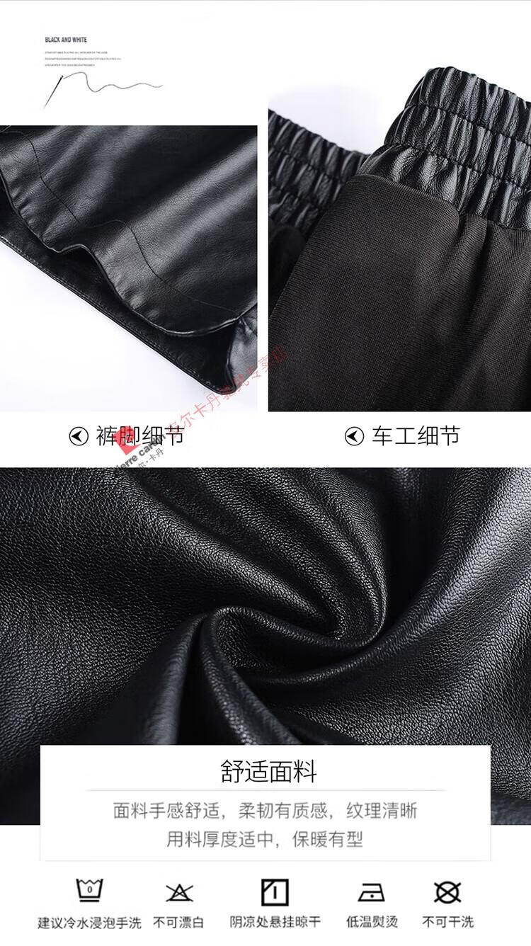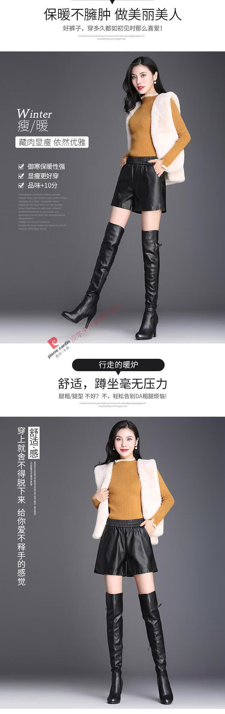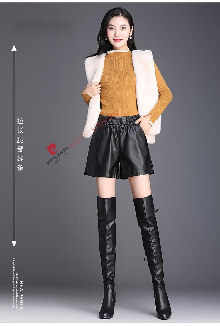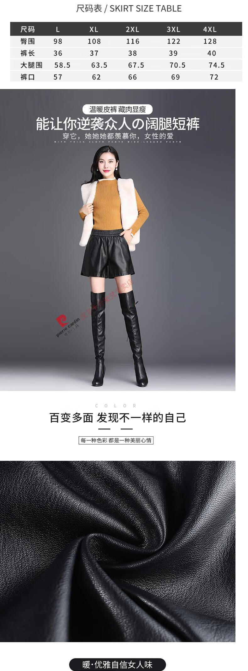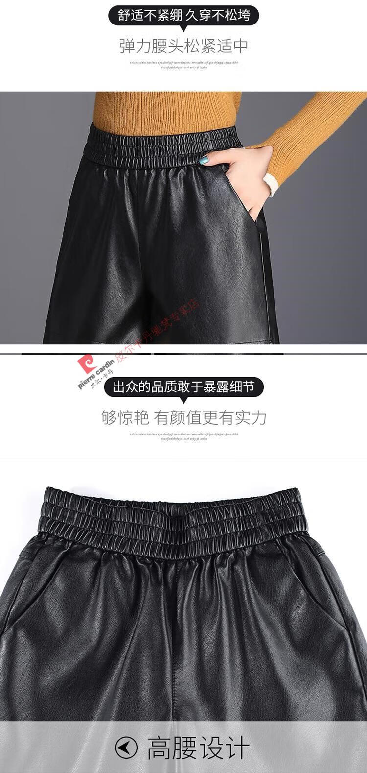 Pierre Cardin 2025 Autumn and Winter New Versatile Outerwear PU Leather Shorts for Women Fat mm Elastic Waist 200 Jin Jin equals 0.5 kg Loose and slimming wide legs 6689 black L Recommended 90-110 Jin Jin equals 0.5 kg