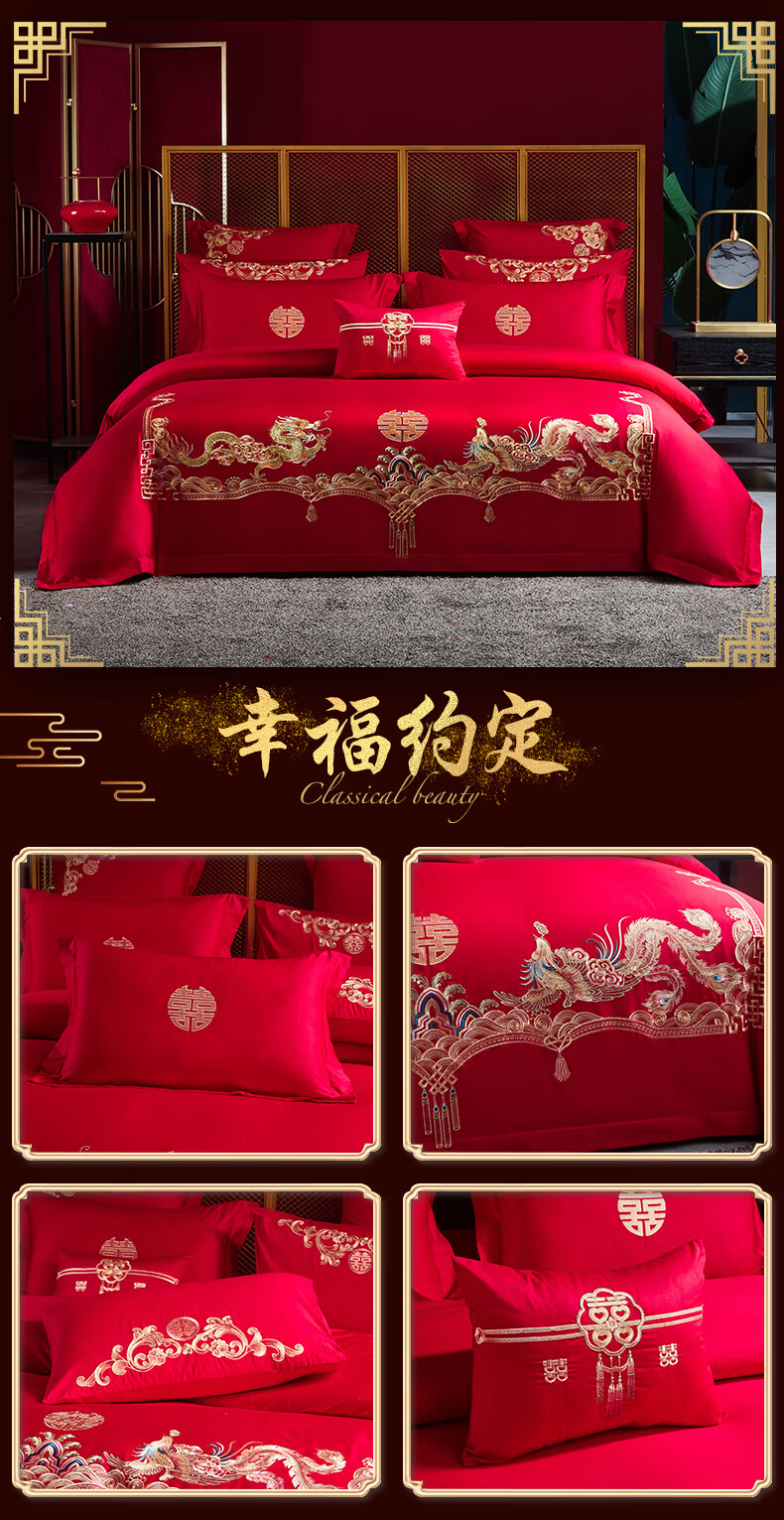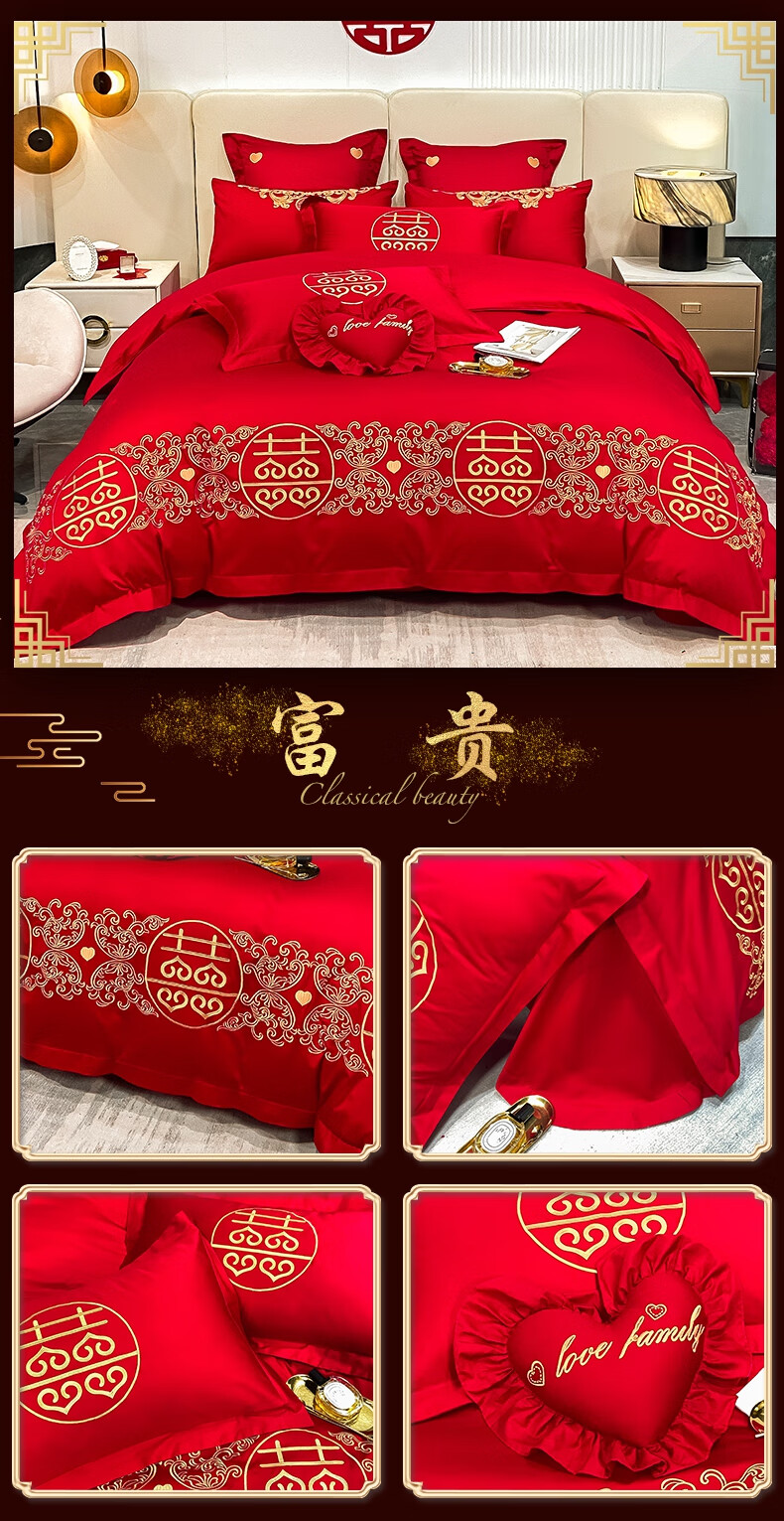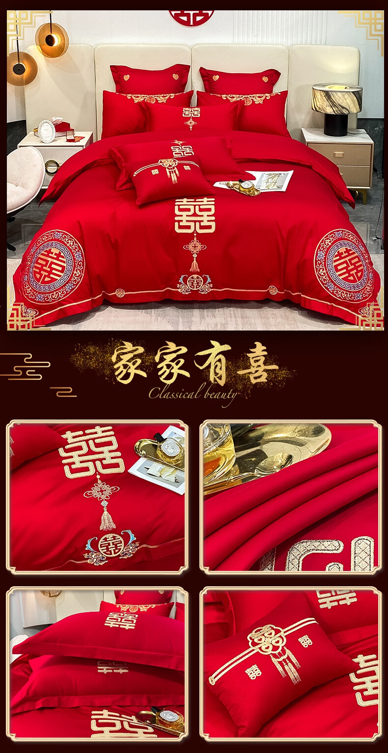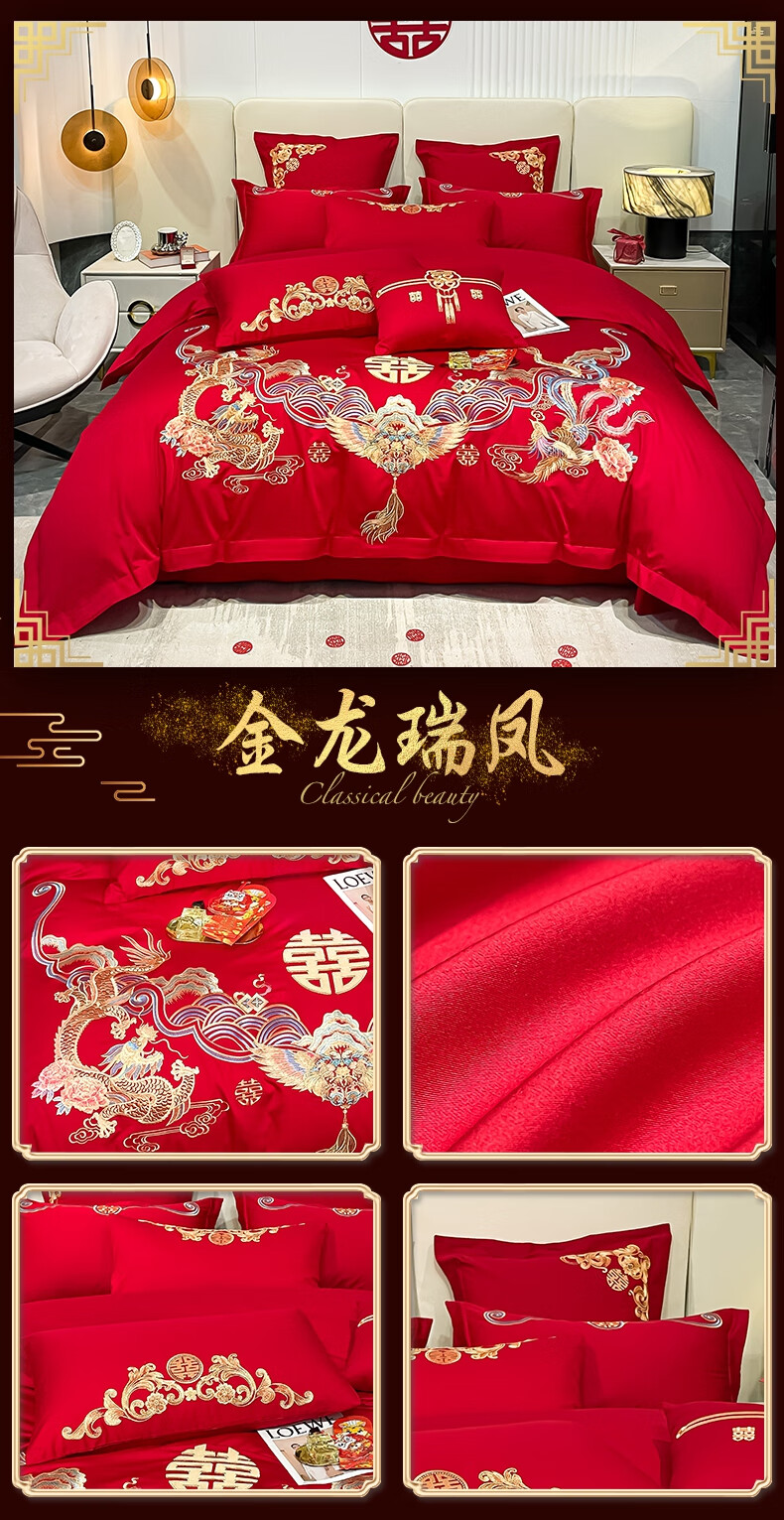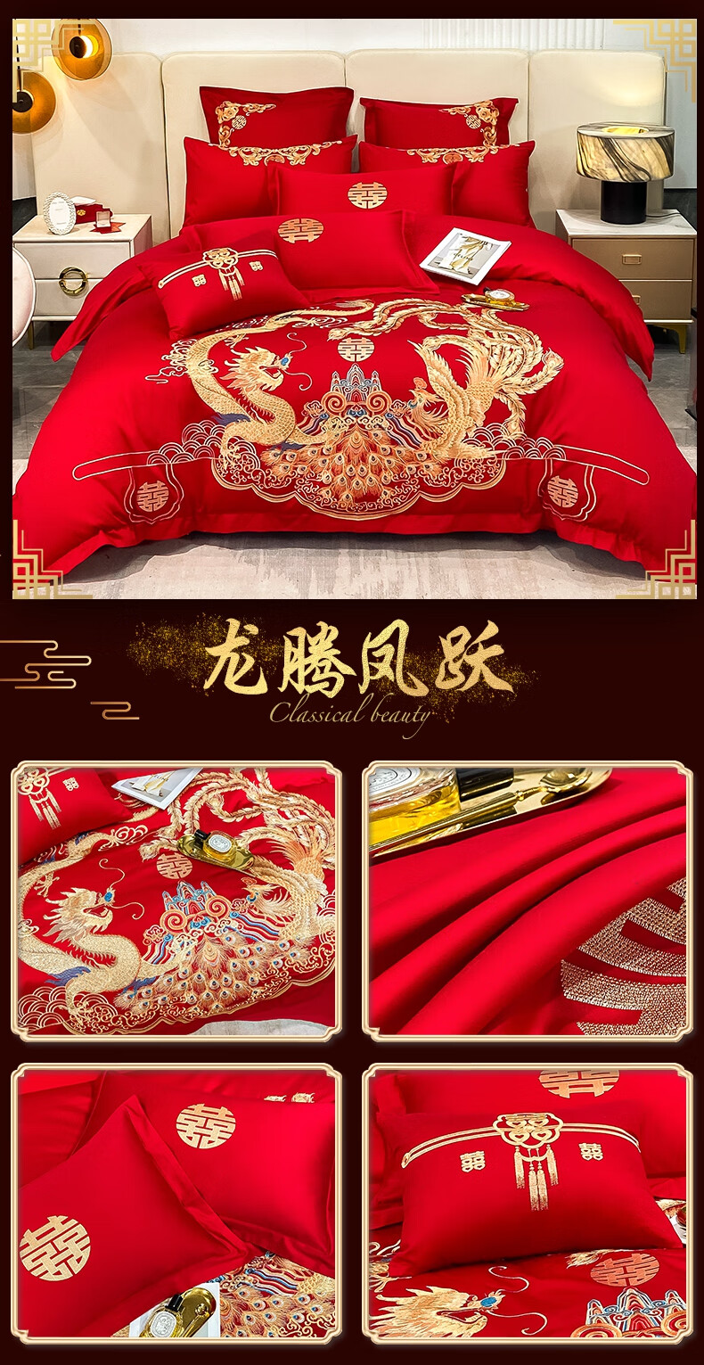 Wedding four-piece set, wedding bedding, embroidered quilt cover, brushed set, red wedding Chinese-style eight-piece quilt set, romantic accompanying 1.5-1.8m bed sheet eight-piece set