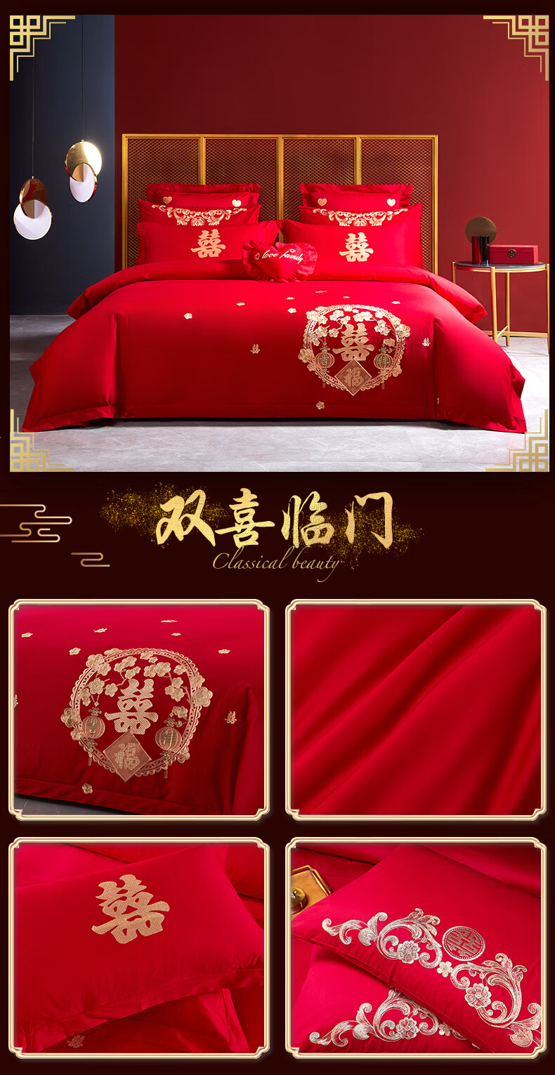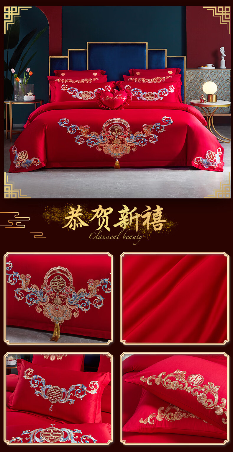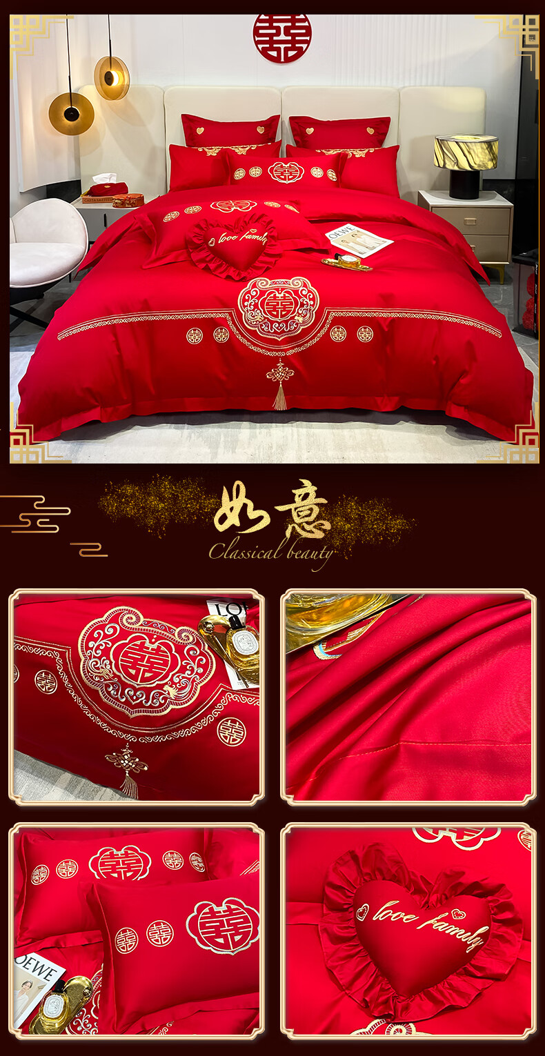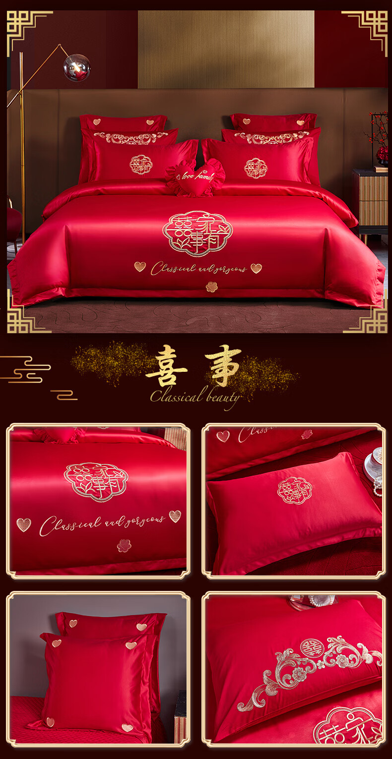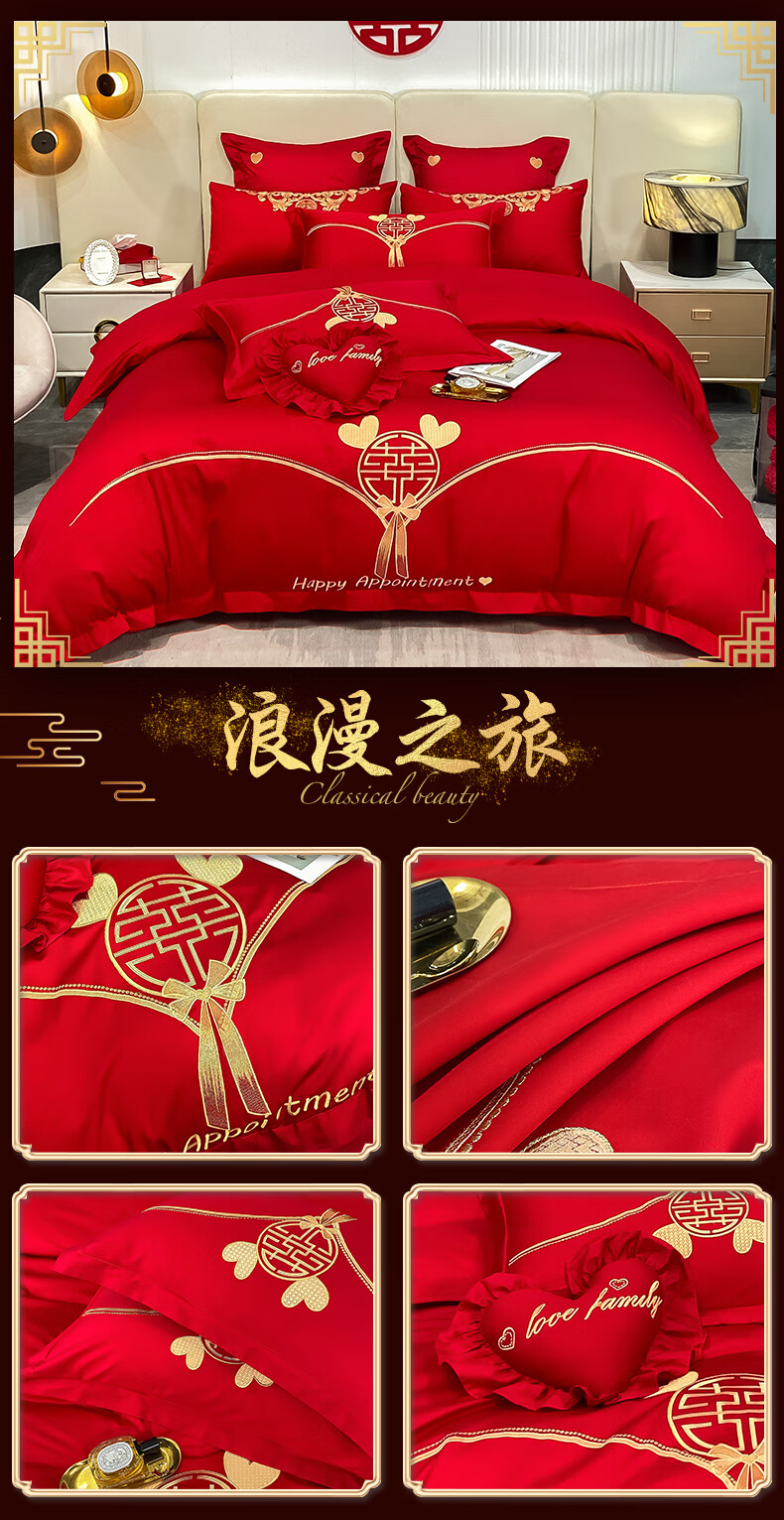 Wedding four-piece set, wedding bedding, embroidered quilt cover, brushed set, red wedding Chinese-style eight-piece quilt set, romantic accompanying 1.5-1.8m bed sheet eight-piece set