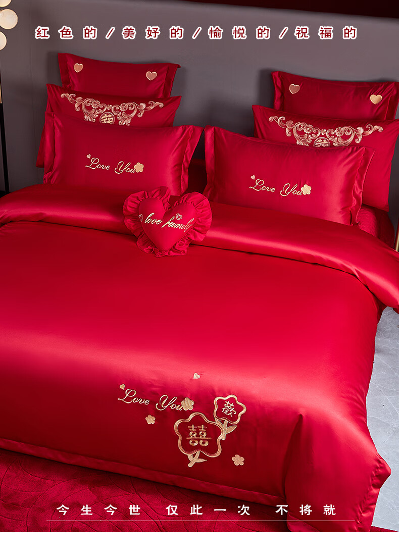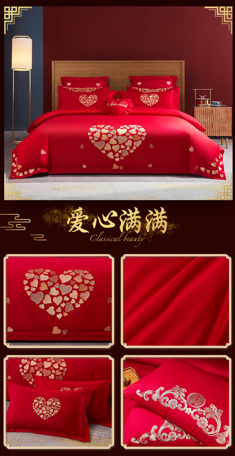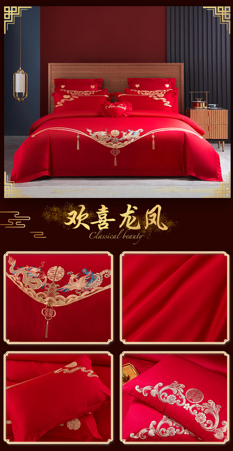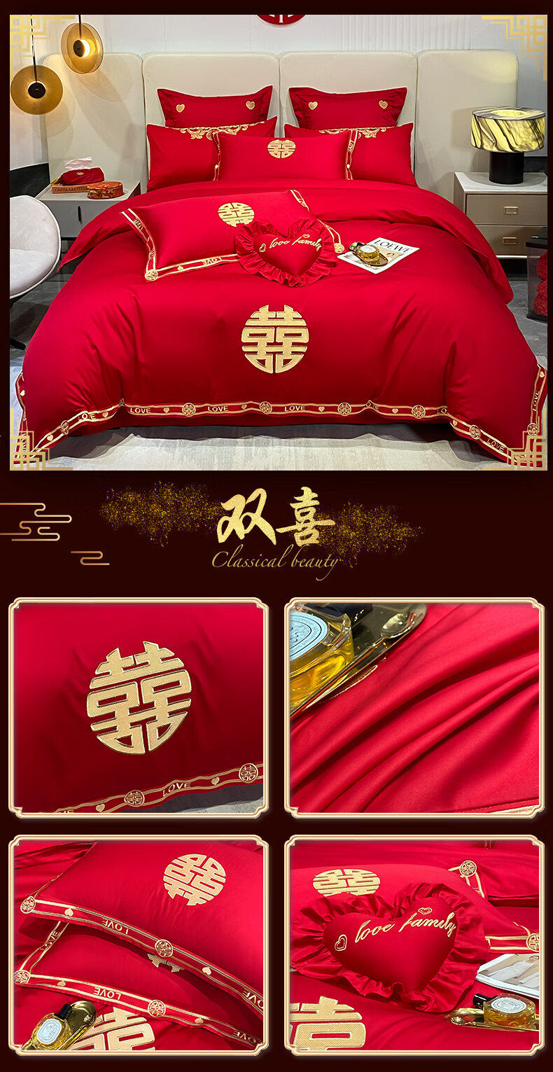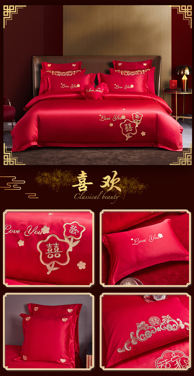 Wedding four-piece set, wedding bedding, embroidered quilt cover, brushed set, red wedding Chinese-style eight-piece quilt set, romantic accompanying 1.5-1.8m bed sheet eight-piece set