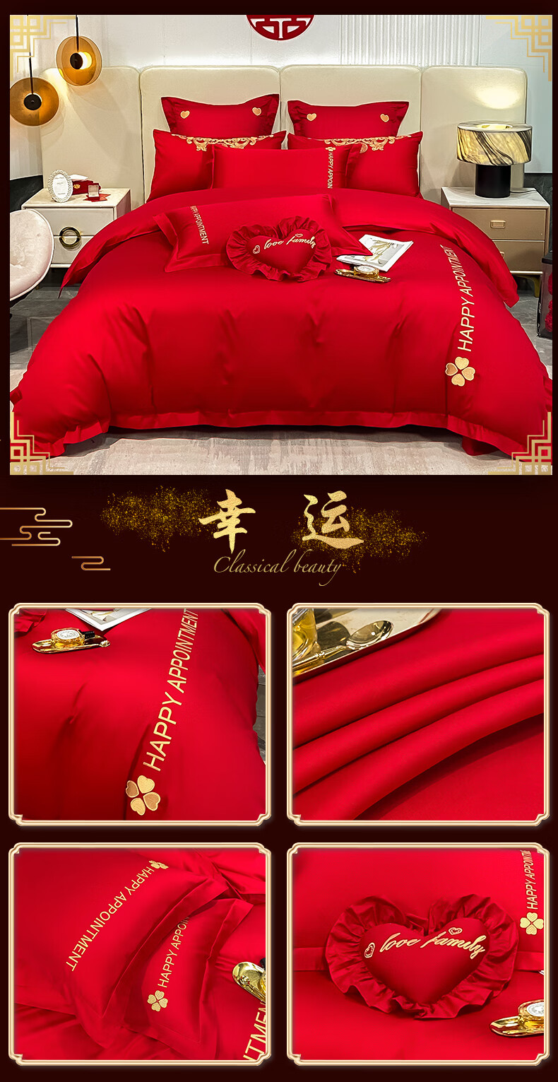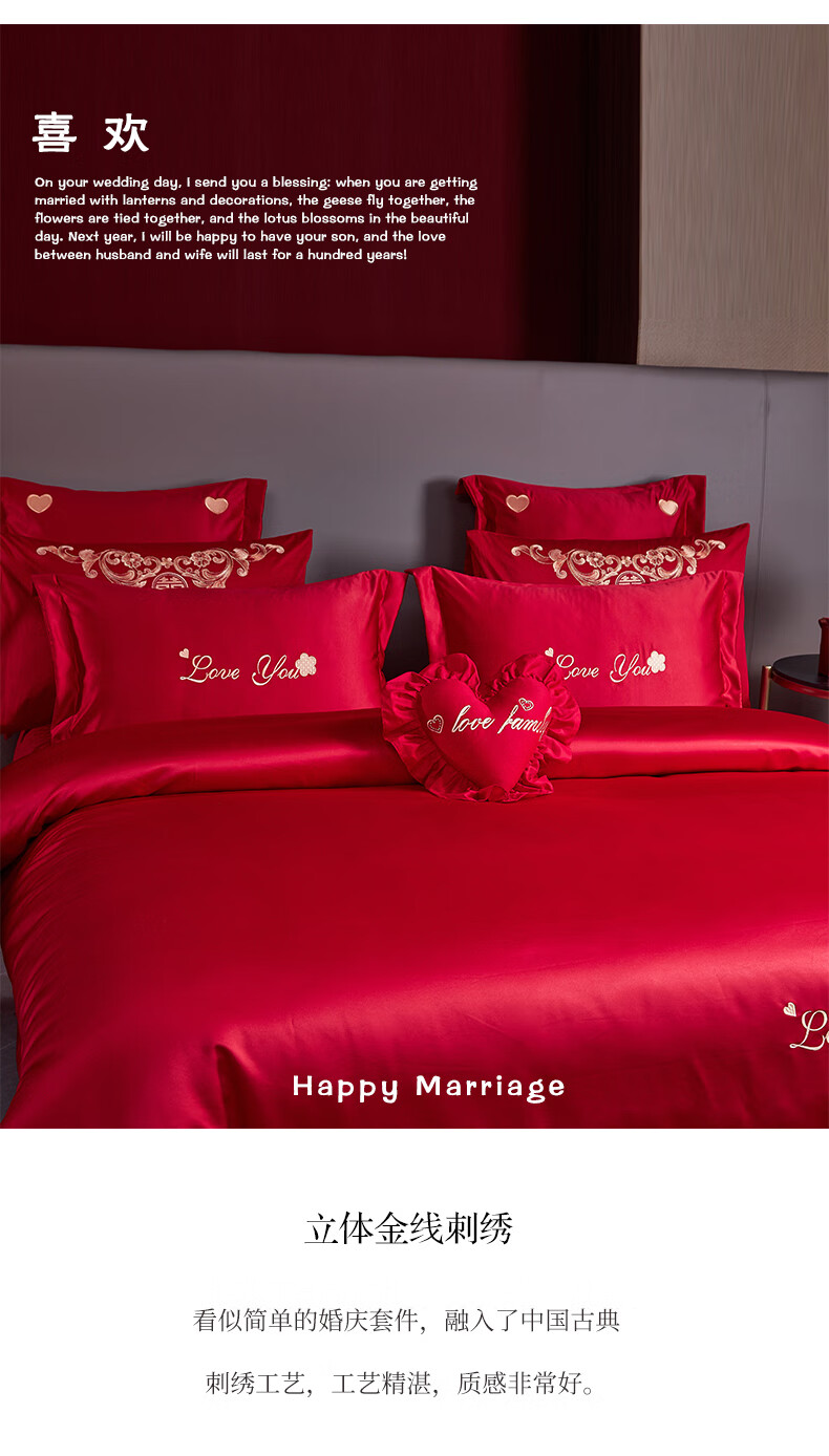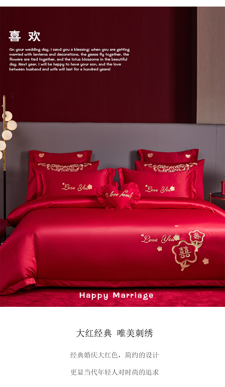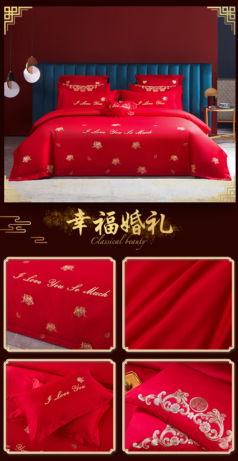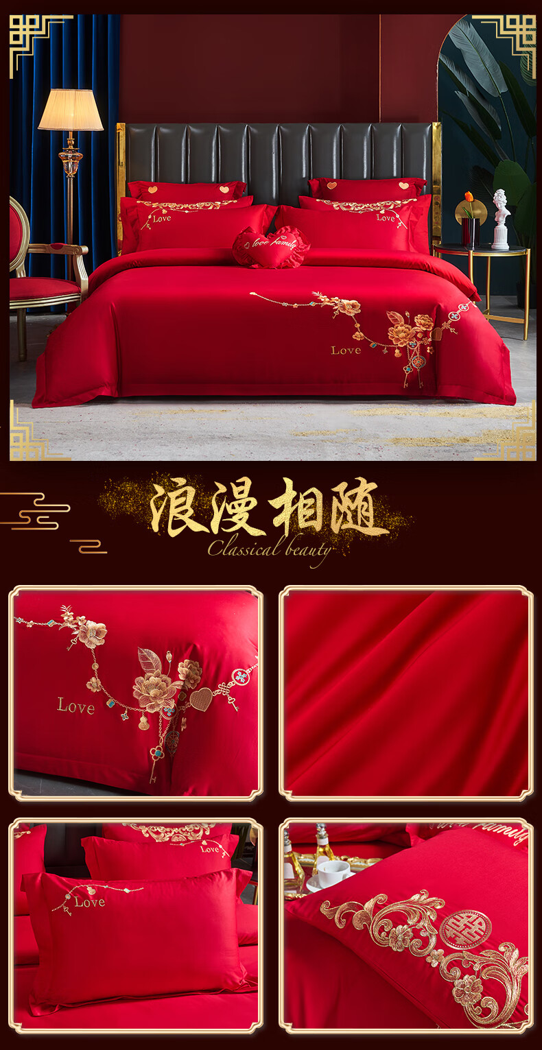 Wedding four-piece set, wedding bedding, embroidered quilt cover, brushed set, red wedding Chinese-style eight-piece quilt set, romantic accompanying 1.5-1.8m bed sheet eight-piece set