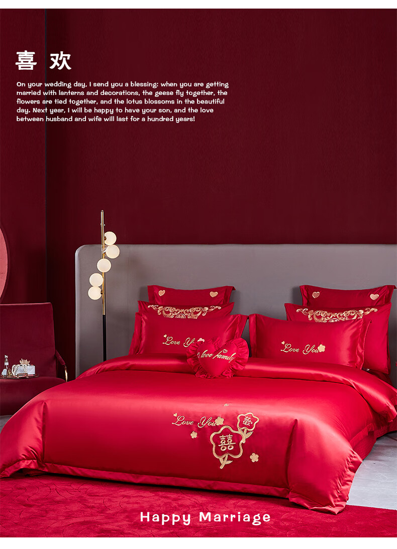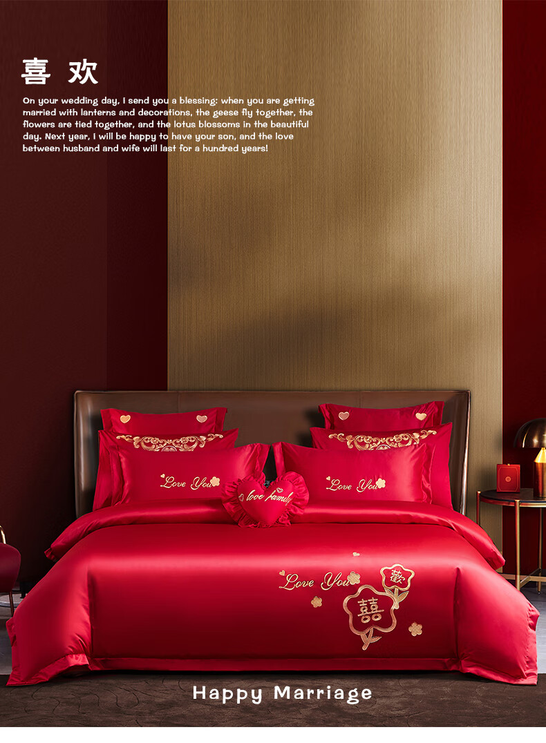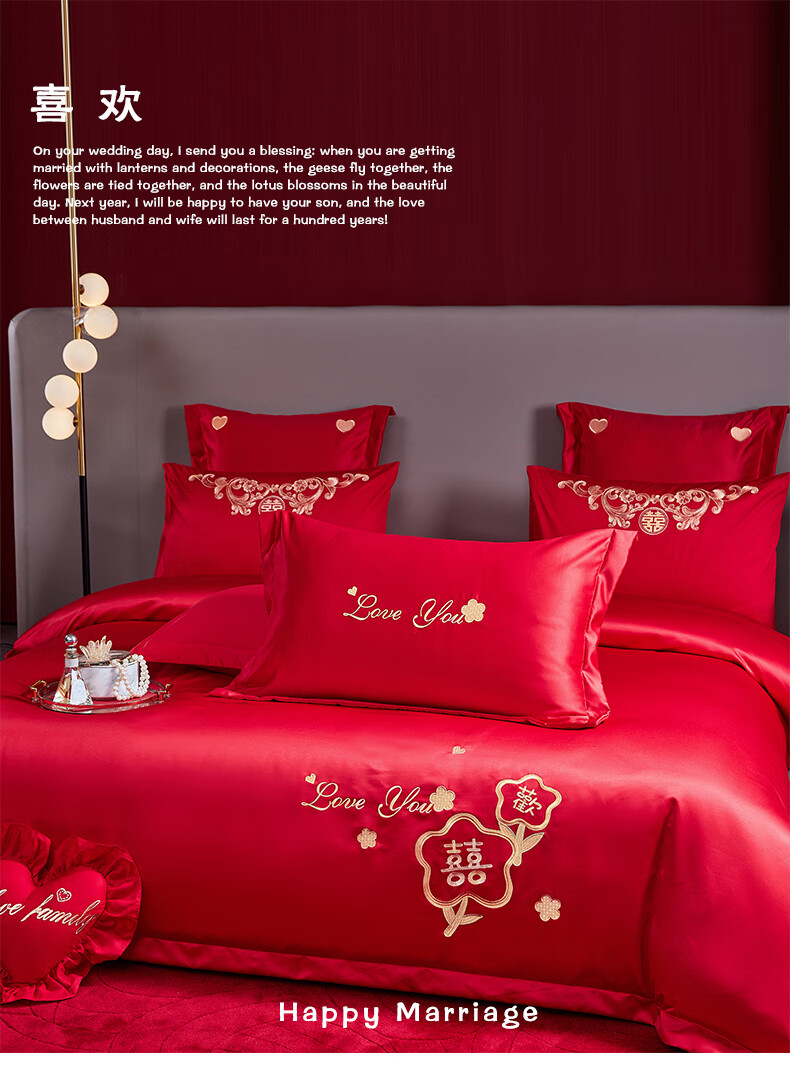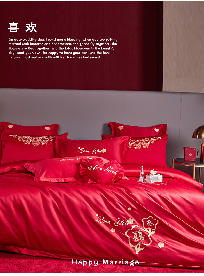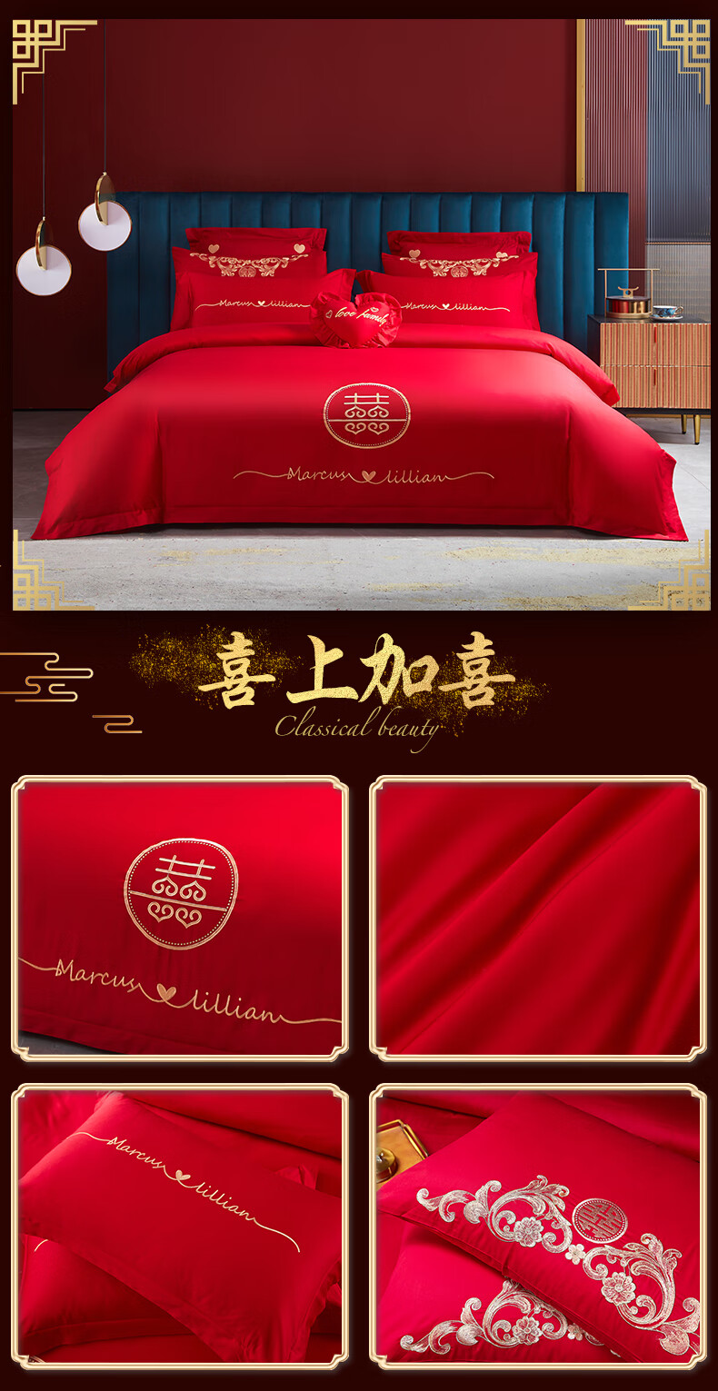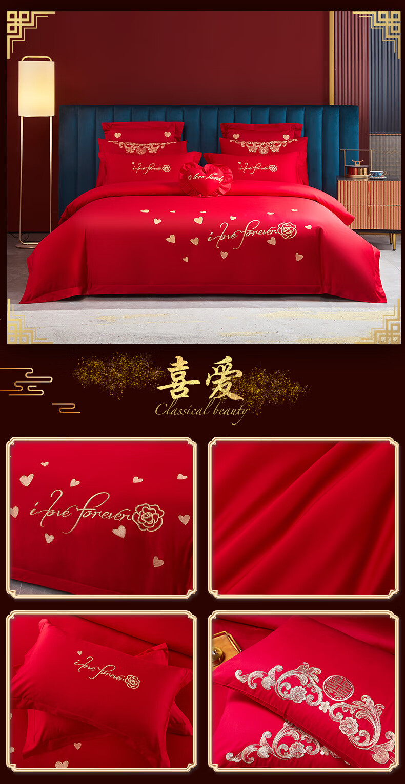 Wedding four-piece set, wedding bedding, embroidered quilt cover, brushed set, red wedding Chinese-style eight-piece quilt set, romantic accompanying 1.5-1.8m bed sheet eight-piece set
