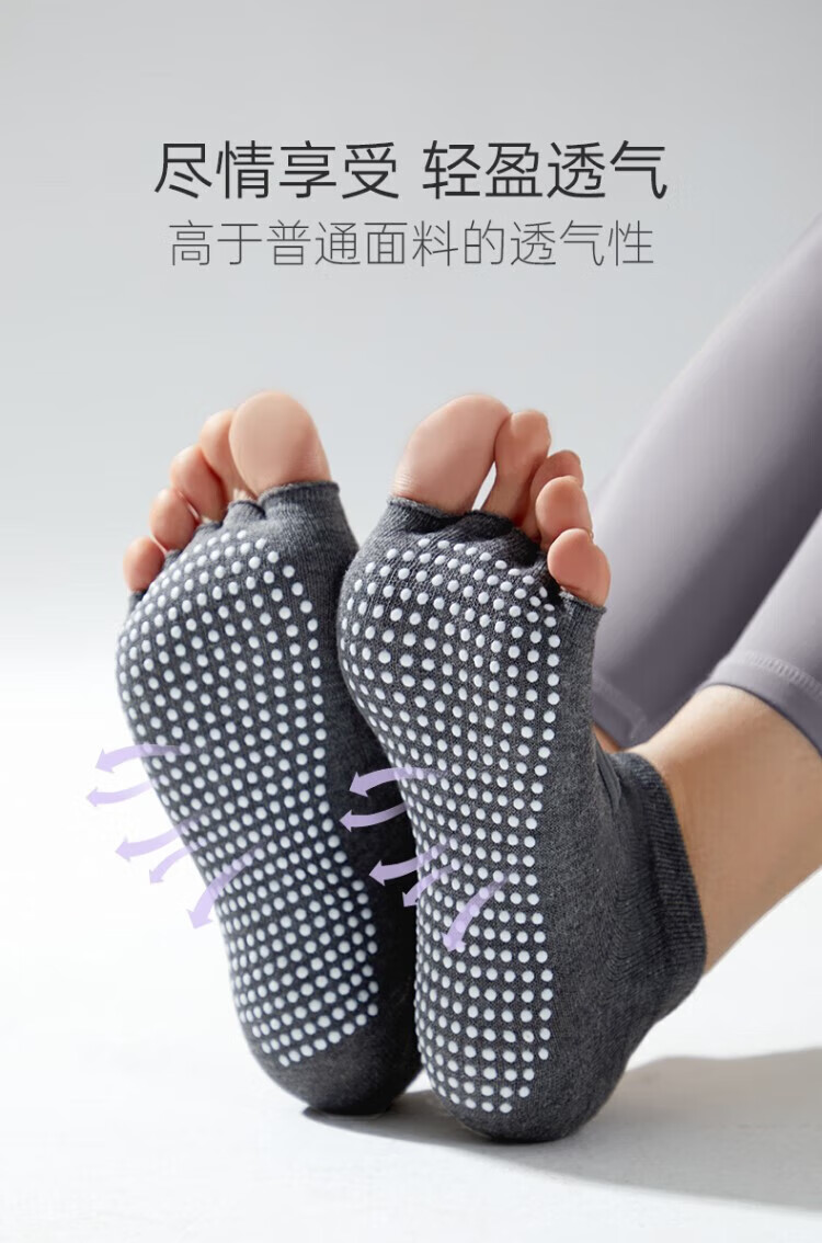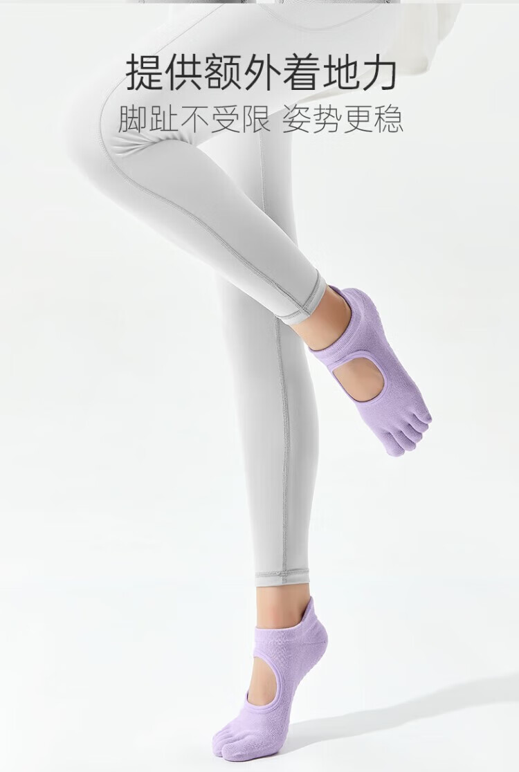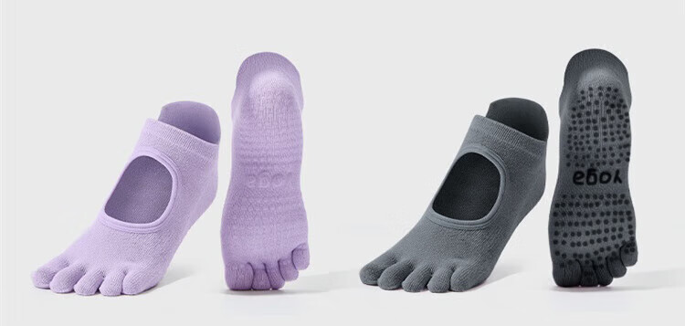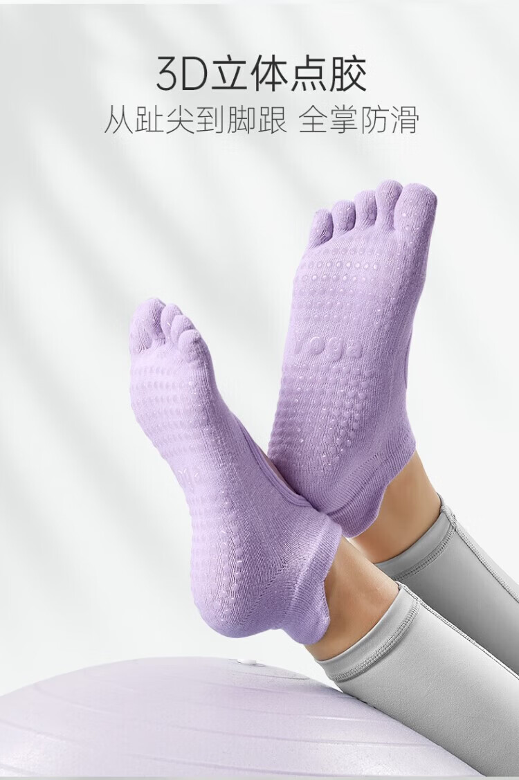 Hatha professional yoga socks non-slip five-finger socks Pilates socks floor socks indoor sports dance practice socks five-finger separation non-slip style one size taro purple 1 pair