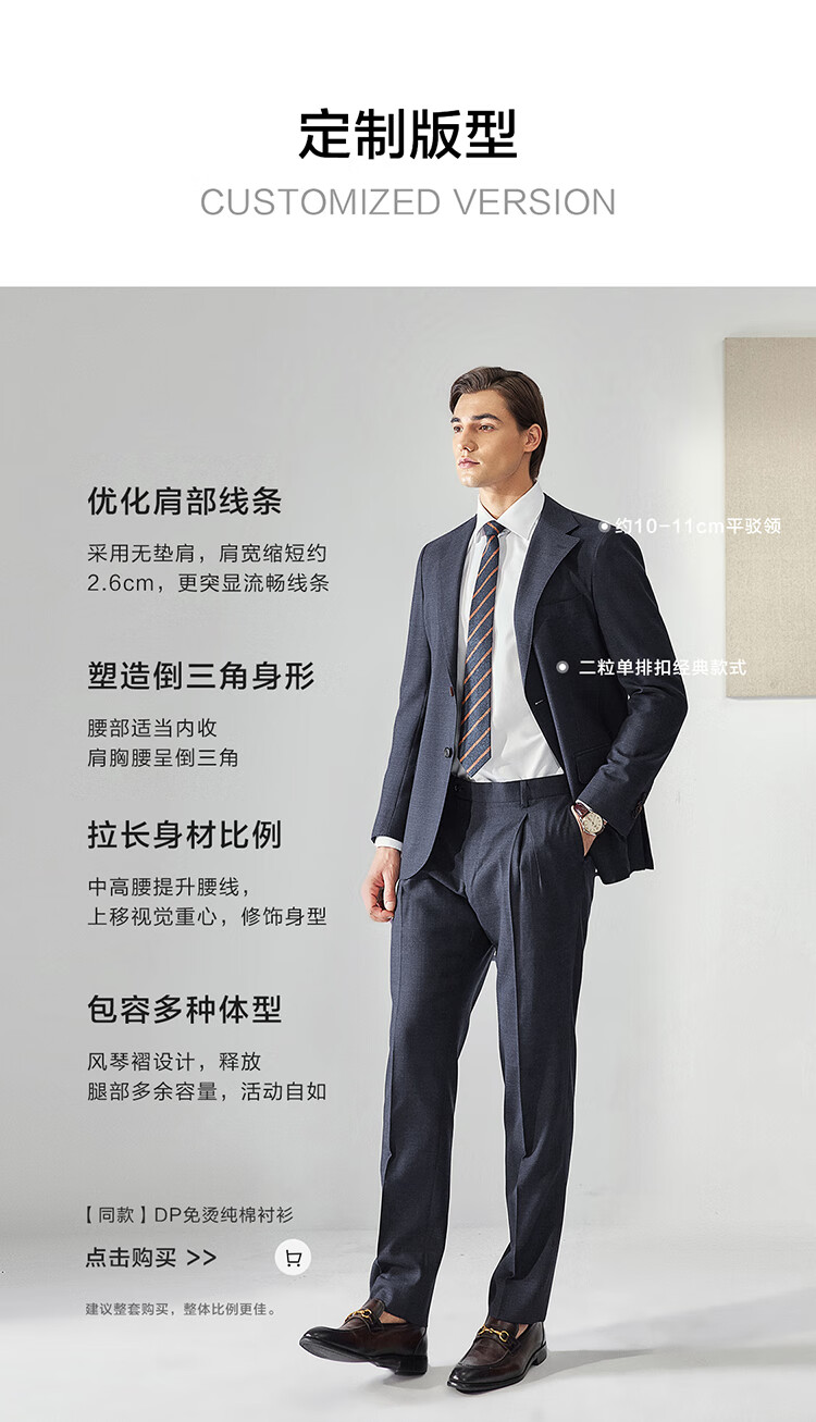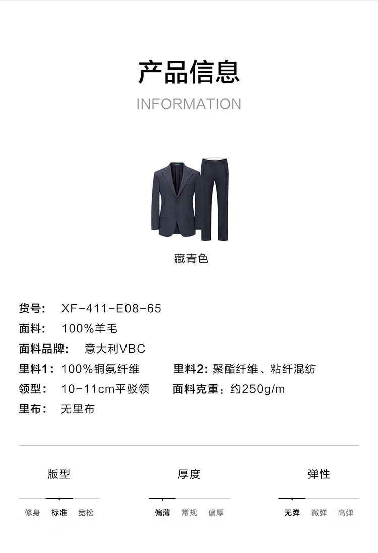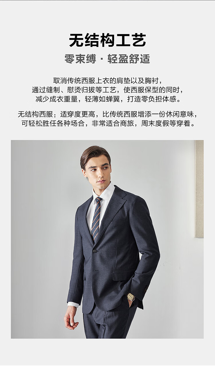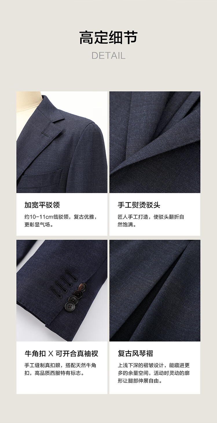 By Creations VBC Bopin unstructured pure wool suit suit men's business professional formal groom wedding suit navy blue 44 (165/84A)