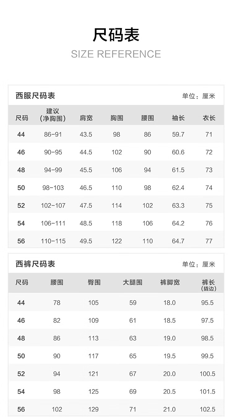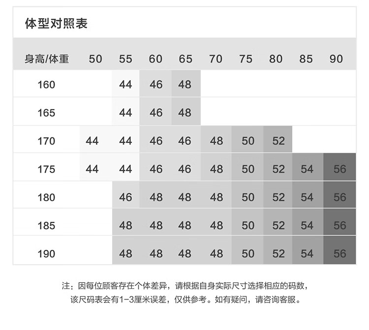 China (cm) 160-165/84-86 165-170 / 88-90 167-172 / 92-96 168-173 / 98-102 170-176 / 106-110