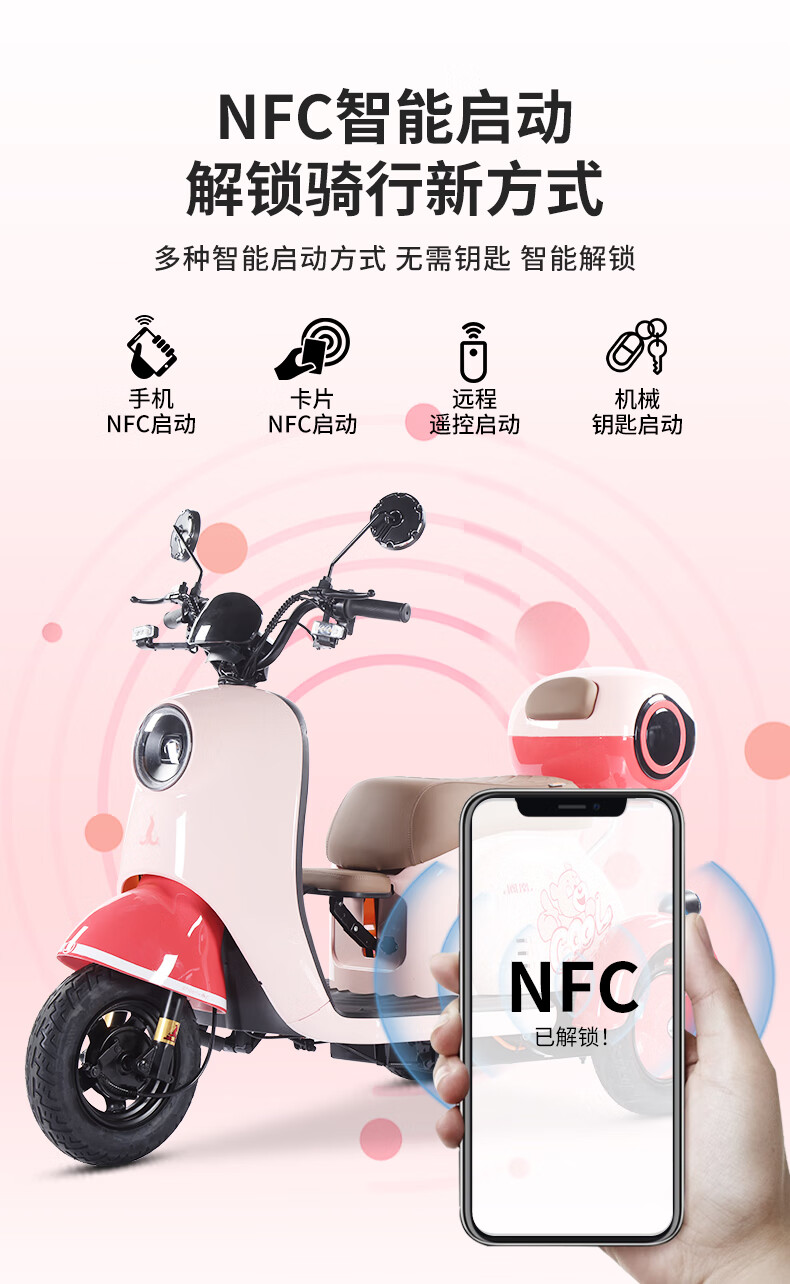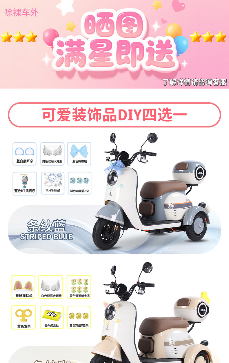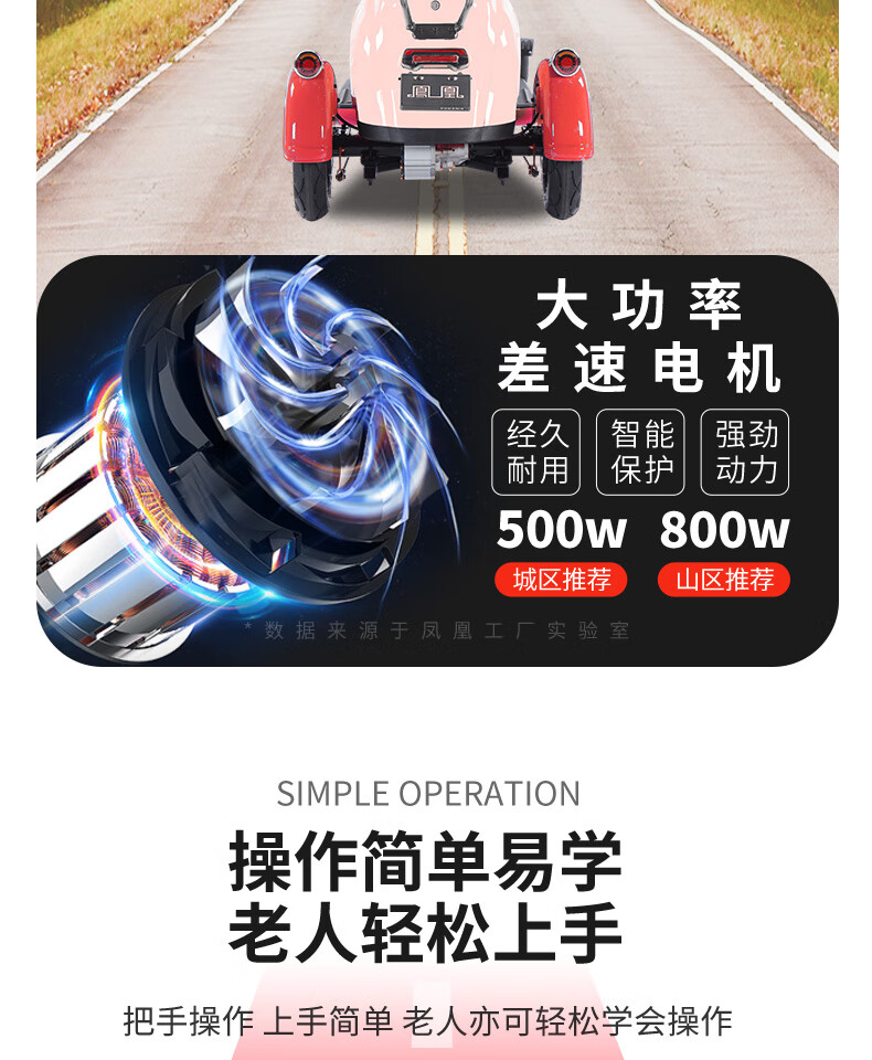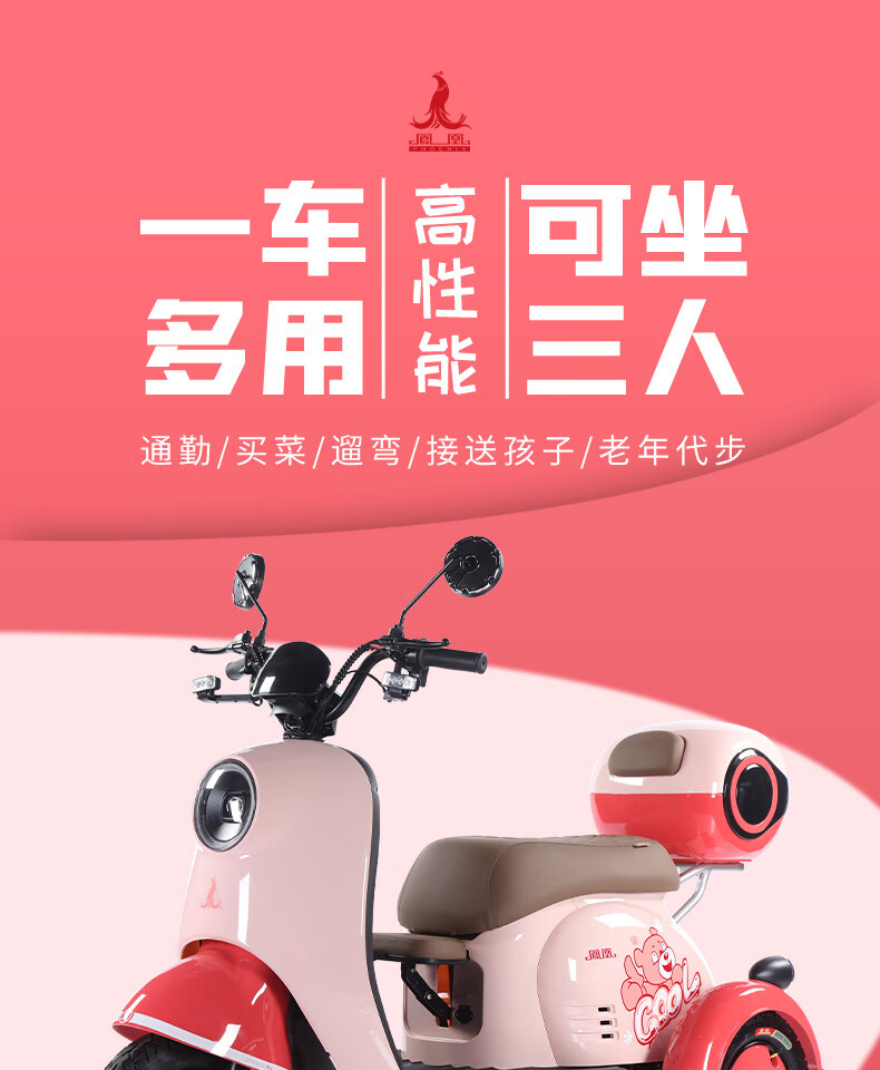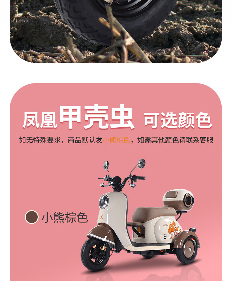 Phoenix Beetle Electric Tricycle Household Small Electric Motorcycle Adult Leisure Battery Car for Women 500W+48V12A Lead Acid + Range About 25 Kilometers