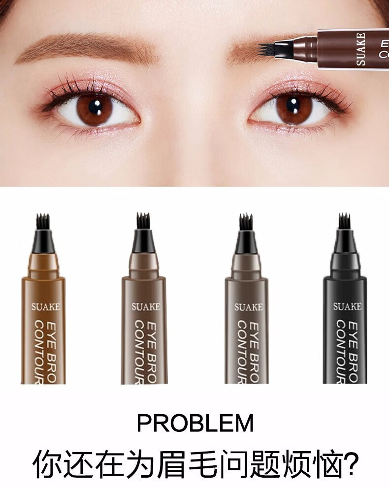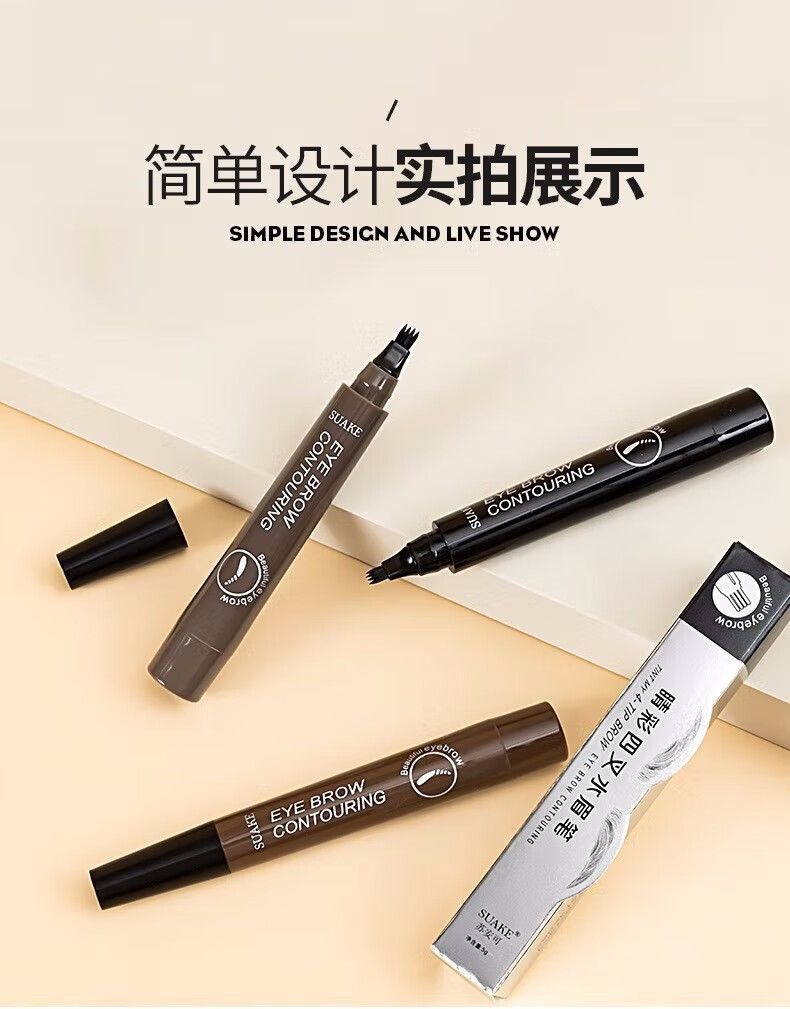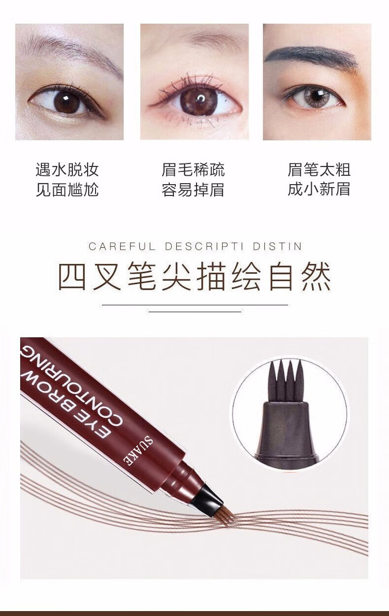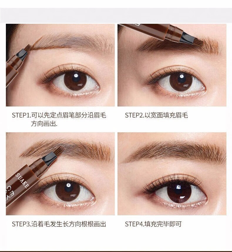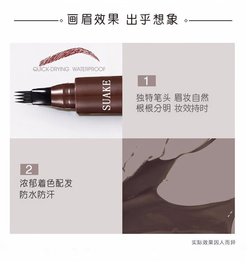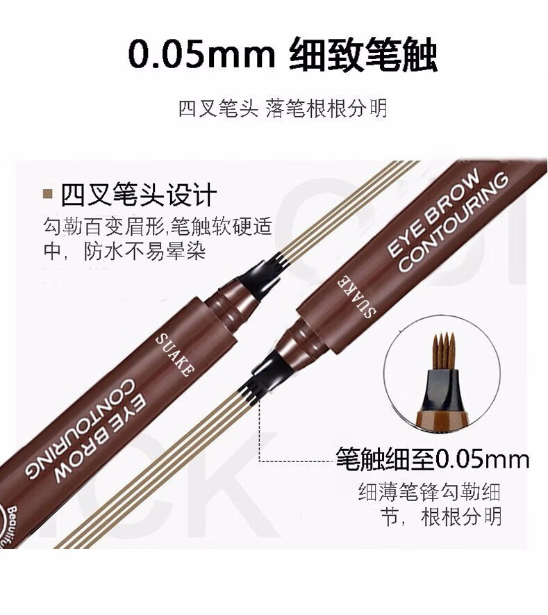 Su Anke's wild eyebrow pencil is waterproof, sweat-proof, not easy to fade, official lazy square four-pronged eyebrow pencil, simulated eyebrow pencil for newbies, Christmas, 1 dark brown + 1 natural black (two in total)