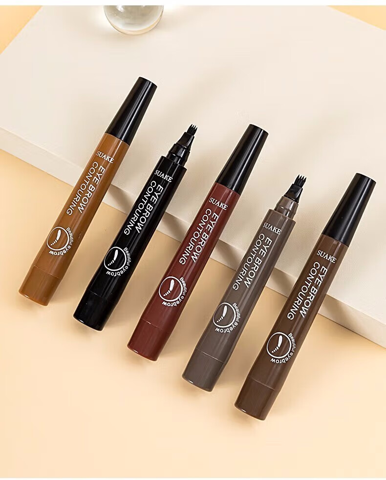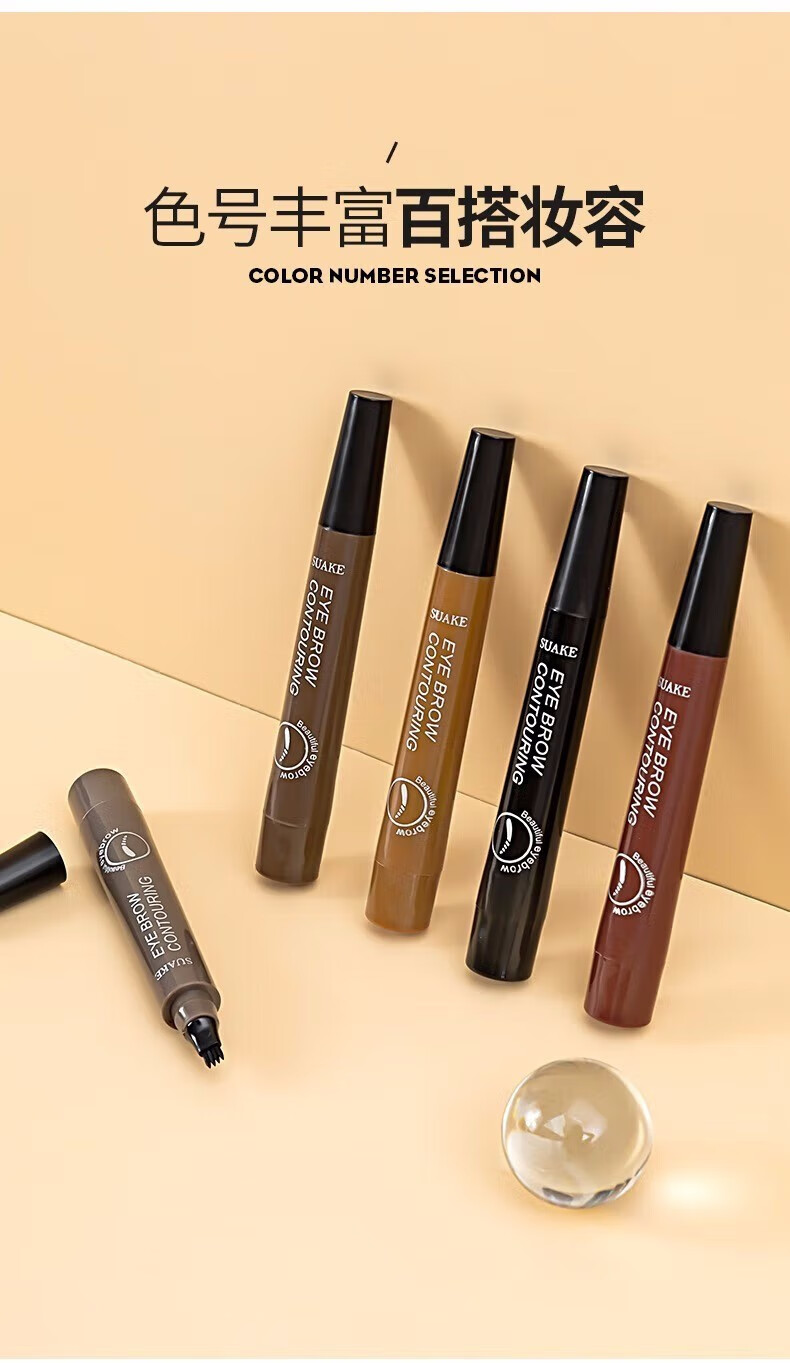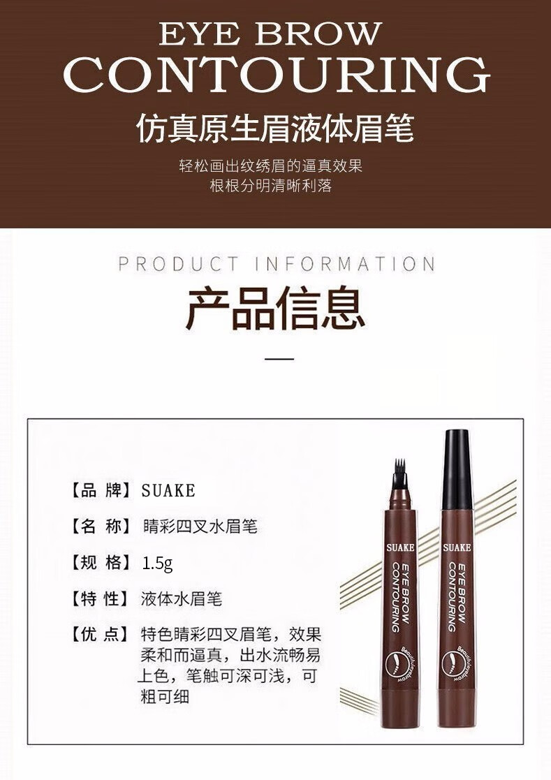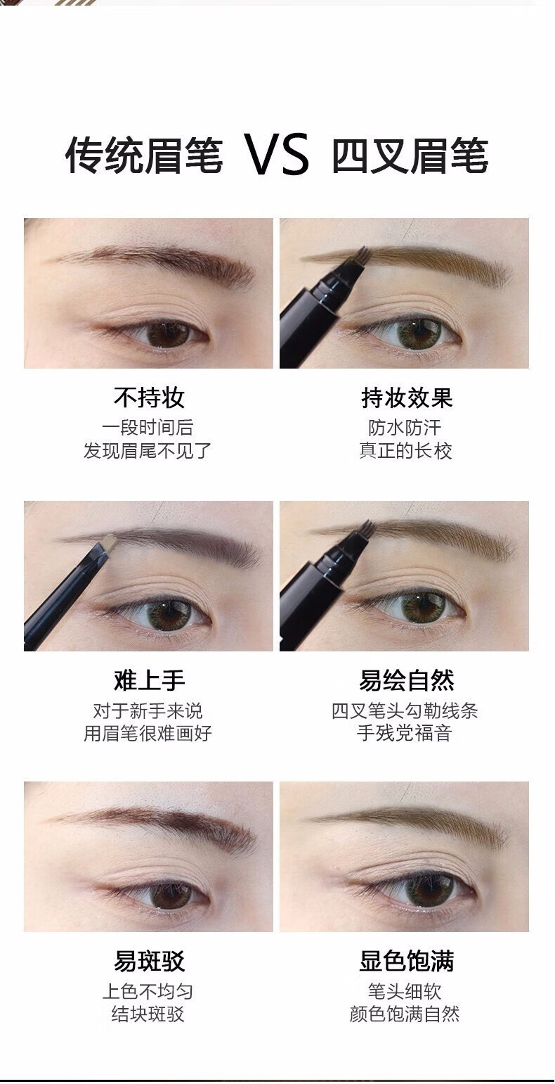 Su Anke's wild eyebrow pencil is waterproof, sweat-proof, not easy to fade, official lazy square four-pronged eyebrow pencil, simulated eyebrow pencil for newbies, Christmas, 1 dark brown + 1 natural black (two in total)