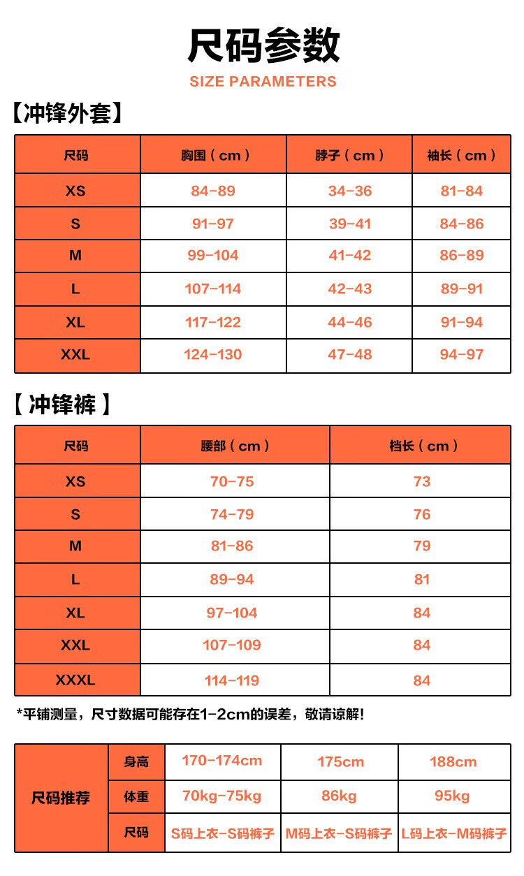 China (cm) 165 / 88-90 170 / 96-98 175 / 108-110 180 / 118-122 185 / 126-130