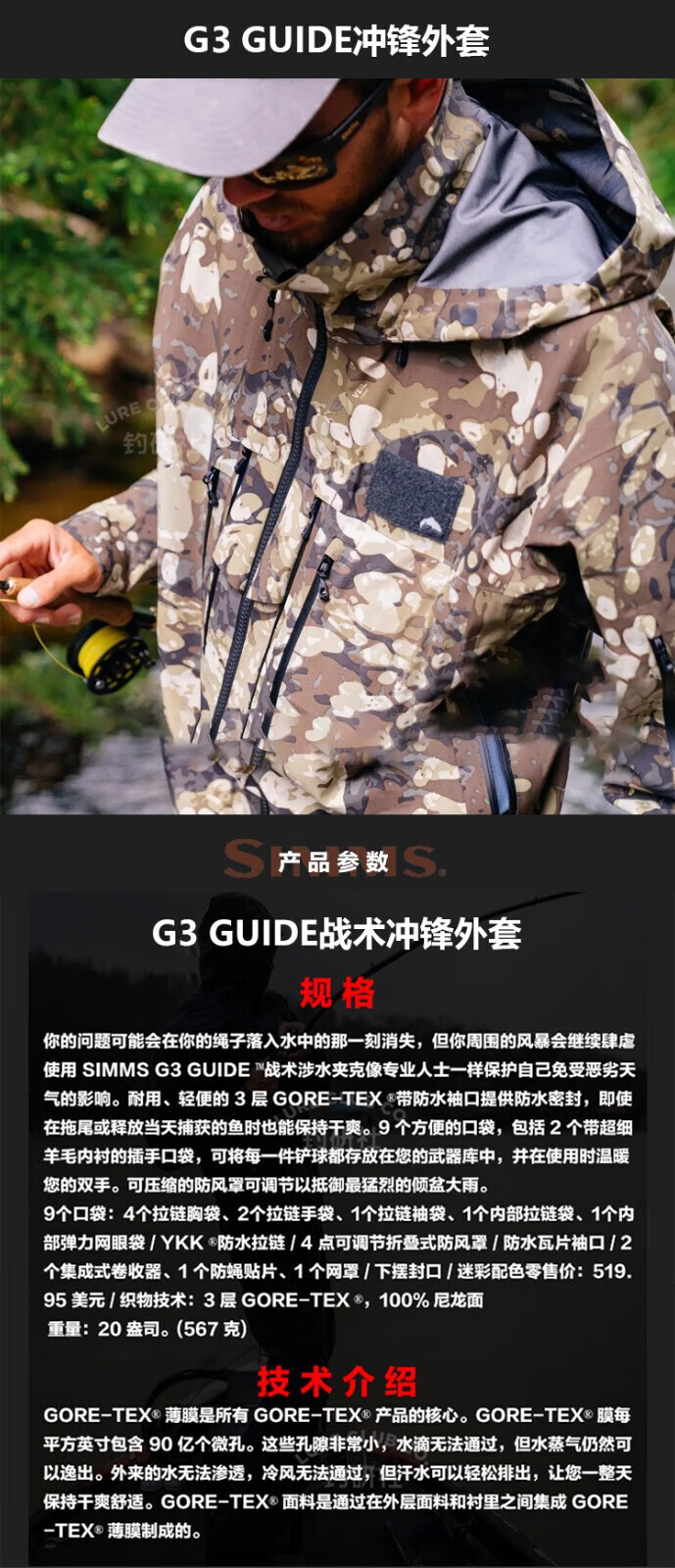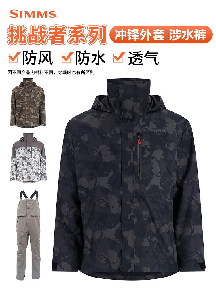 SIMMS fishing jacket 2023 new challenger breathable windproof wading pants Luya jacket rainproof CX assault pants Woodland Camo S