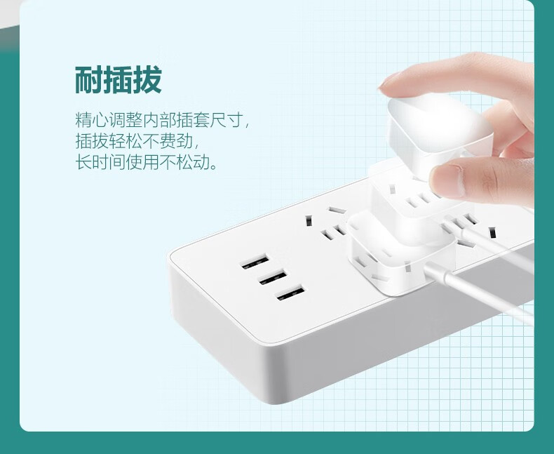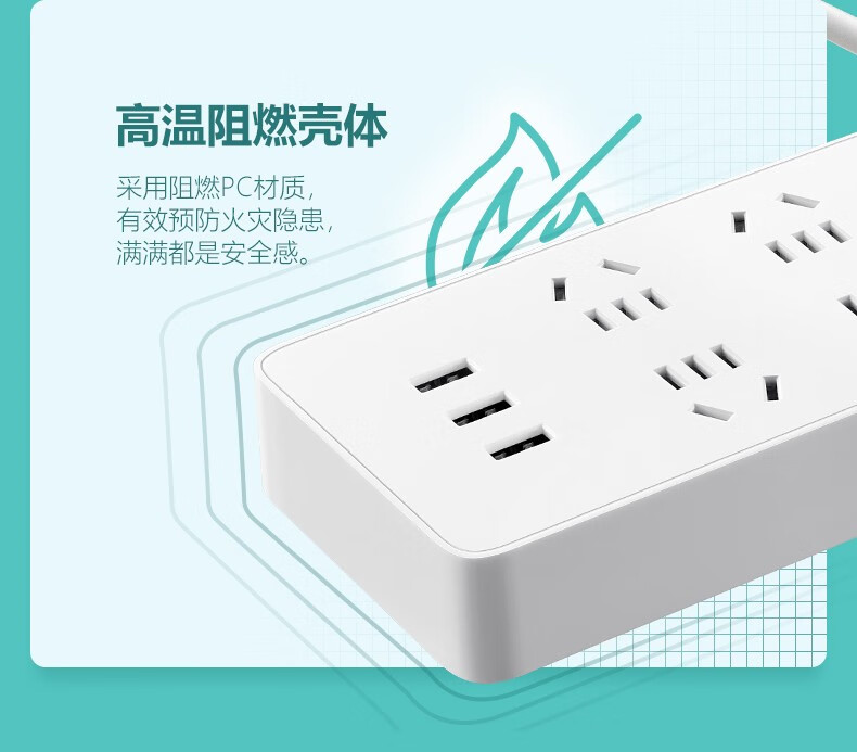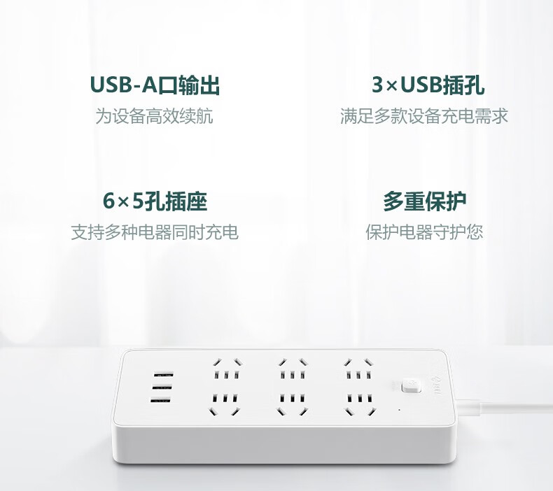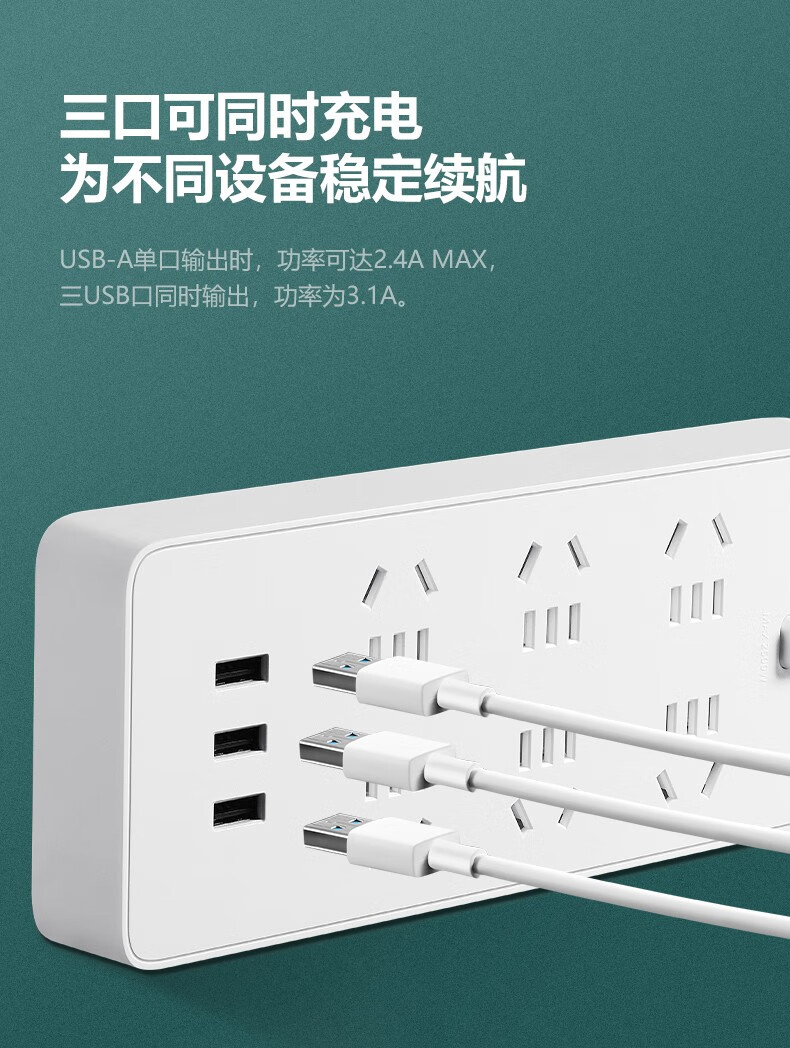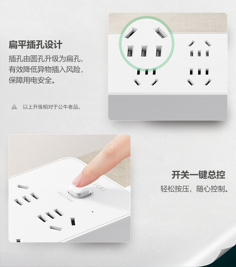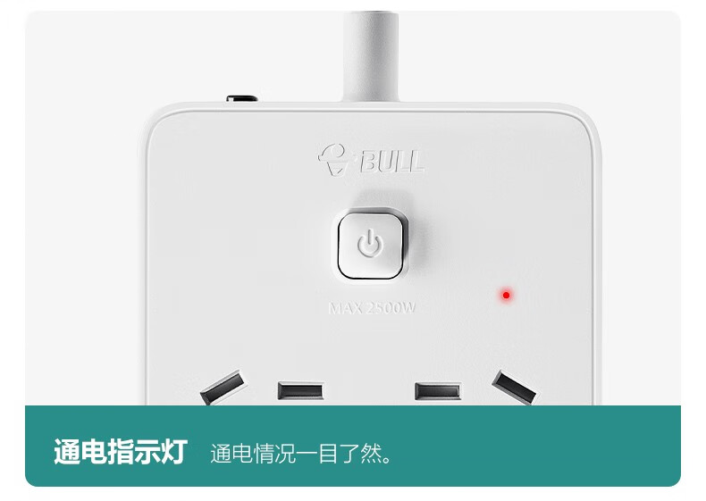 Bull plug strip UUN153X boxed white USB socket Xiaobai, total length 1.8 meters, 3*USB+6*five holes+master control switch