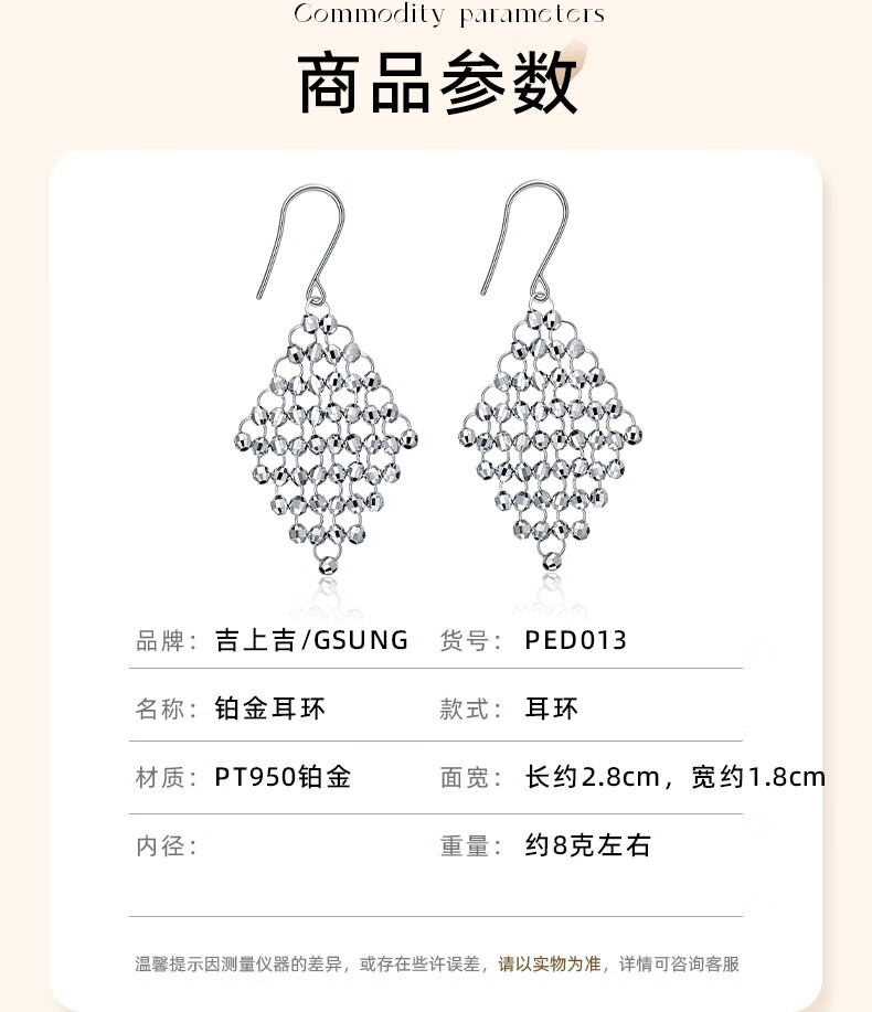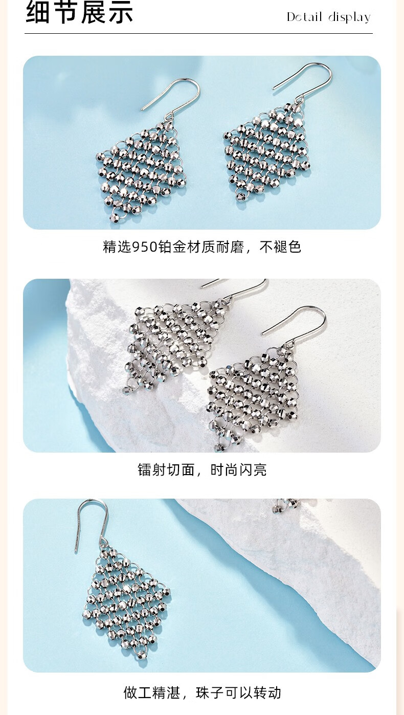 GsunG platinum earrings for women PT950 new laser beads ear hooks platinum fashionable earrings boutique earrings price by gram contact before bidding