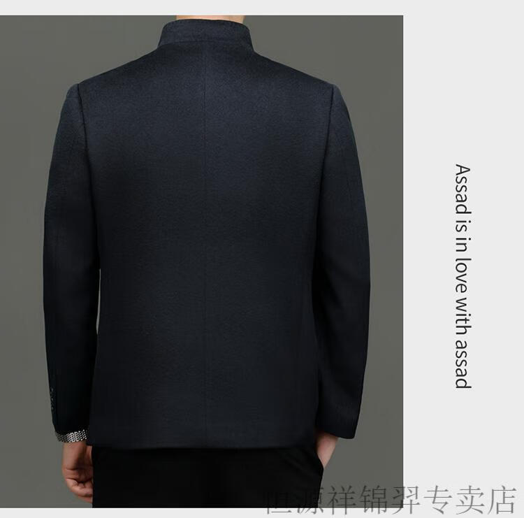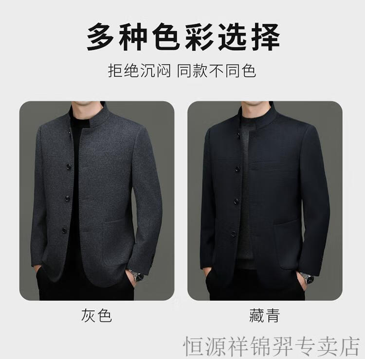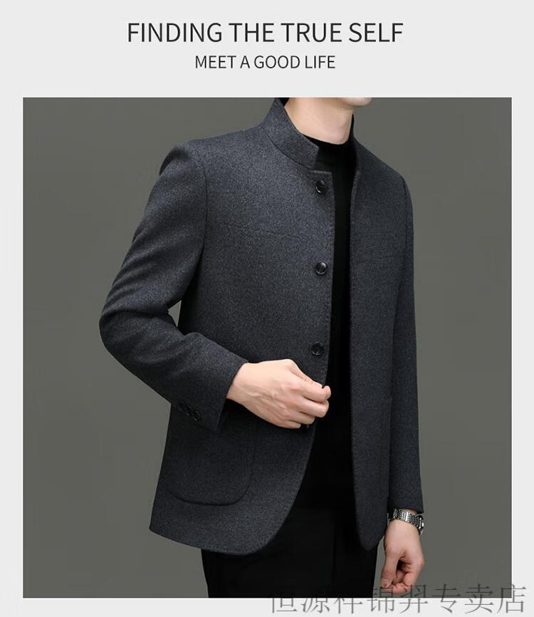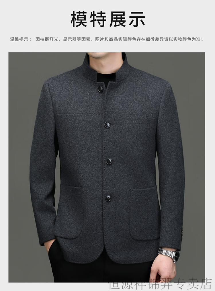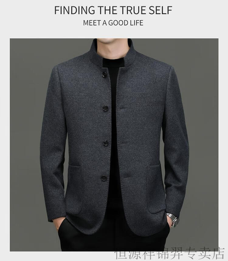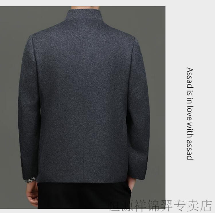 Hengyuanxiang Chinese tunic suit for men | woolen coat for middle-aged men with stand-up collar Chinese suit mulberry | silk daddy top gray