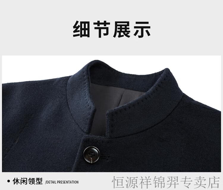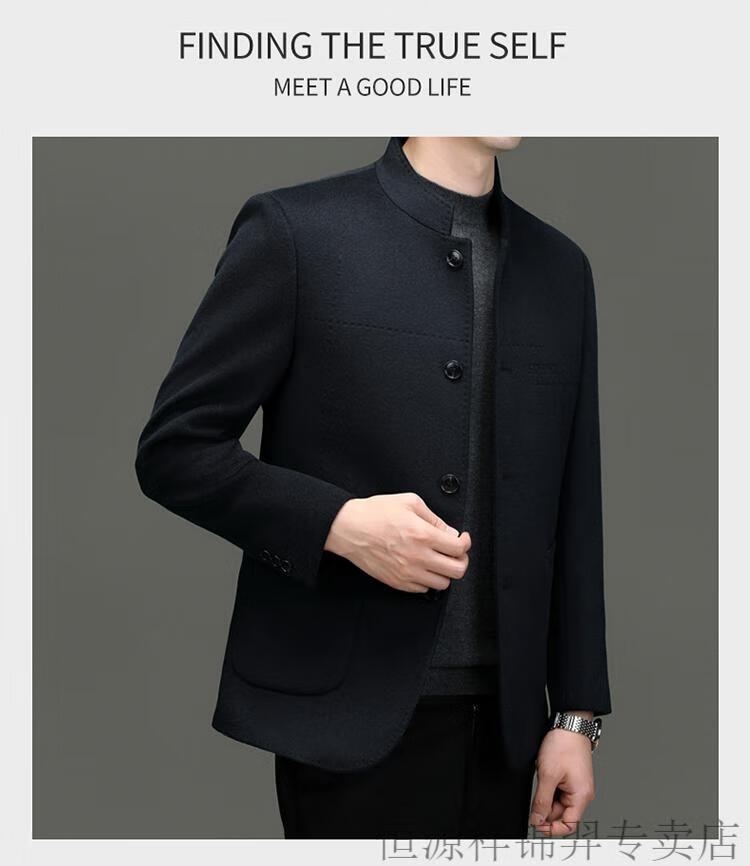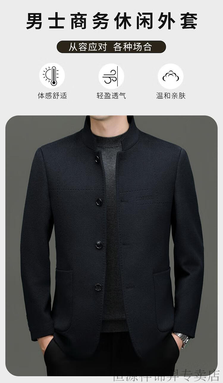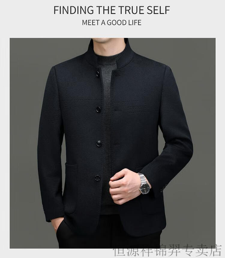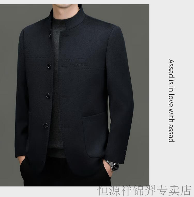 Hengyuanxiang Chinese tunic suit for men | woolen coat for middle-aged men with stand-up collar Chinese suit mulberry | silk daddy top gray