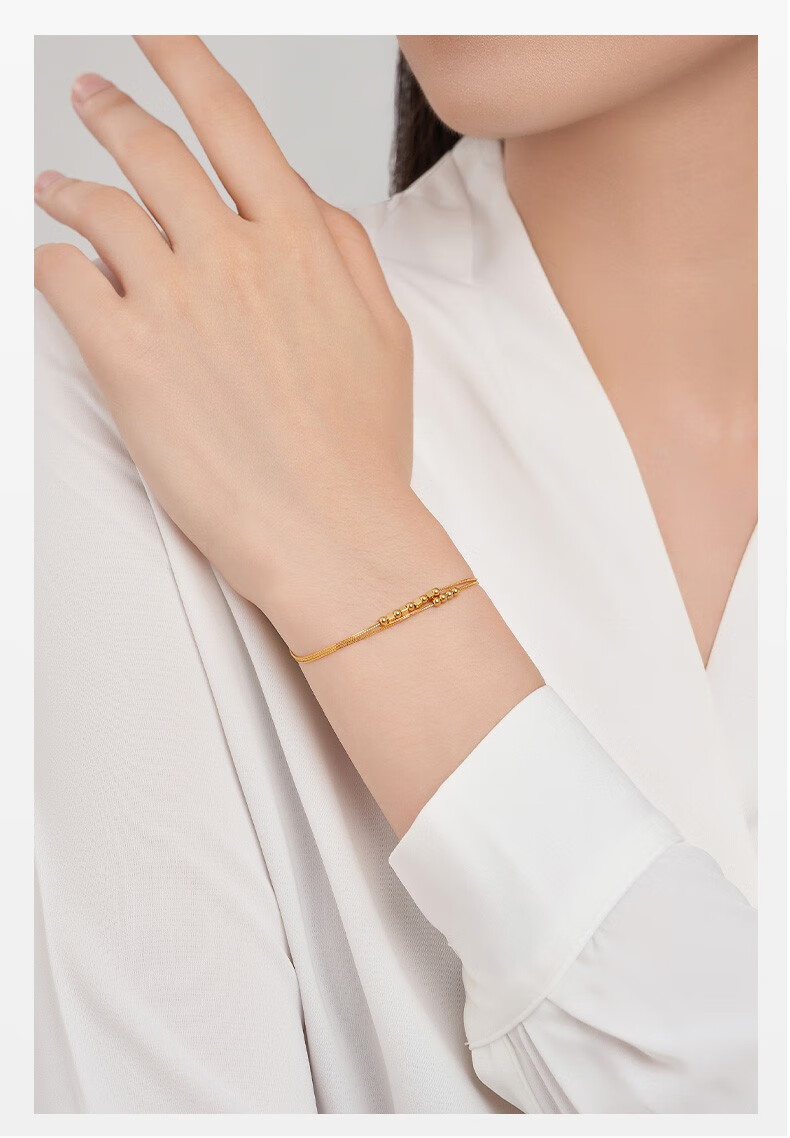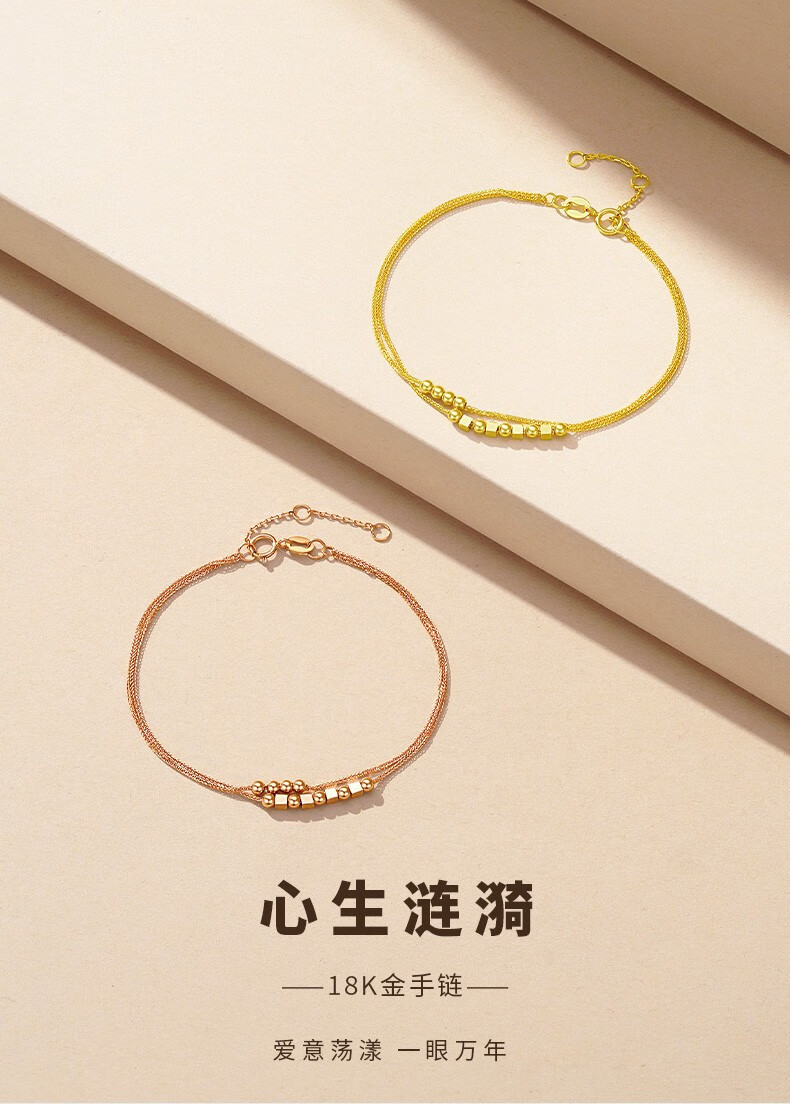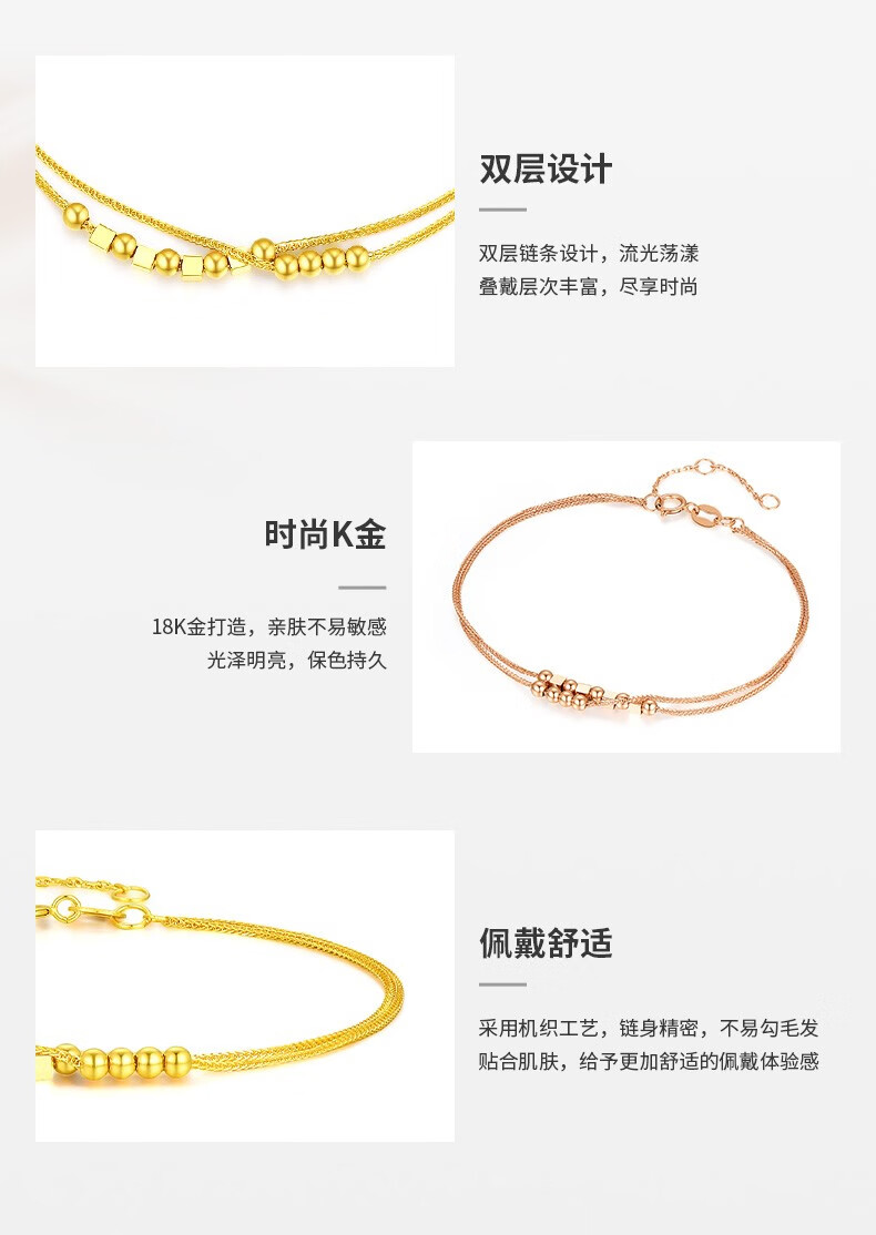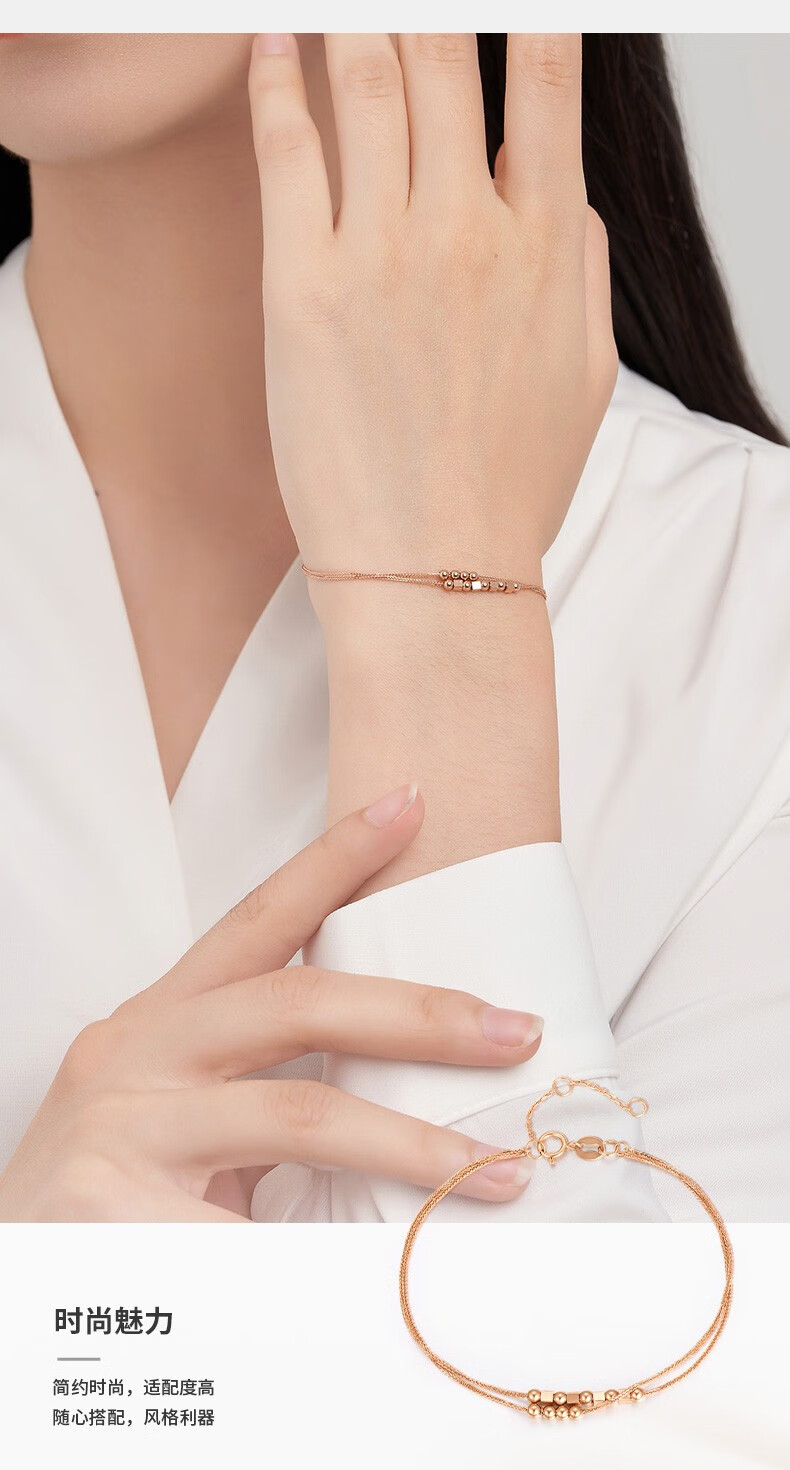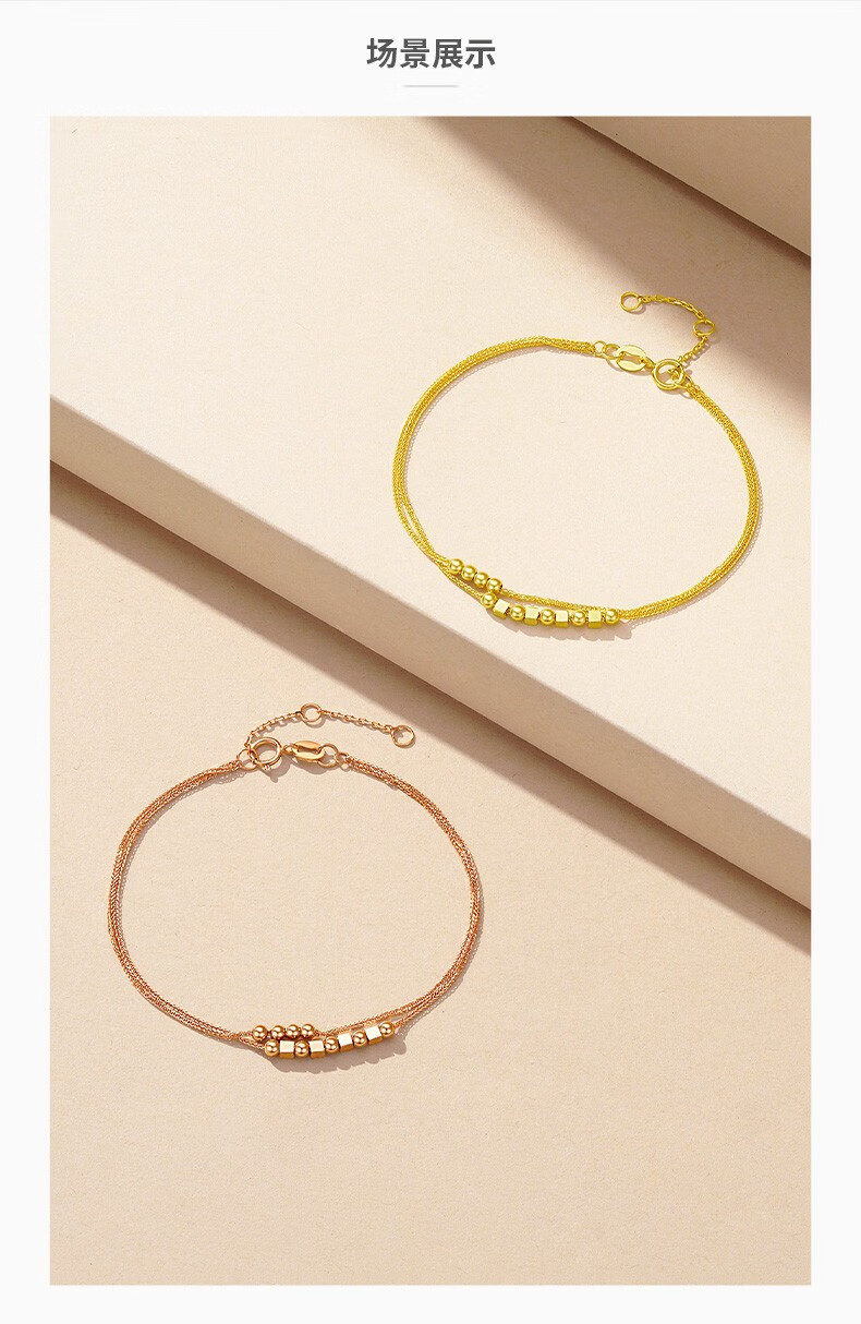 Chow Tai Sang 18K gold bracelet for women rose gold color gold double-layered sugar cube red and yellow k gold bead bracelet as a birthday gift for girlfriend 18K red double-layered sugar cube bracelet (approximately 1.05g)