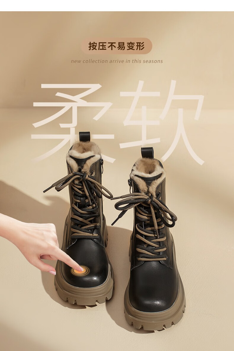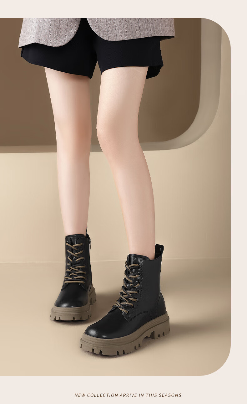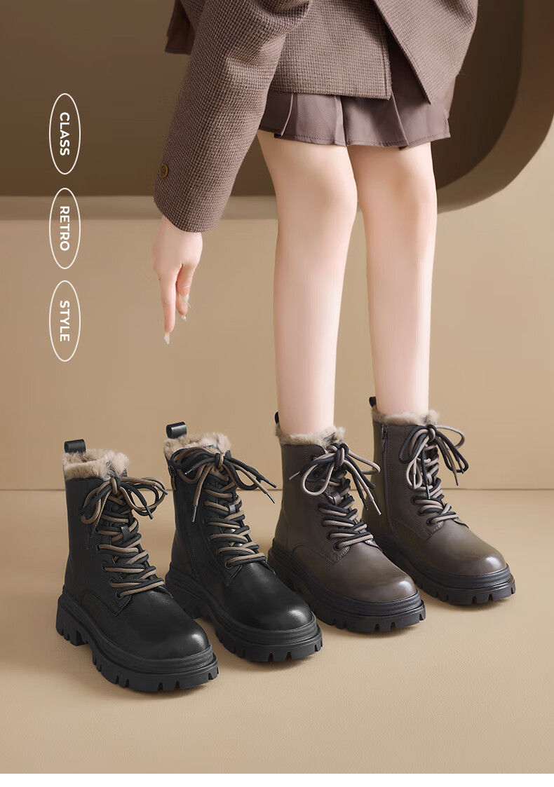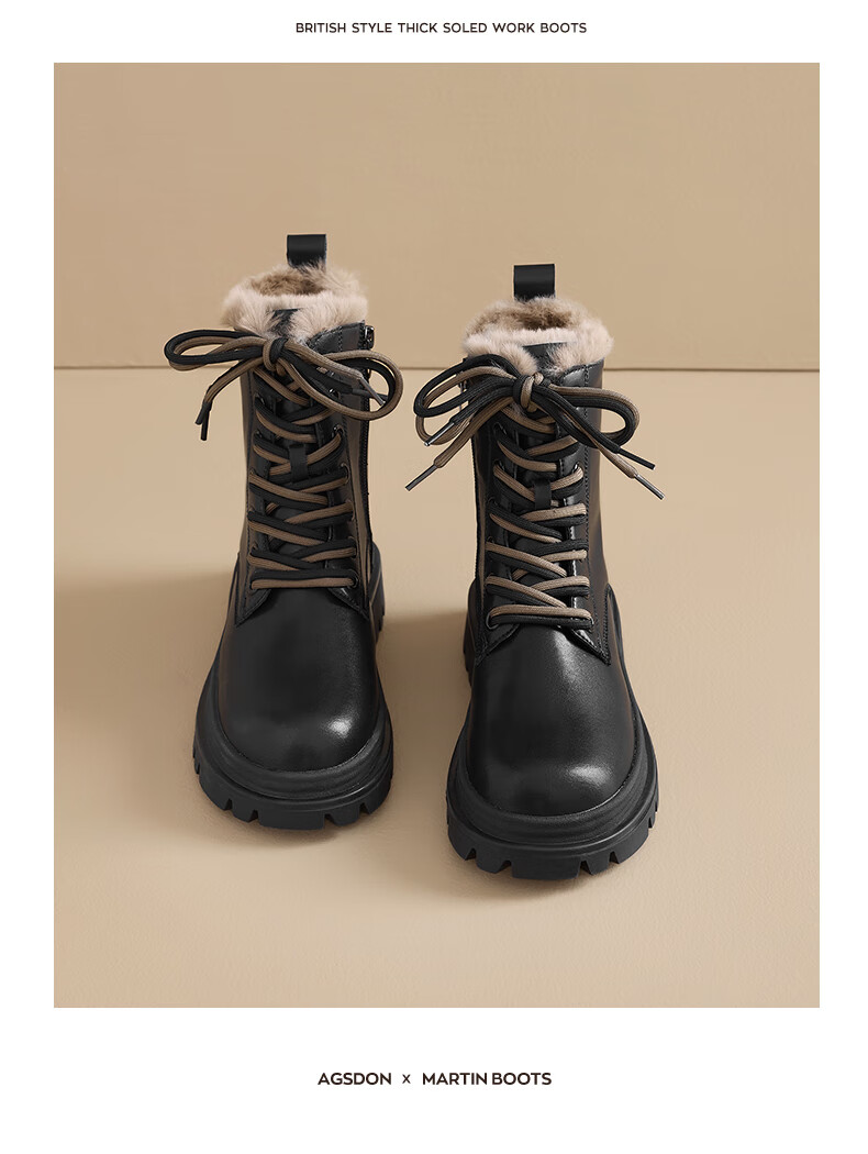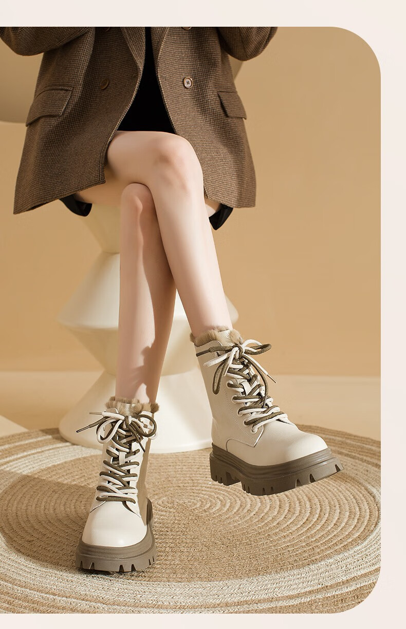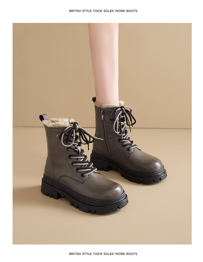 Augushiden Martin boots for women 2025 new winter plus velvet warm thick-soled snow boots British style mid-calf short boots cotton shoes 634217 meters khaki thick velvet 37