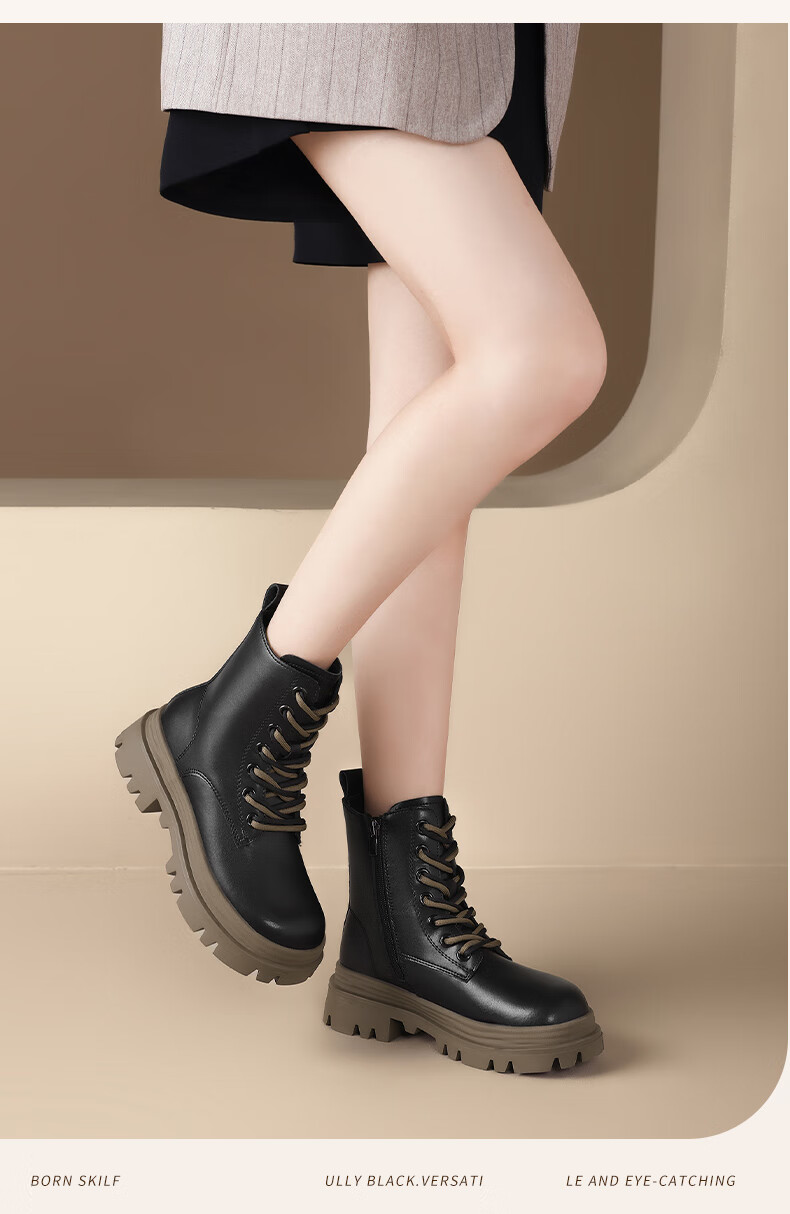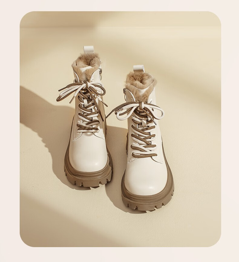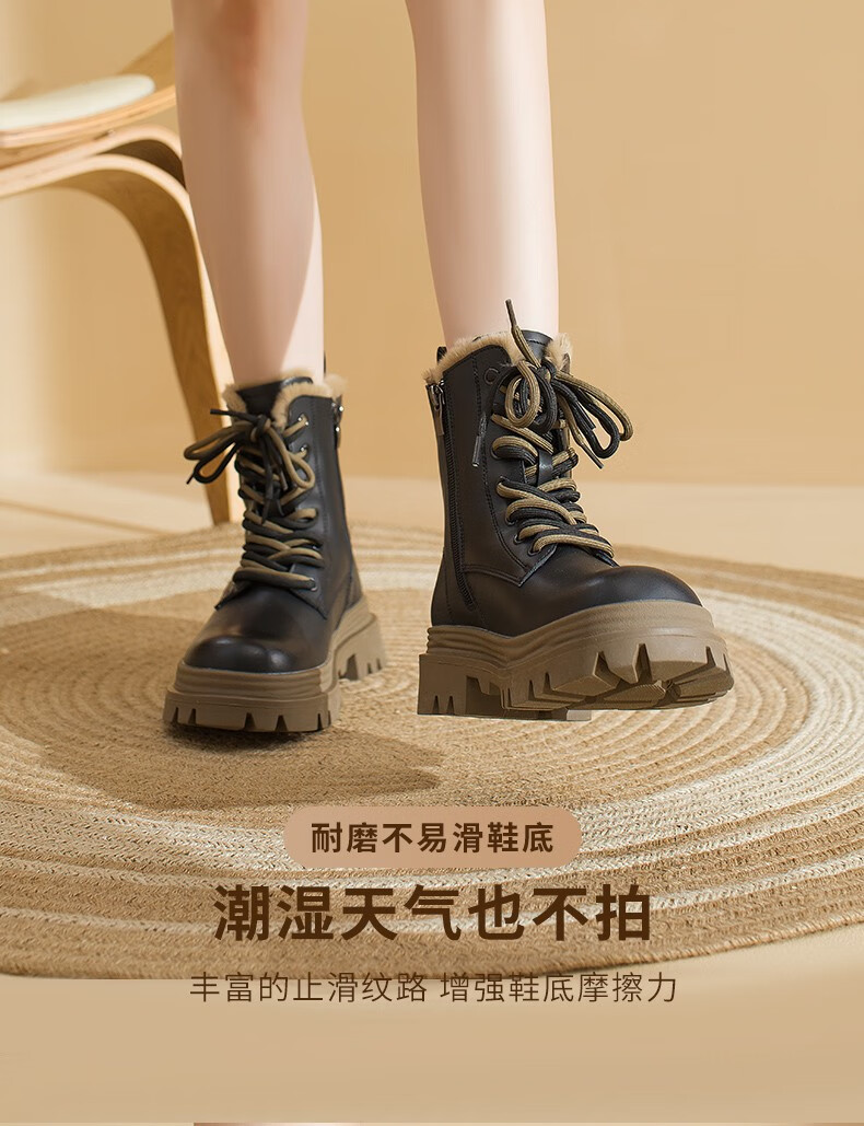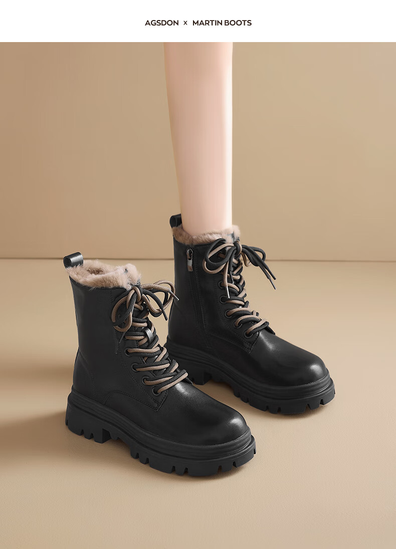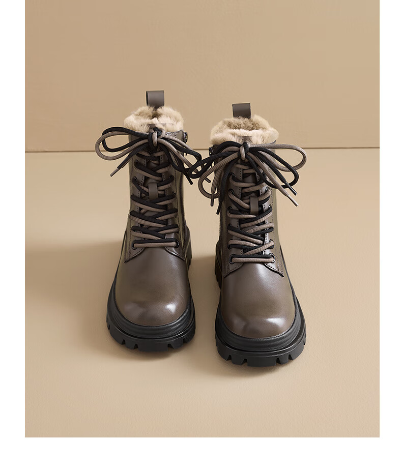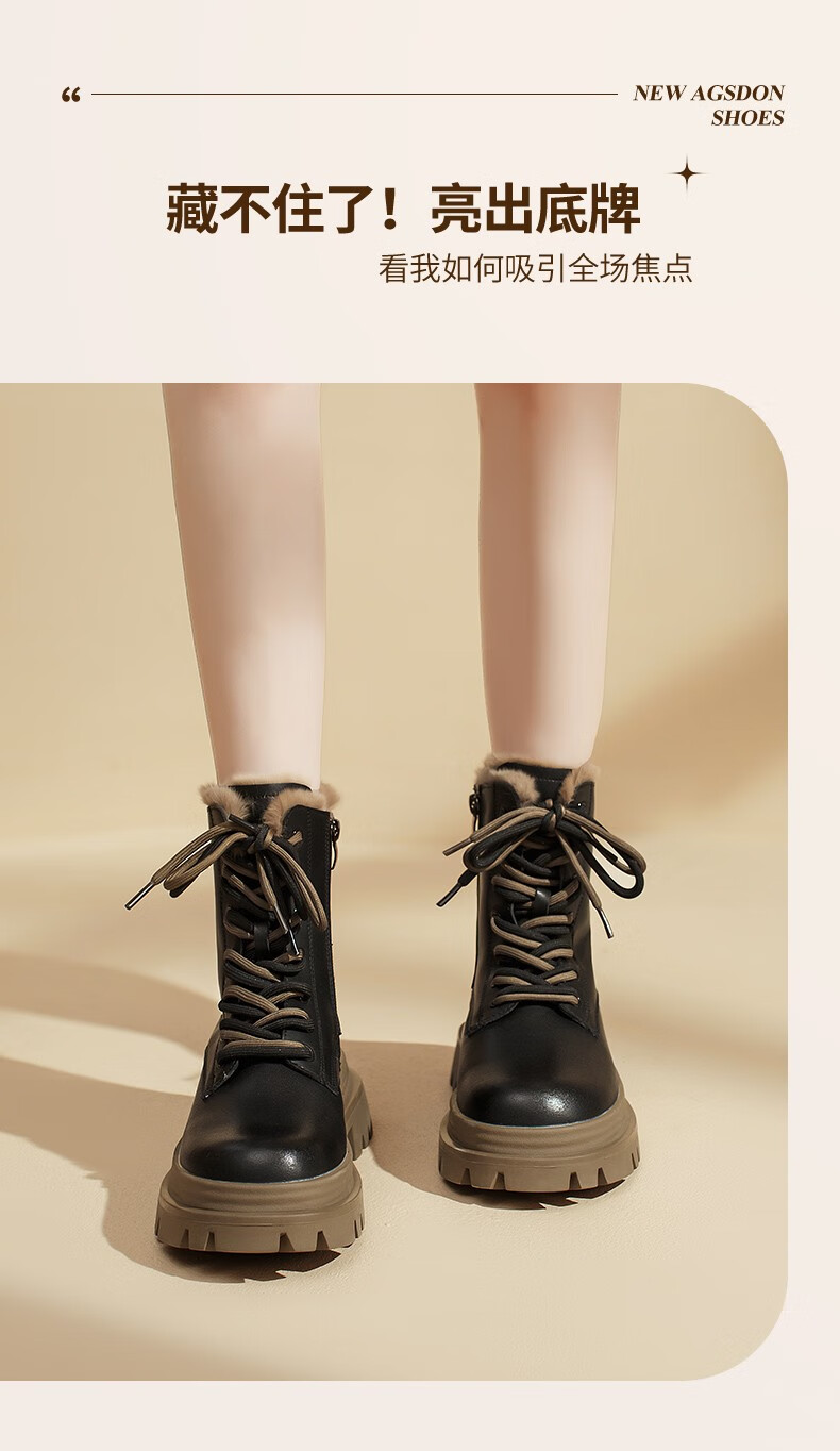Augushiden Martin boots for women 2025 new winter plus velvet warm thick-soled snow boots British style mid-calf short boots cotton shoes 634217 meters khaki thick velvet 37