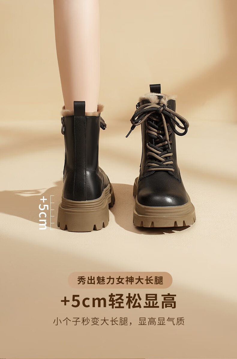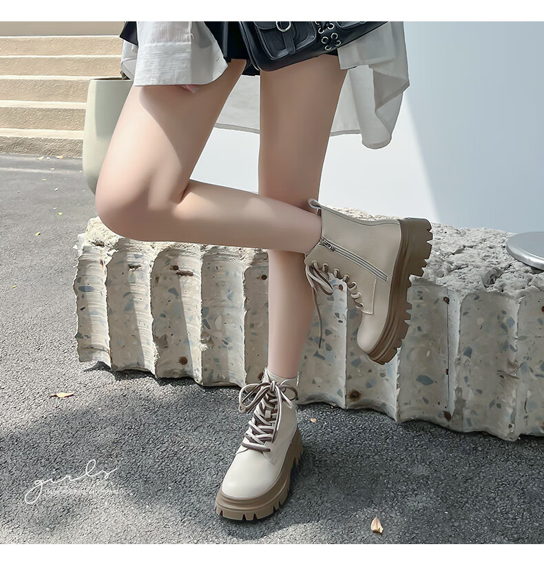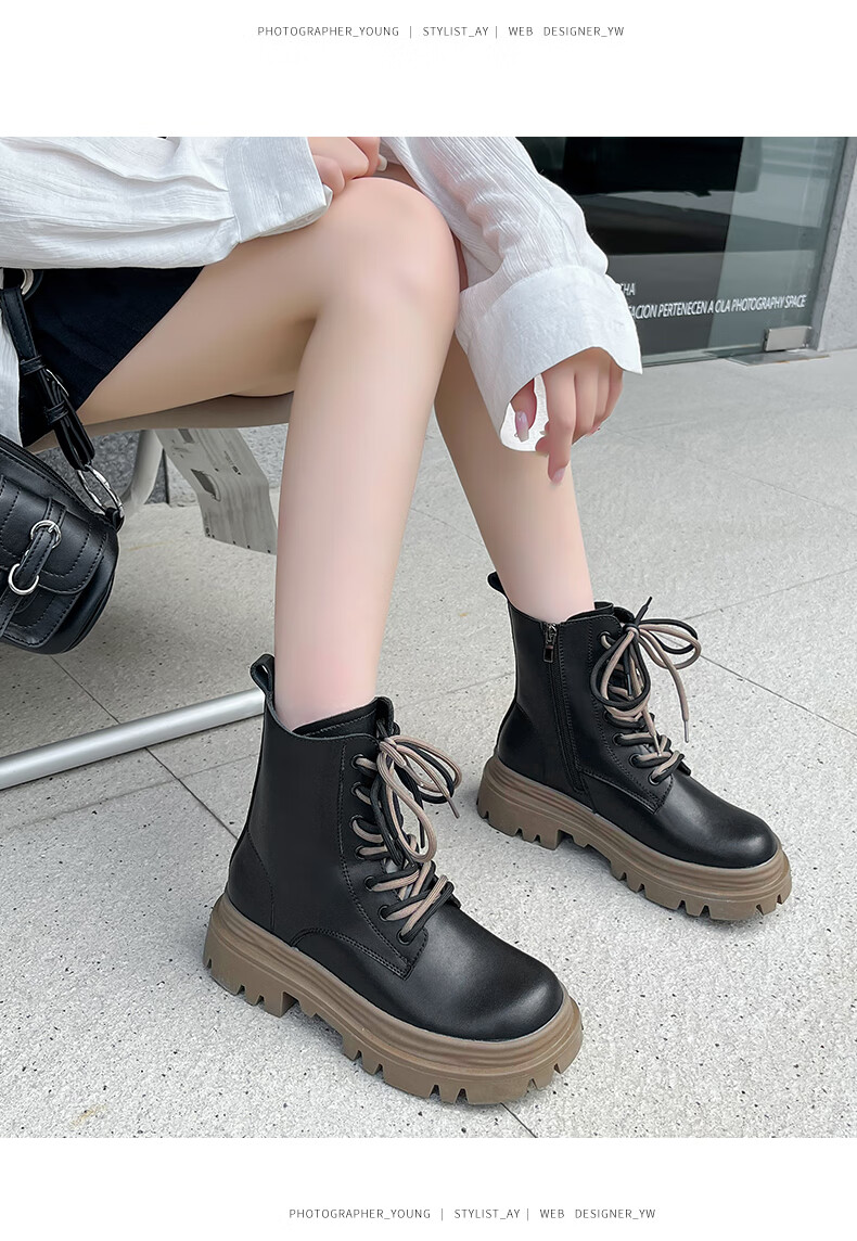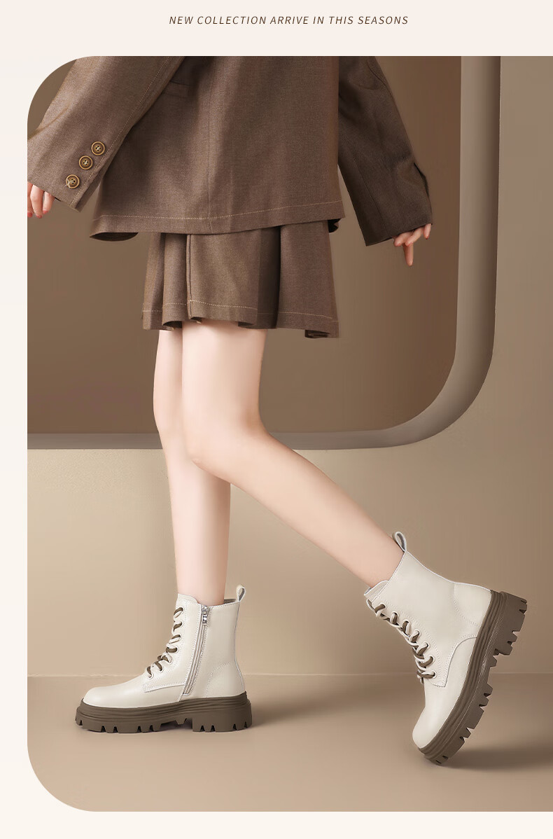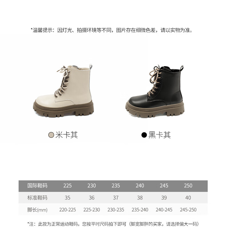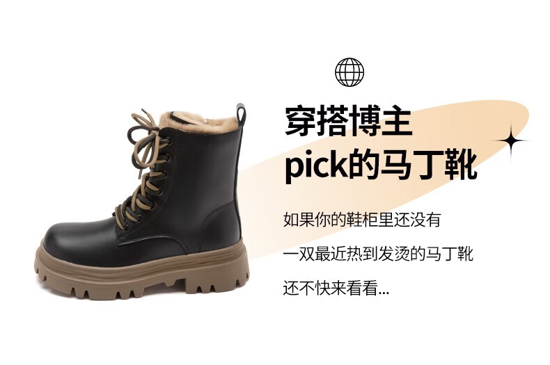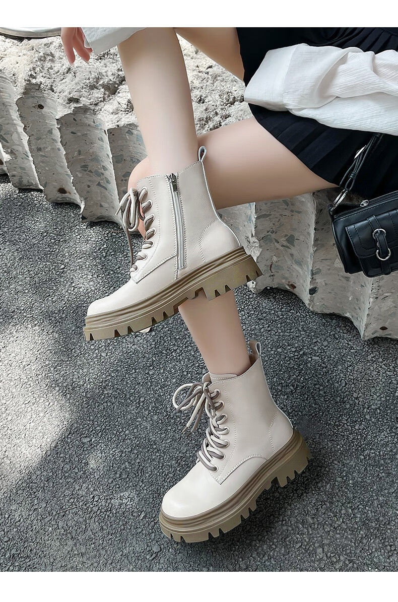 Augushiden Martin boots for women 2025 new winter plus velvet warm thick-soled snow boots British style mid-calf short boots cotton shoes 634217 meters khaki thick velvet 37