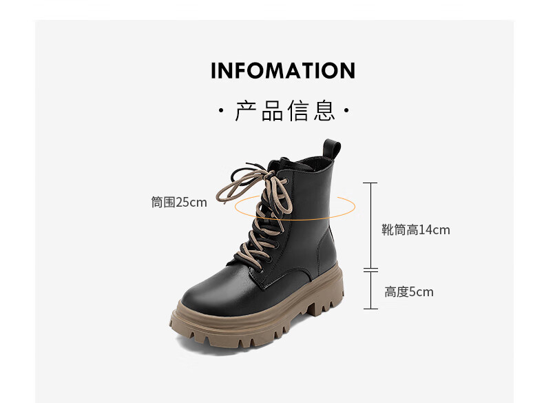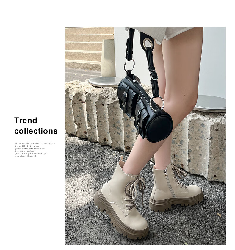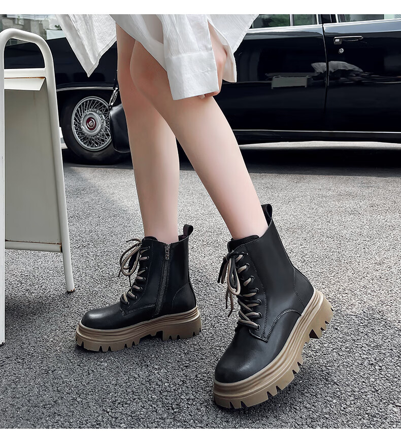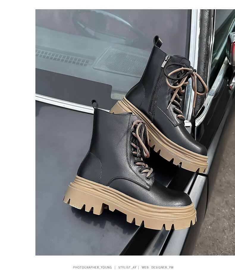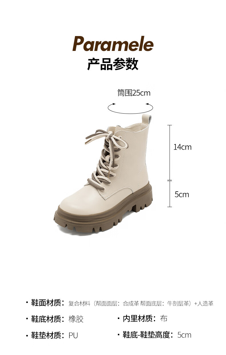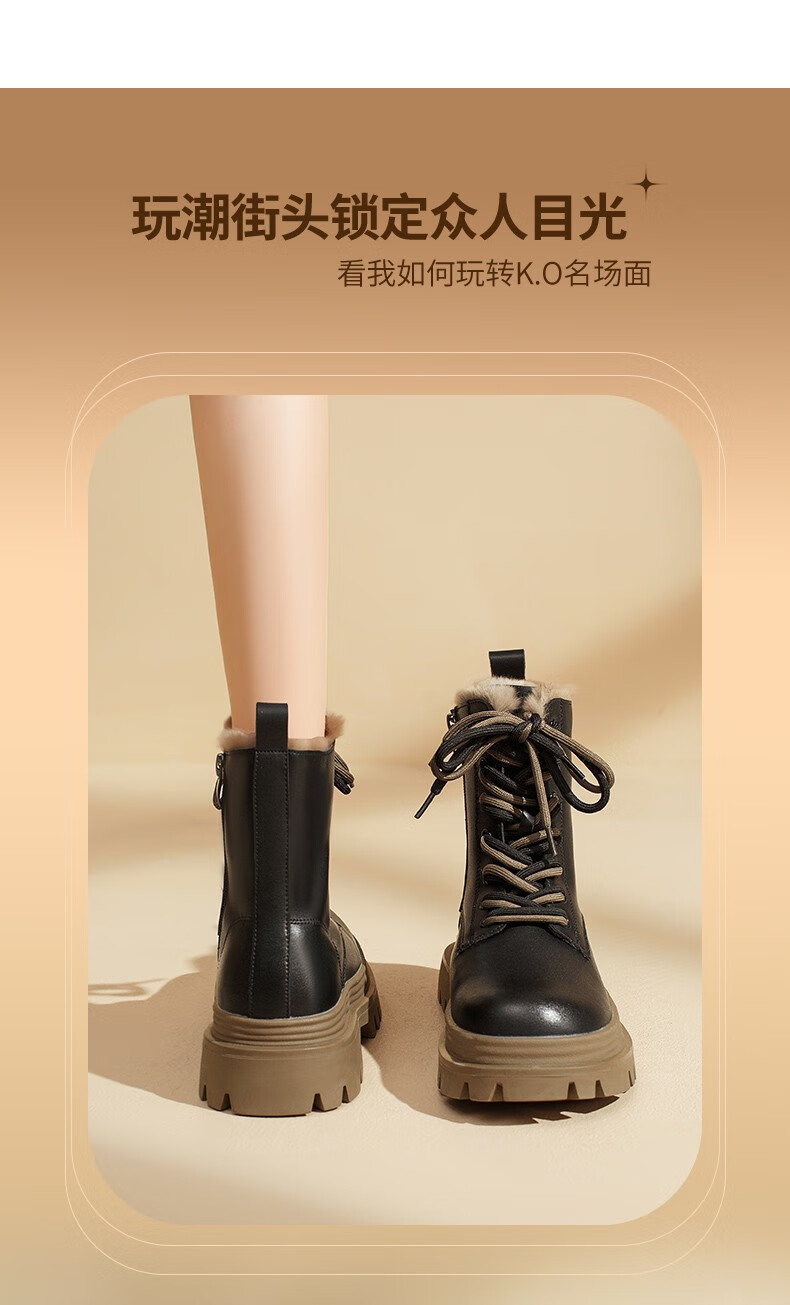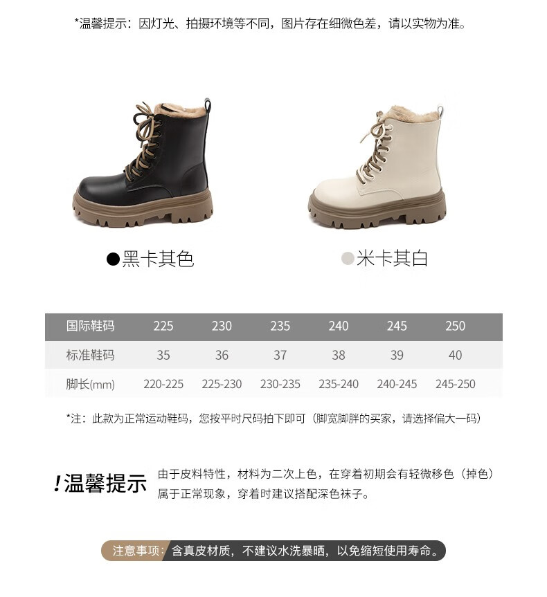 Augushiden Martin boots for women 2025 new winter plus velvet warm thick-soled snow boots British style mid-calf short boots cotton shoes 634217 meters khaki thick velvet 37
