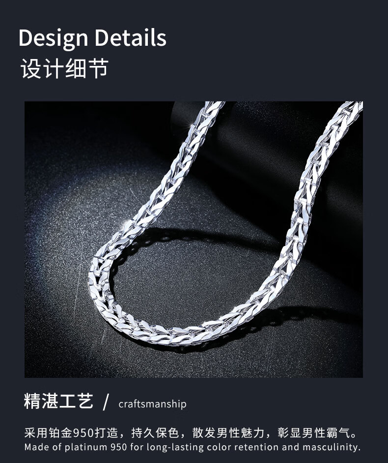 Shengshi Qiyuan pt950 platinum necklace men's genuine platinum necklace platinum snake bone chain keel chain arrow feather necklace platinum 950 weight 60-62 grams long 58-65 cm