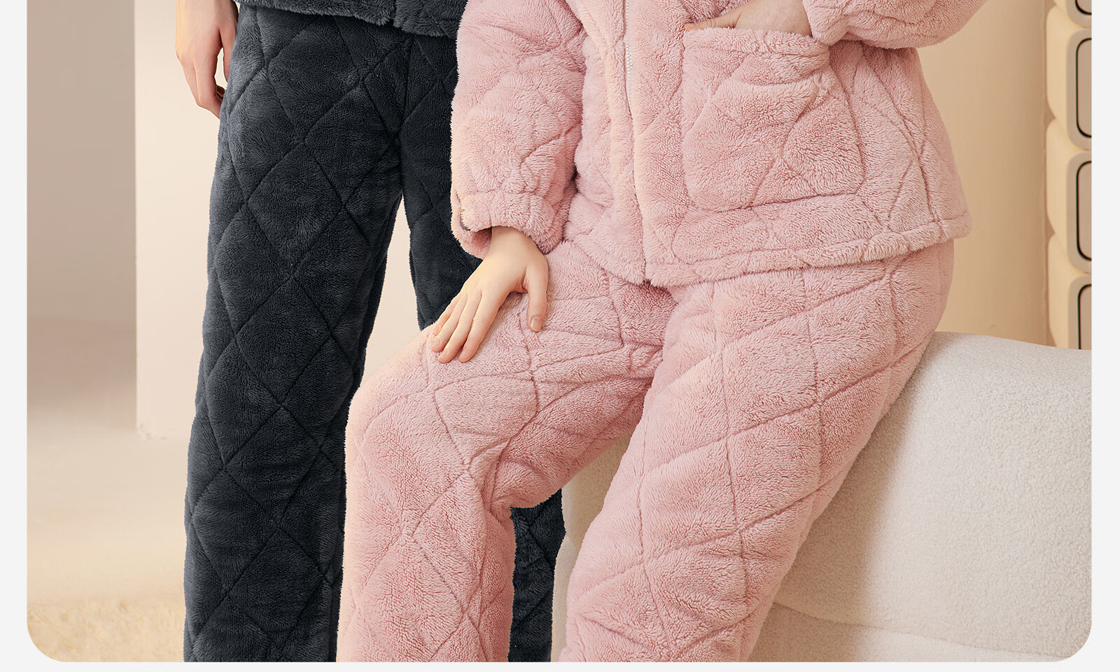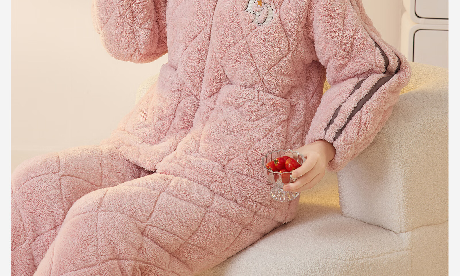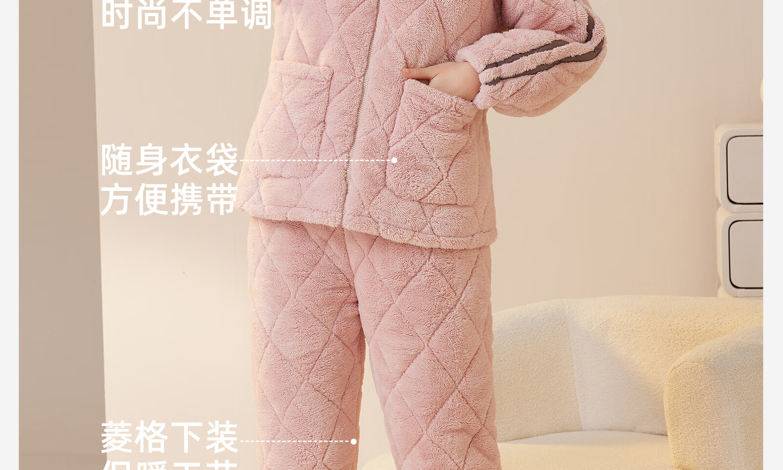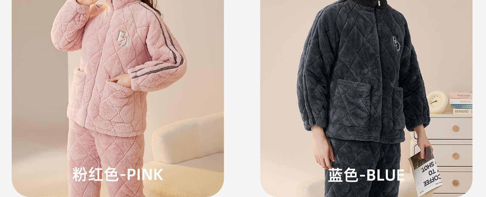 Dalli couple pajamas winter coral velvet three-layer quilted thickened warm flannel sandwich casual home wear set for women T8237113-011-pink women L