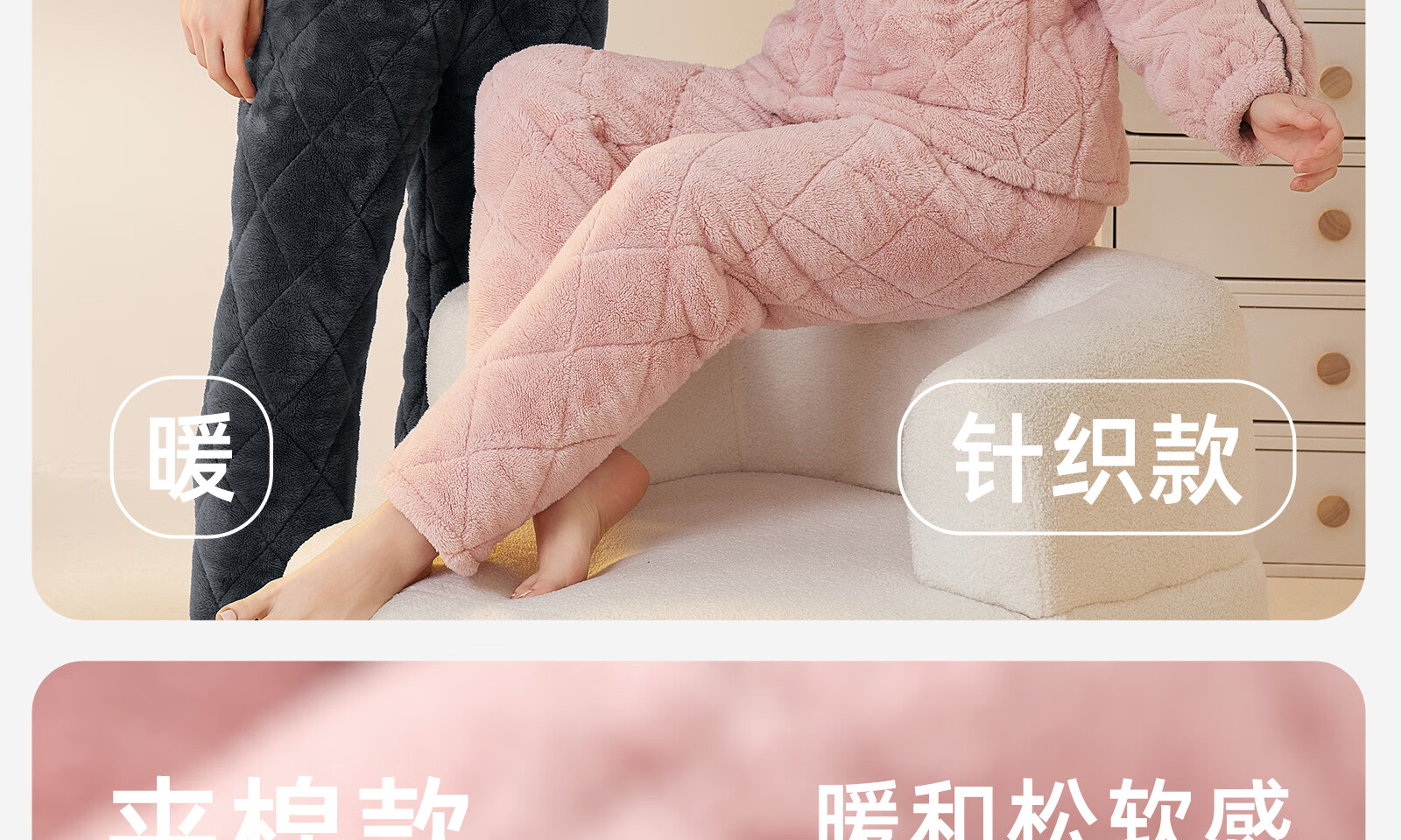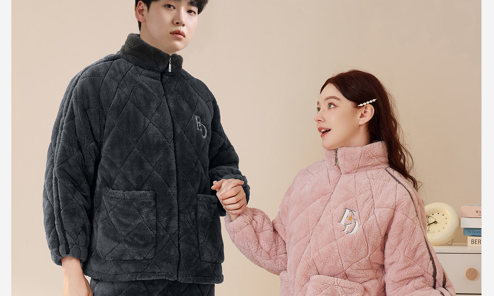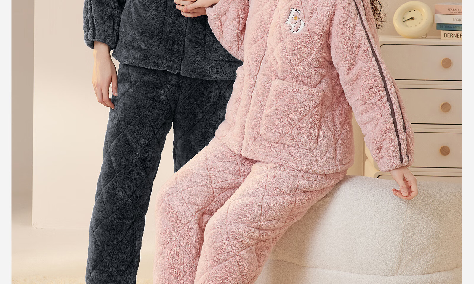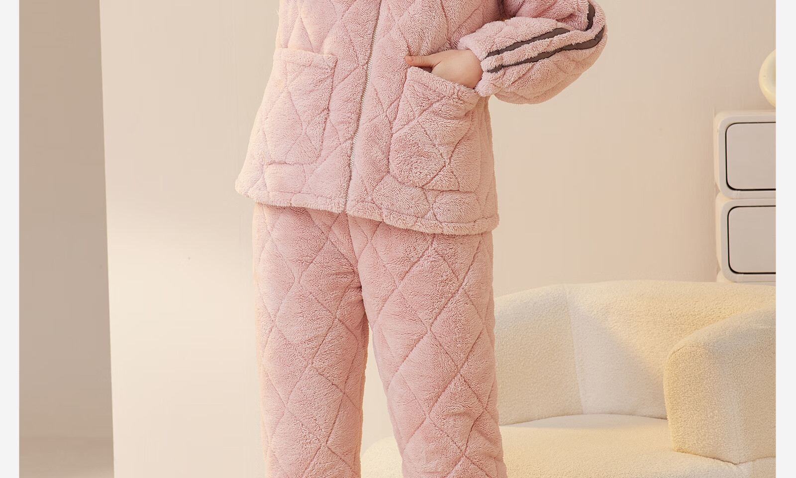 Dalli couple pajamas winter coral velvet three-layer quilted thickened warm flannel sandwich casual home wear set for women T8237113-011-pink women L