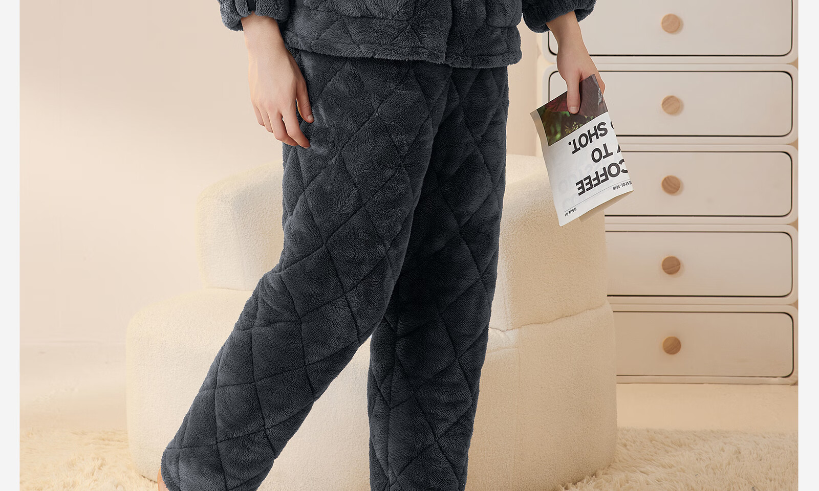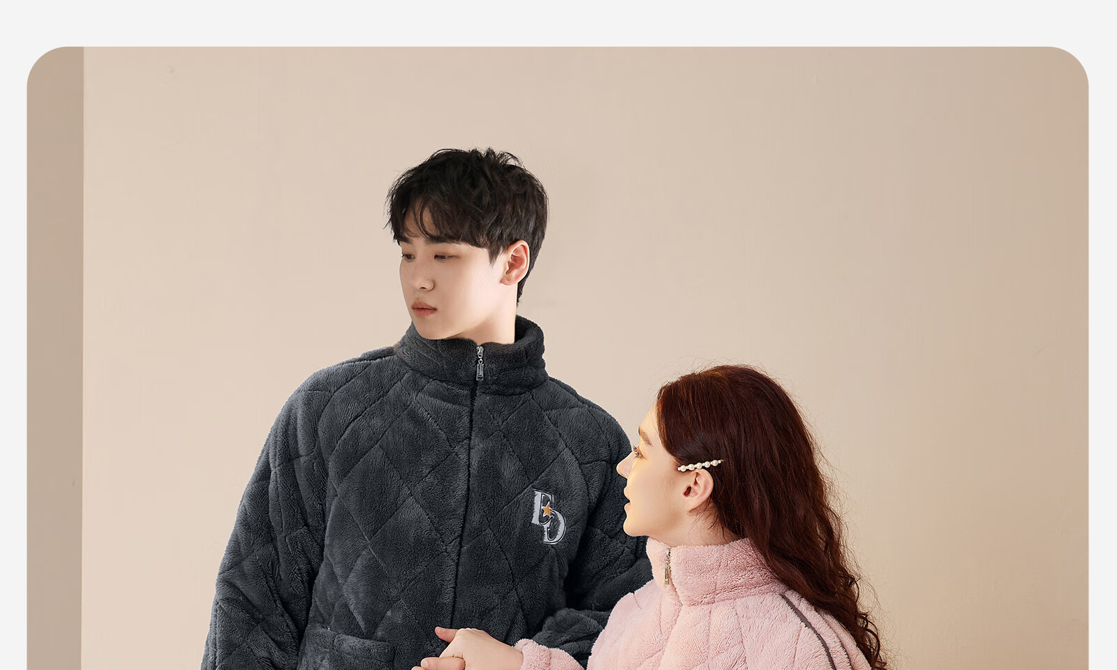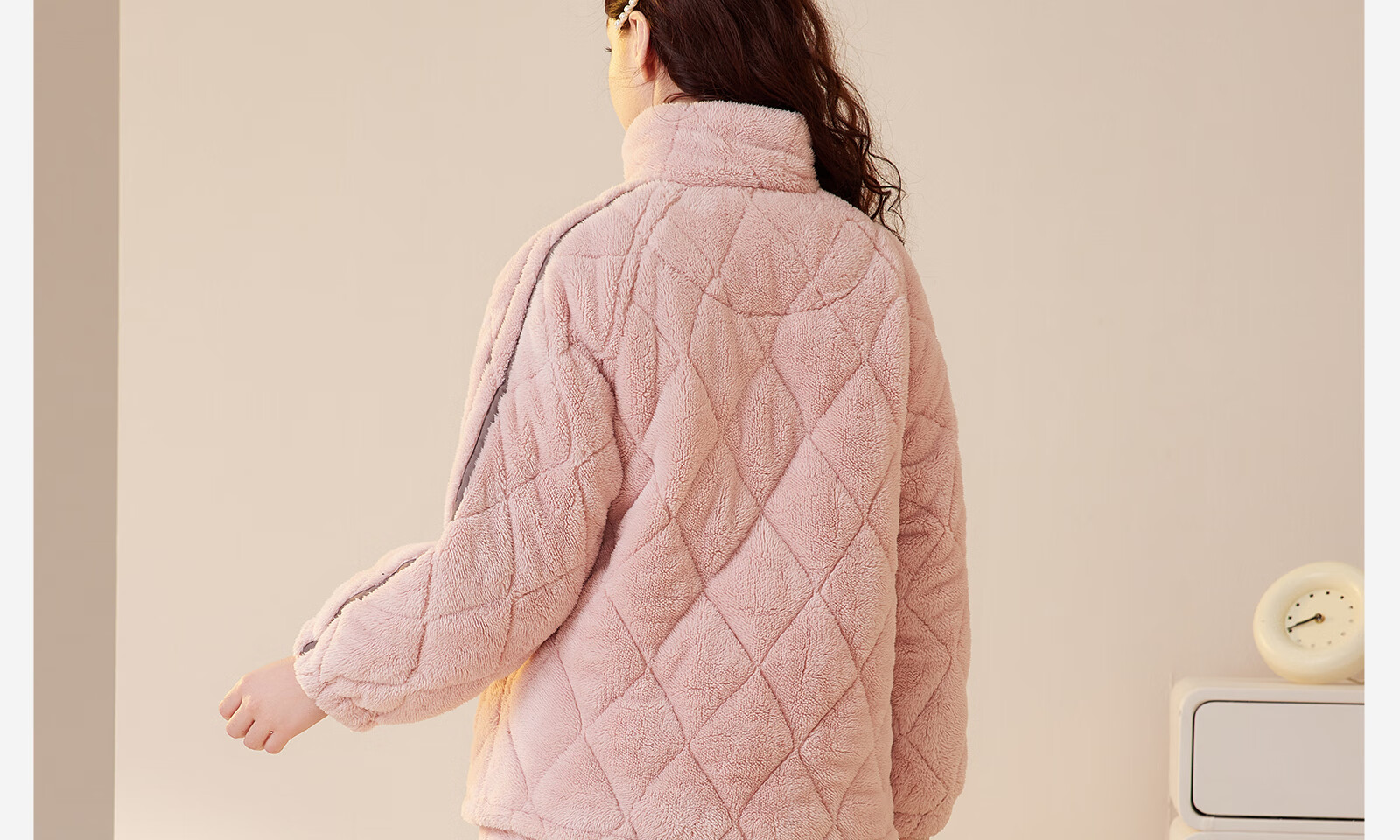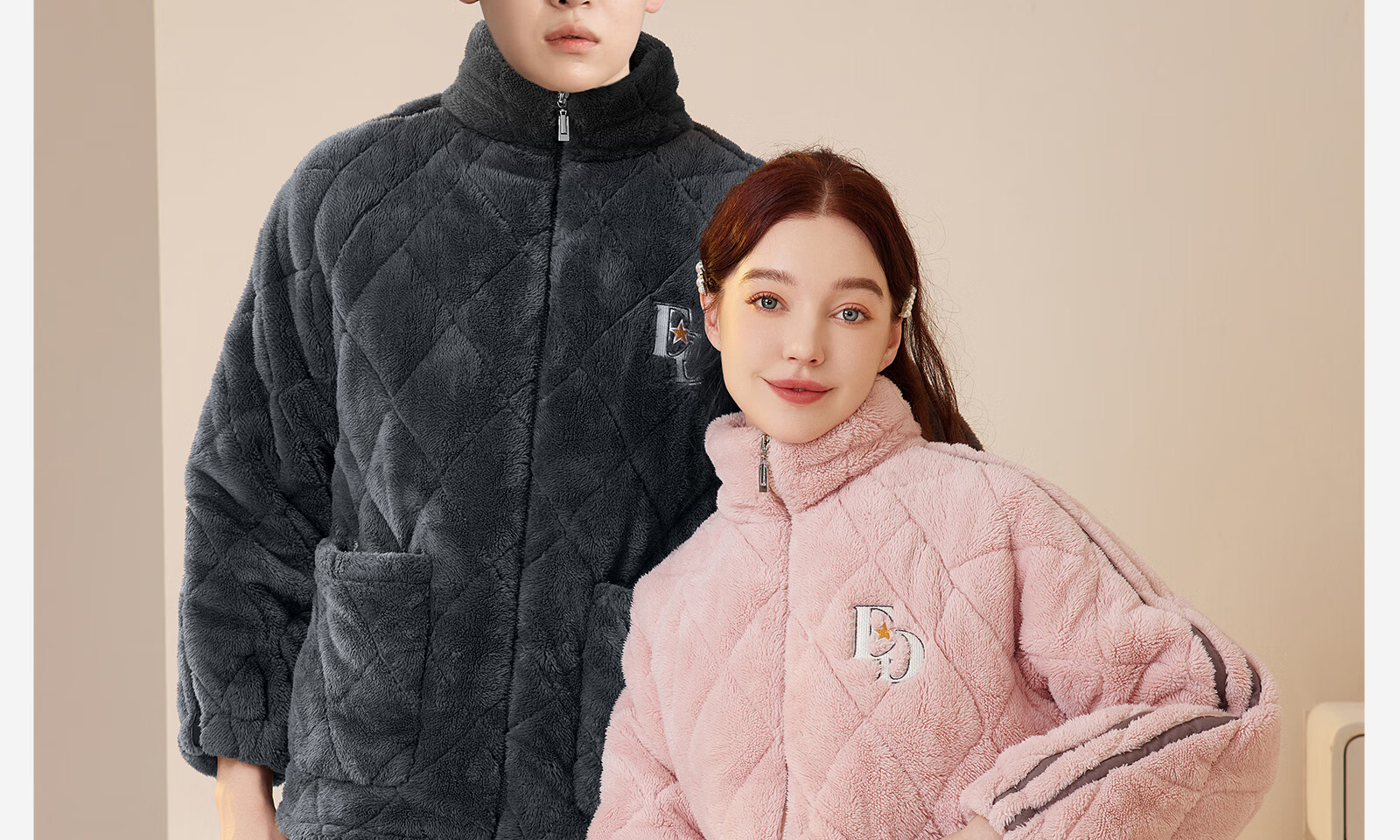 Dalli couple pajamas winter coral velvet three-layer quilted thickened warm flannel sandwich casual home wear set for women T8237113-011-pink women L