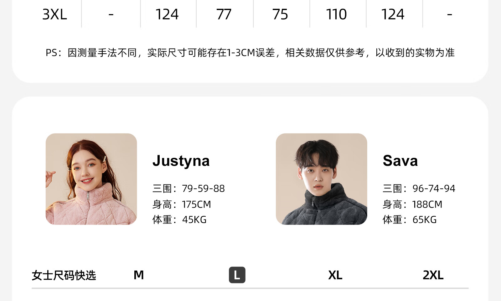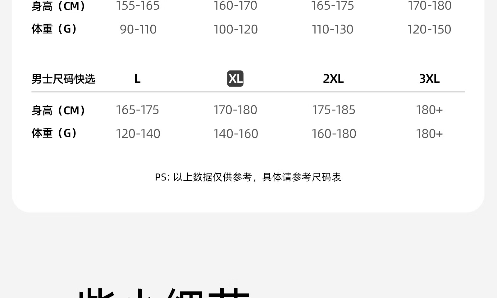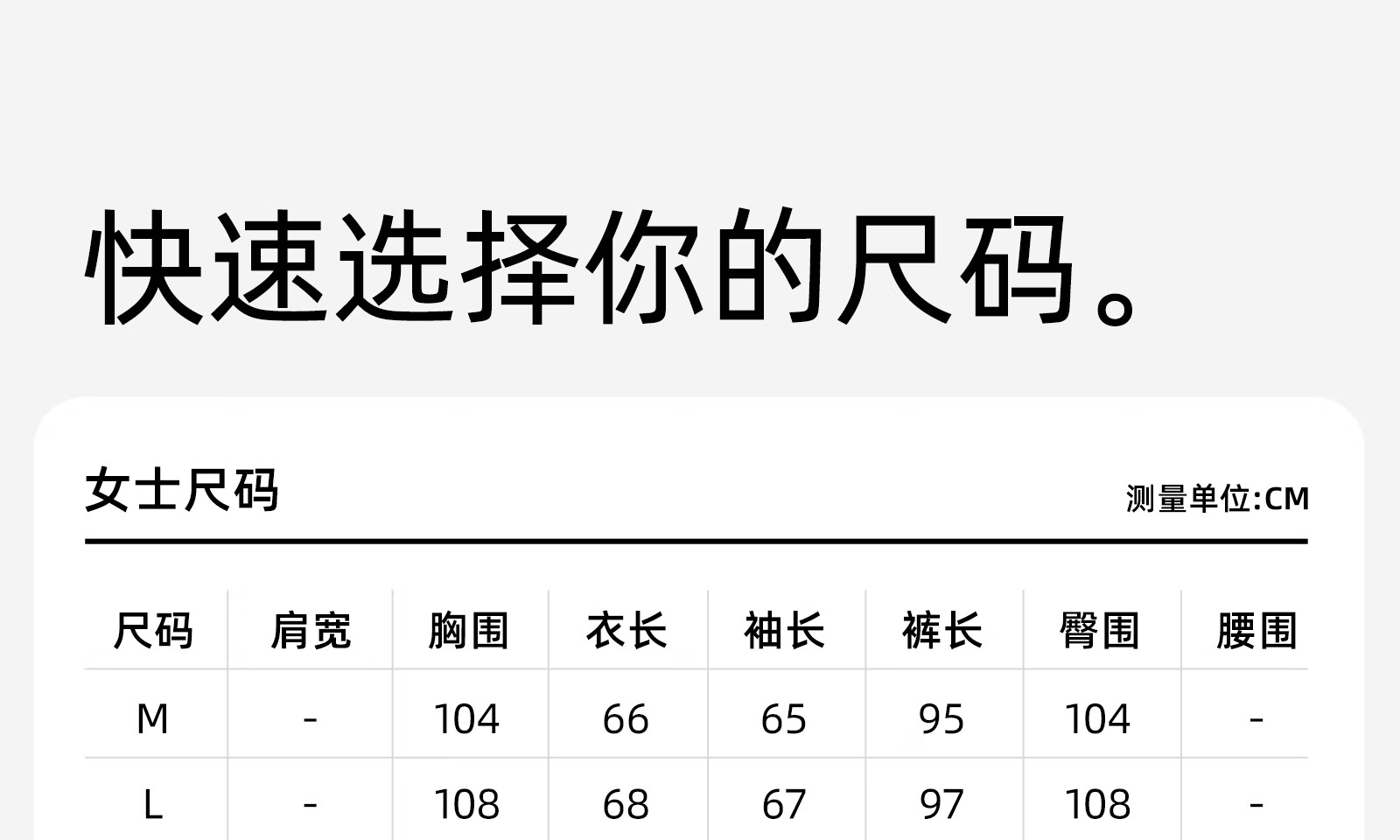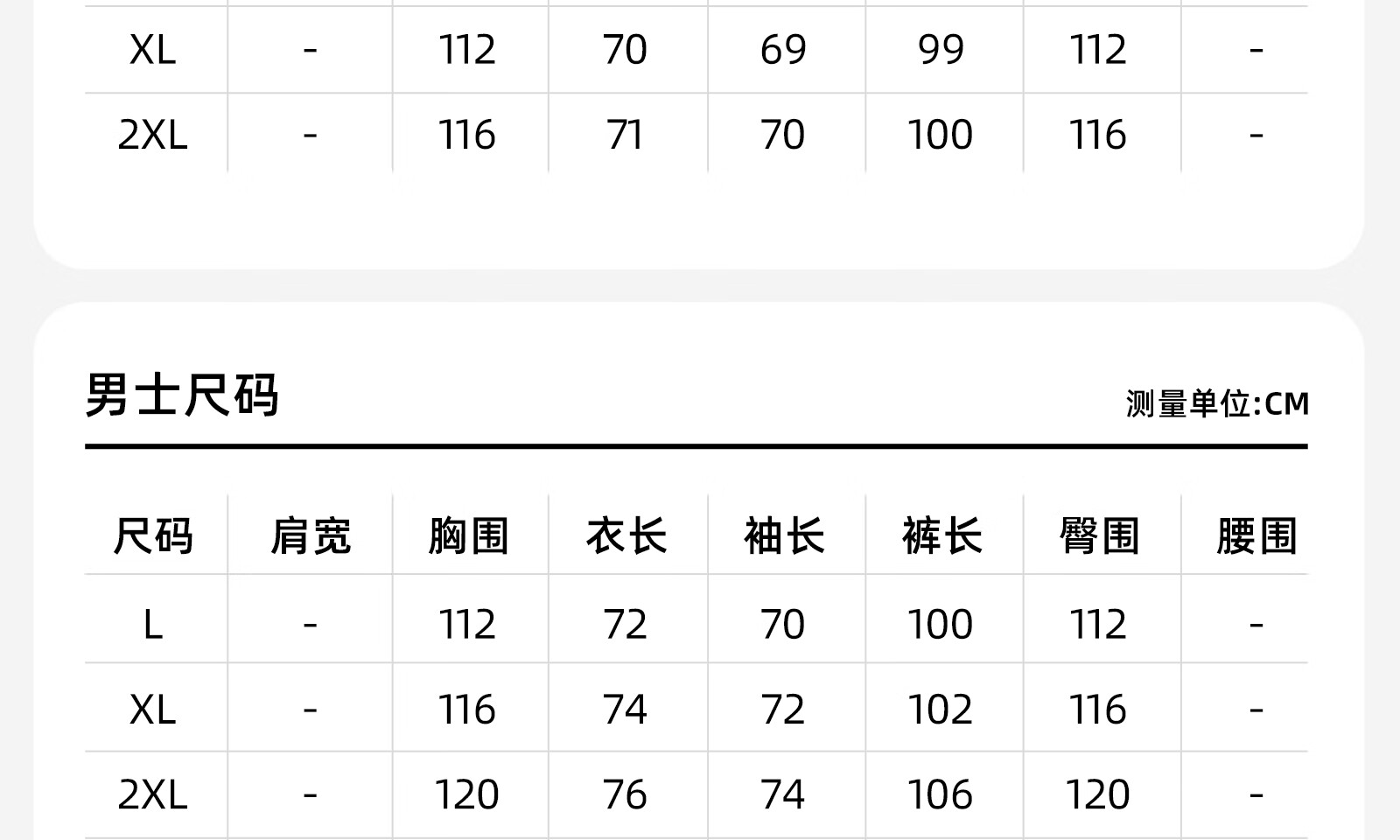 China (cm) 160-165/84-86 165-170 / 88-90 167-172 / 92-96 168-173 / 98-102 170-176 / 106-110