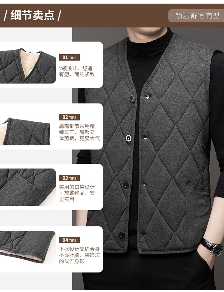 Pierre Cardin winter wool vest men's fur one-piece vest vest for dad middle-aged thickened warm vest MJ01 dark gray XL 175 recommended 135-150Jin Jin equals 0.5 kg