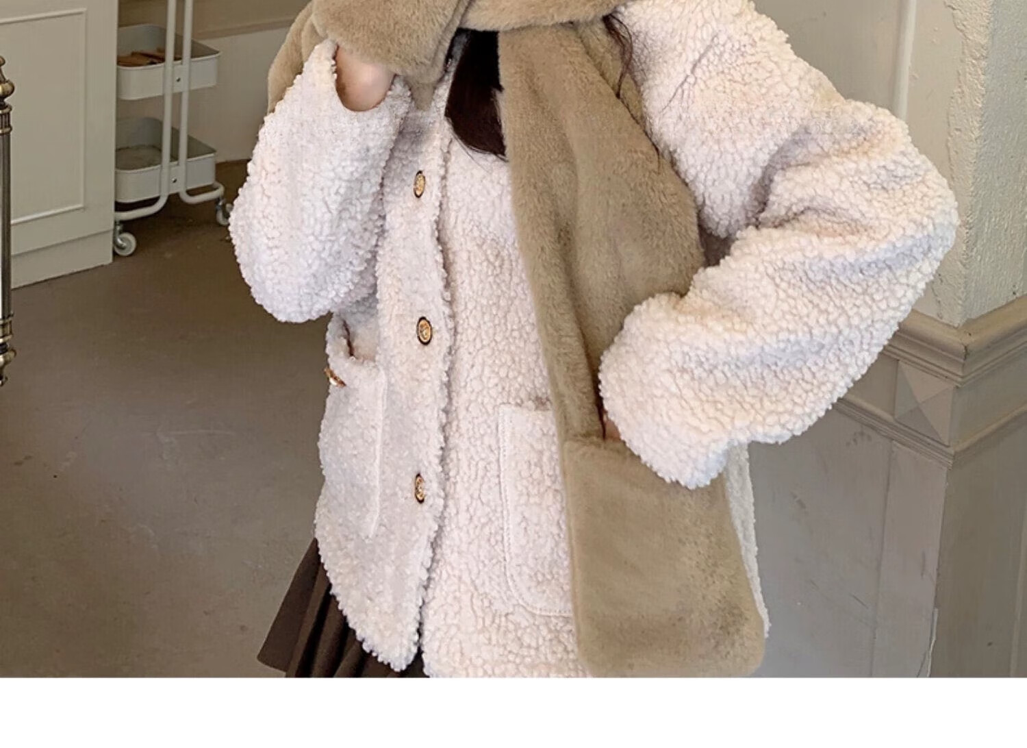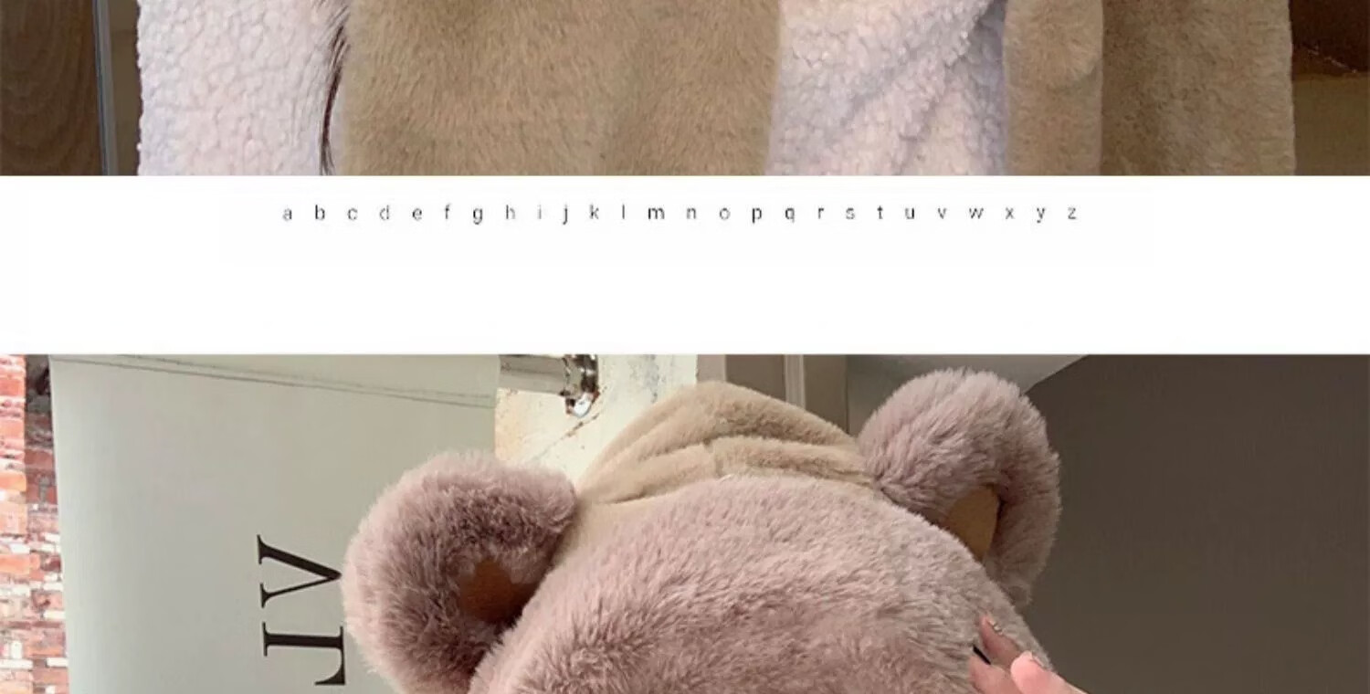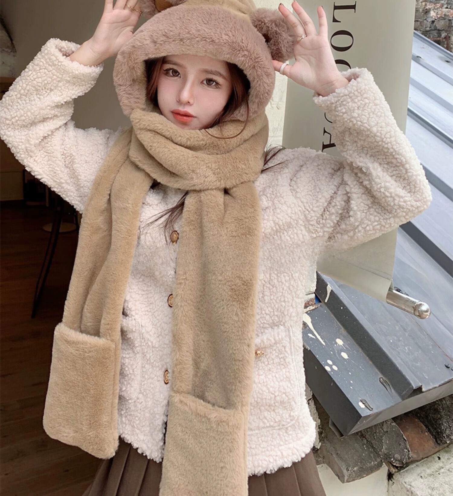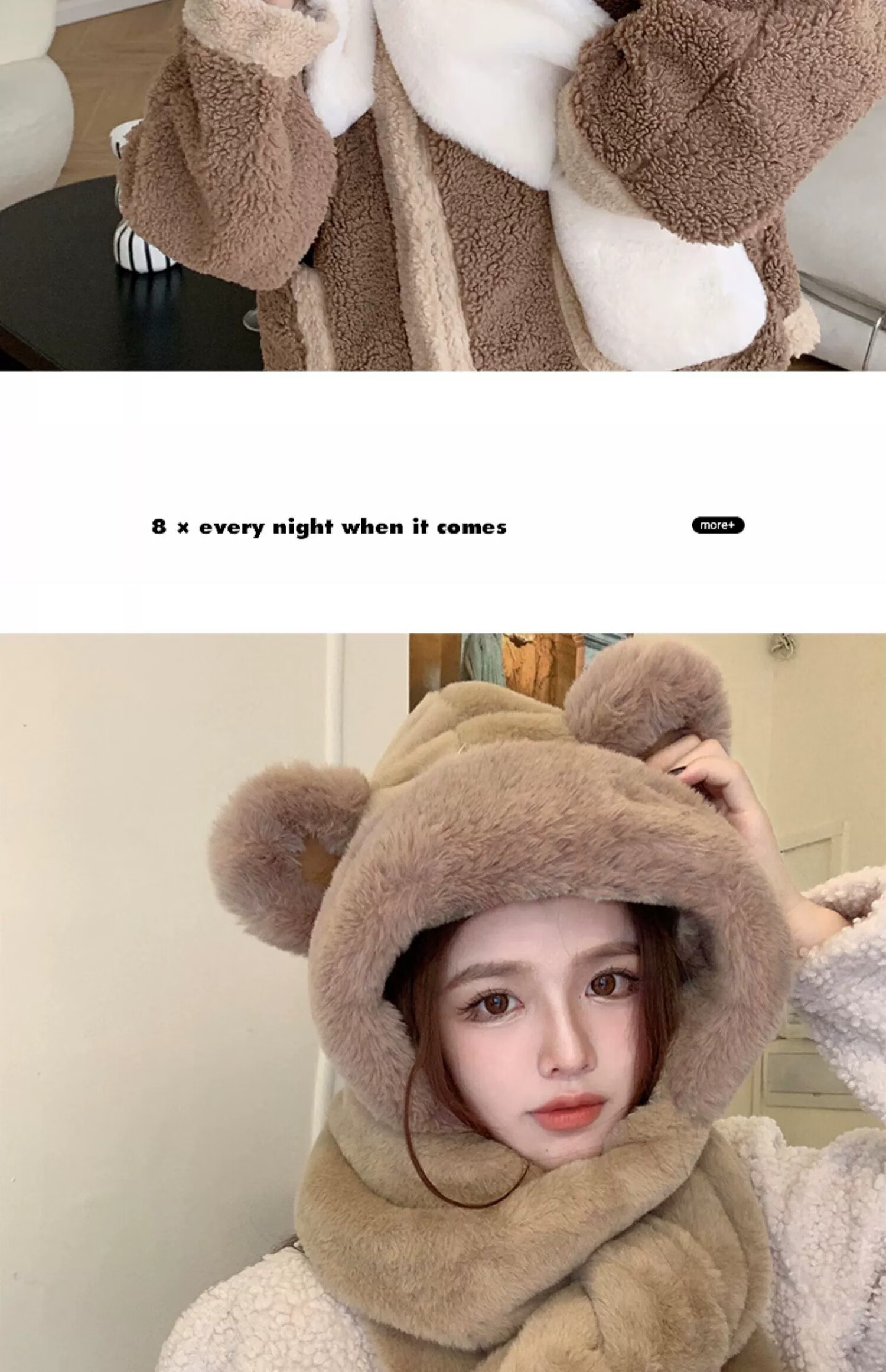 QIPEIER Bear Hat Autumn and Winter Women's Scarf Gloves One-piece Hooded Winter Scarf Cute Warm Plush Winter Three-piece Set BNTZ-464 White