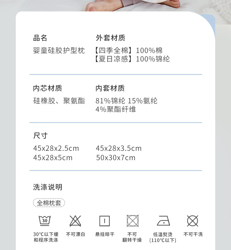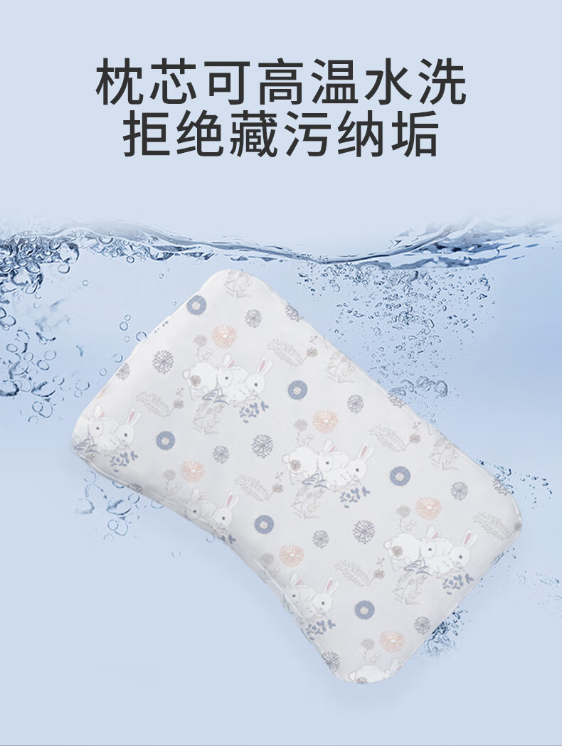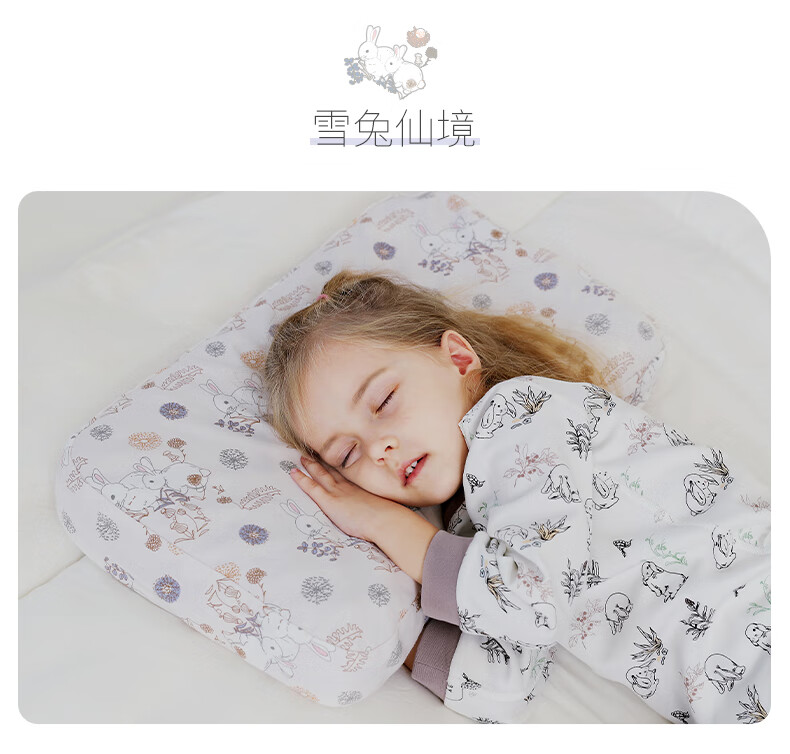 Little tiny children's pillow baby silicone pillow baby 6-12 months and above 0 to 1-3-6-10 years old primary school students washable full pillow washable Snow Rabbit Wonderland scientific pillow height 2.5cm recommended 3 months - 1 year old