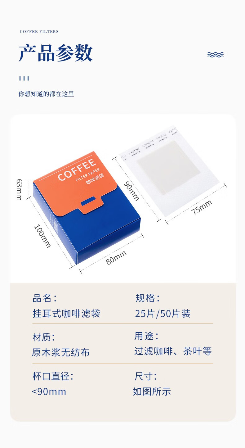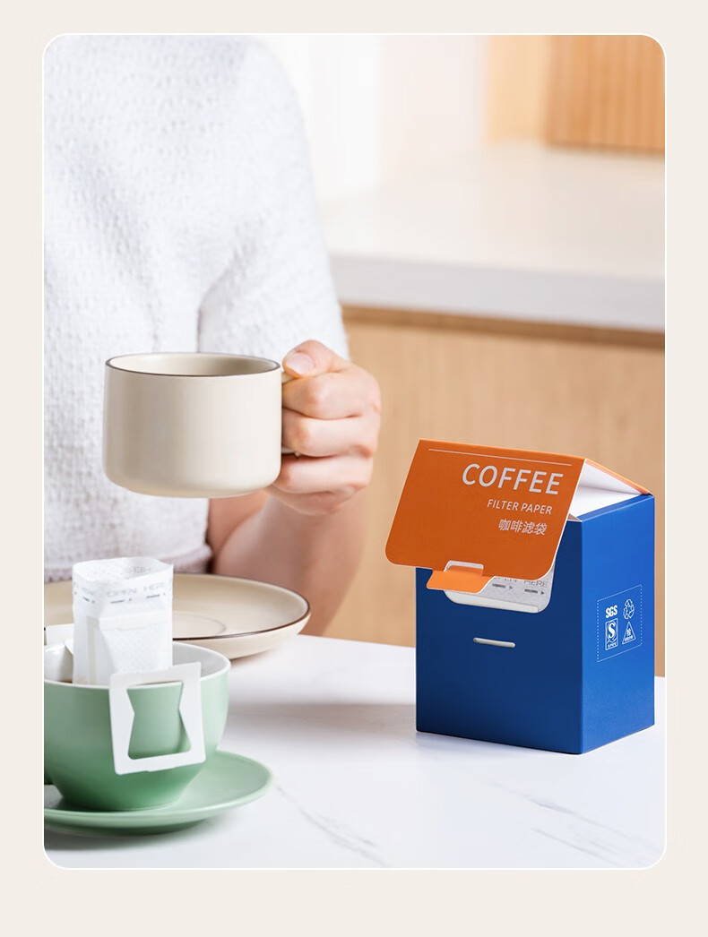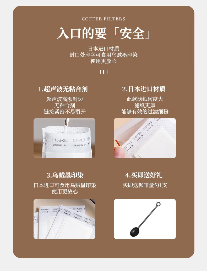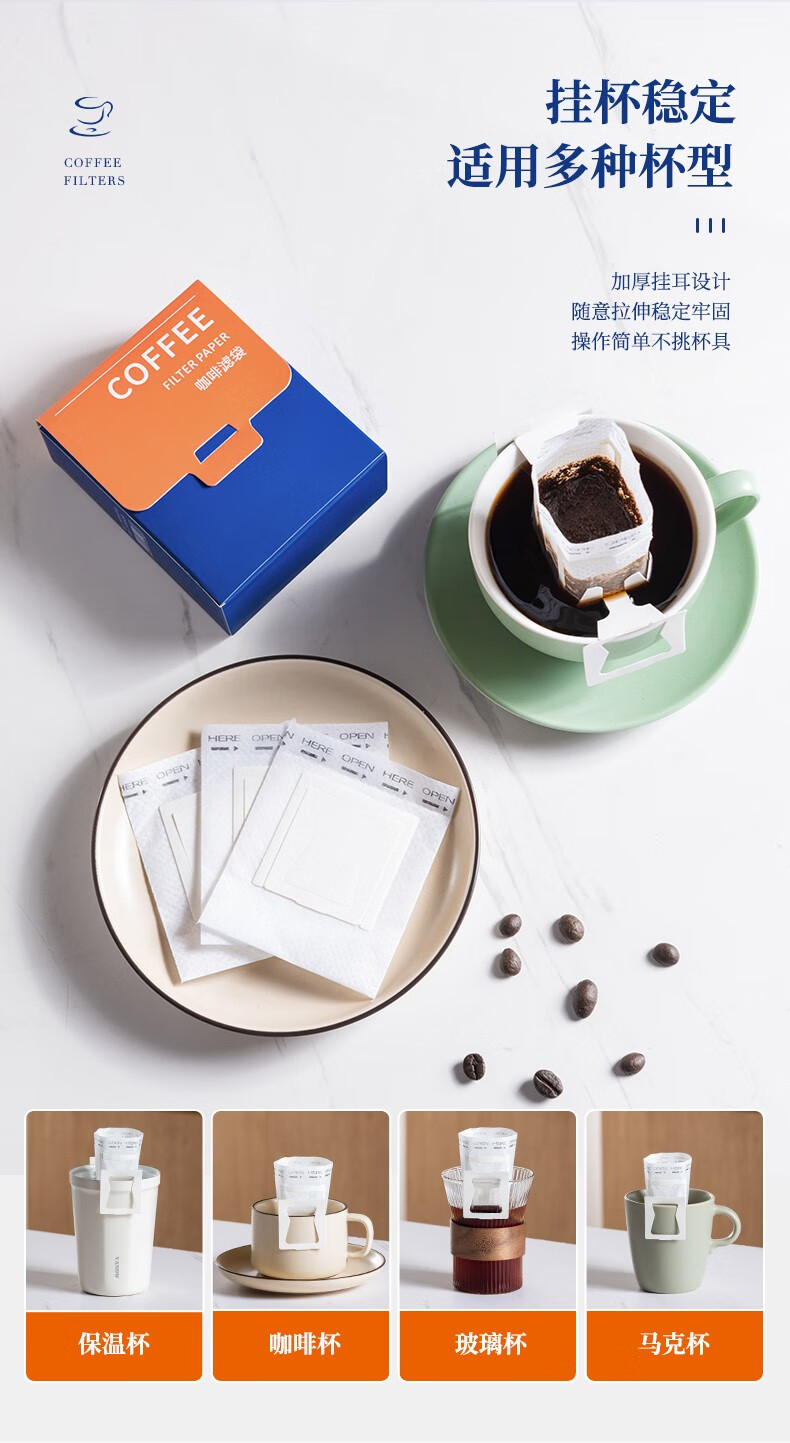 TIANXI hanging ear coffee filter paper portable drip type hand brewing filter cup filter paper bag filter coffee powder filter bag 100 pieces + measuring spoon