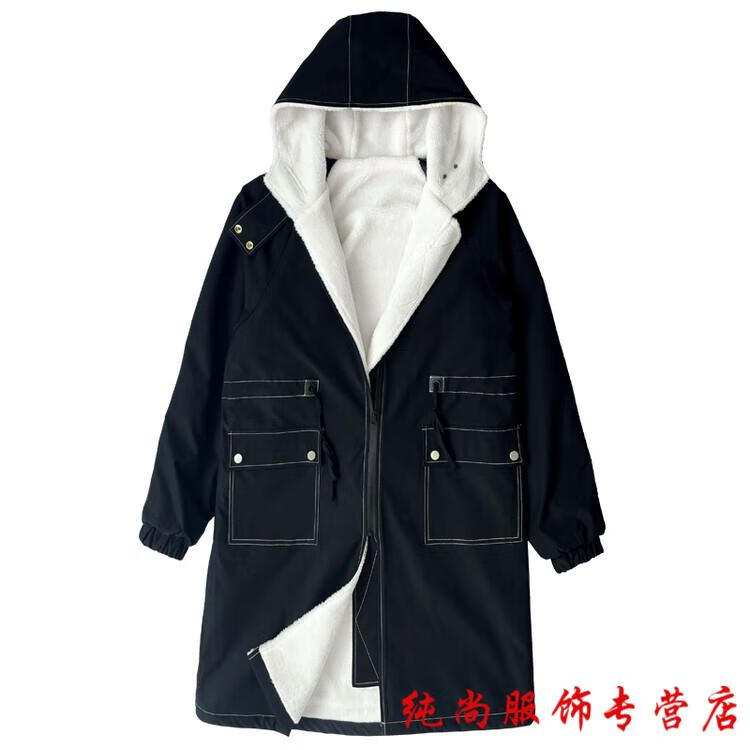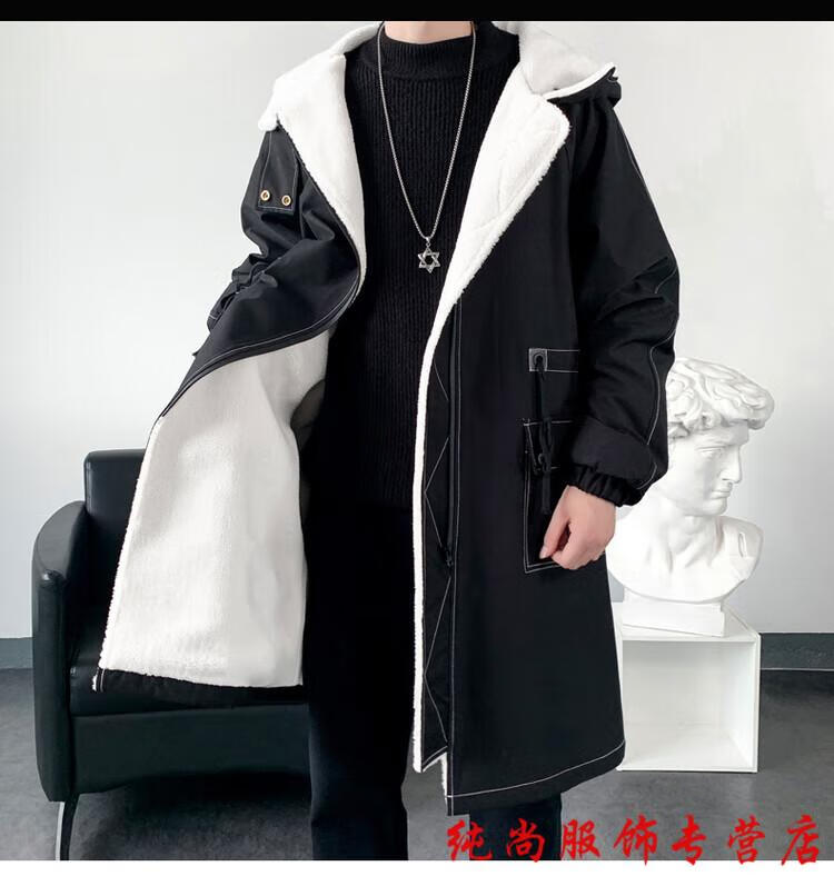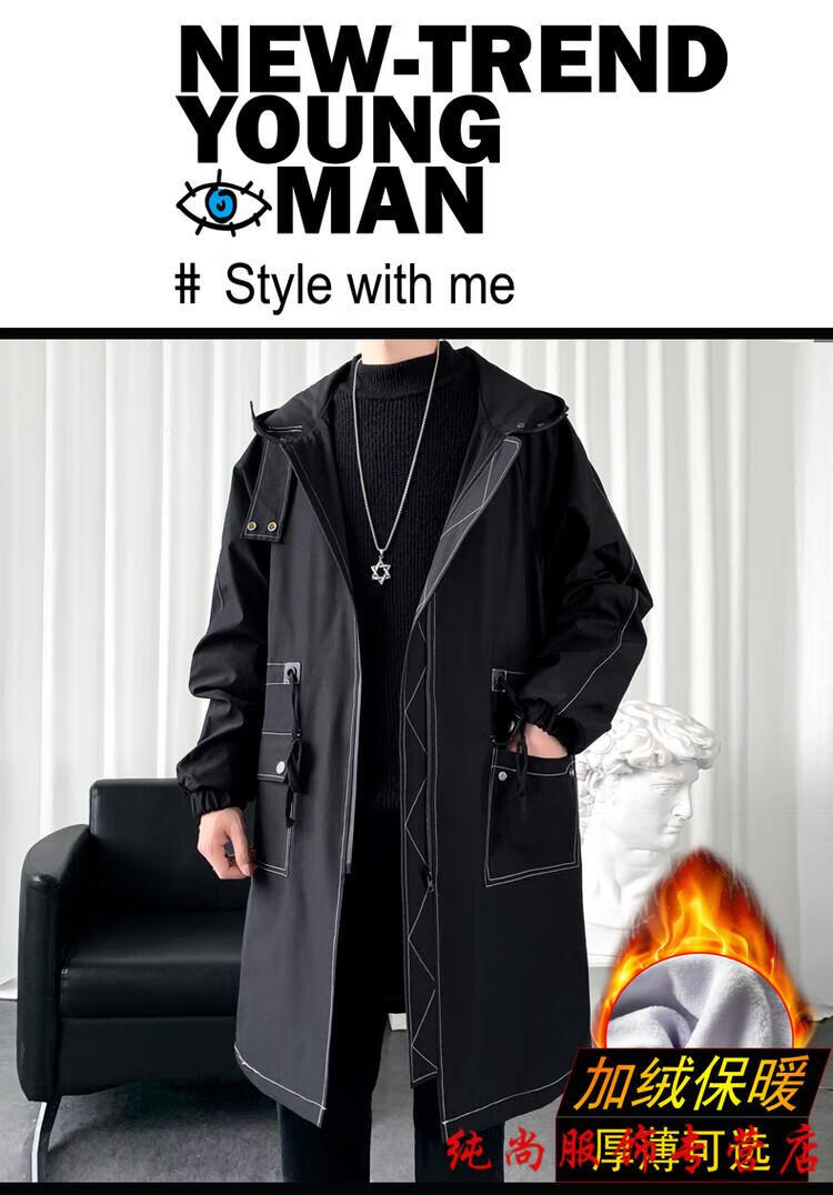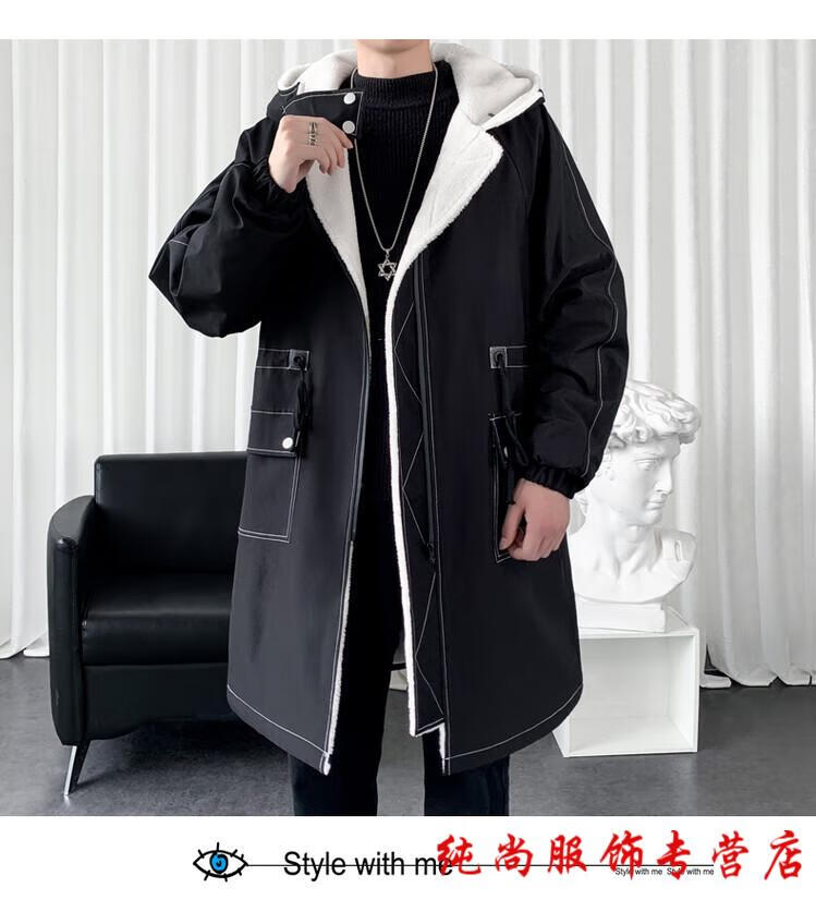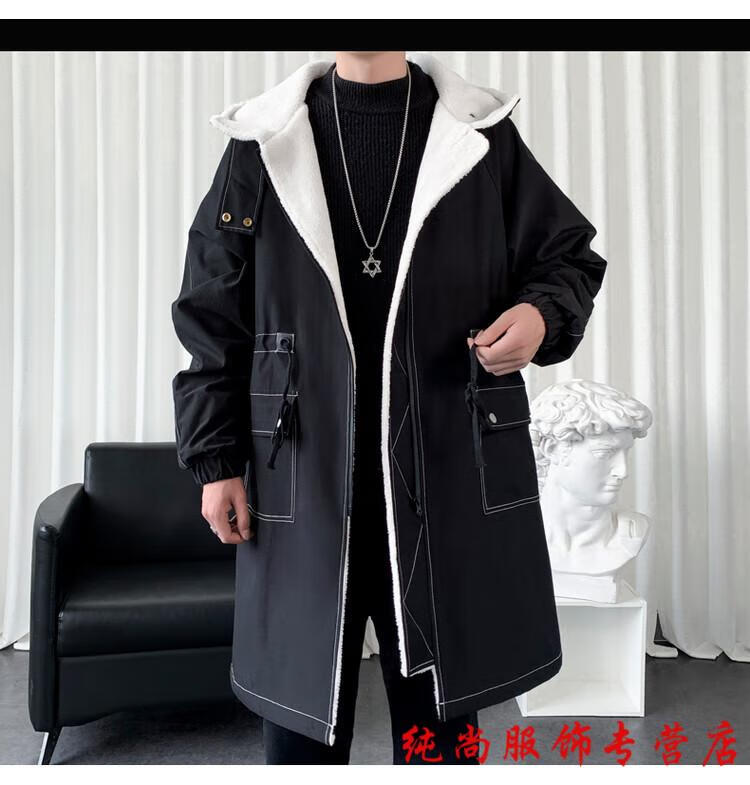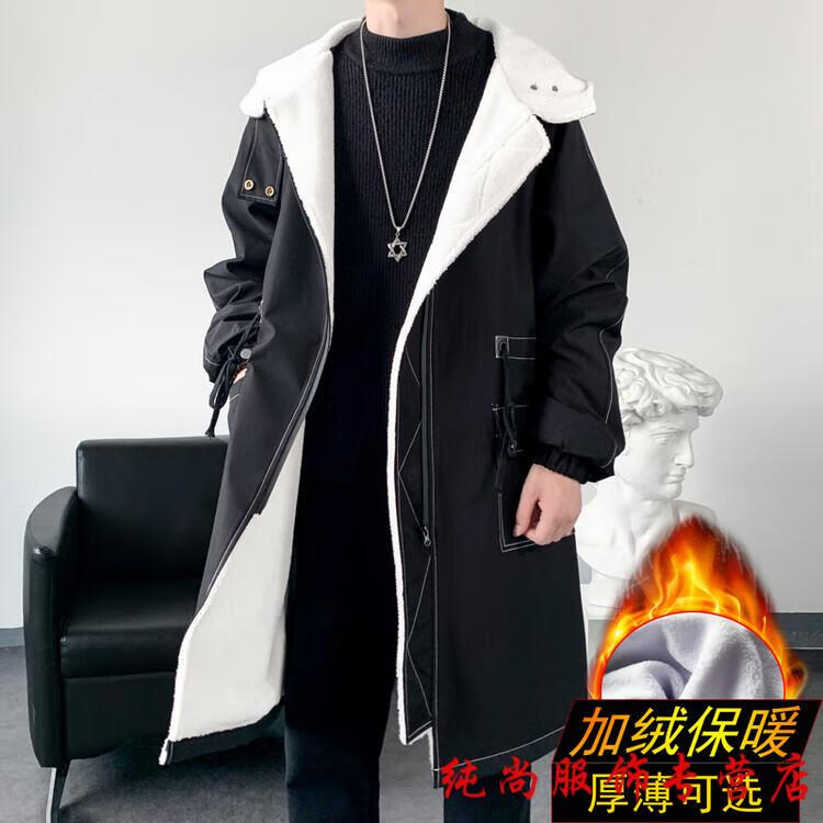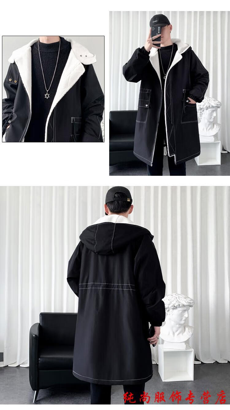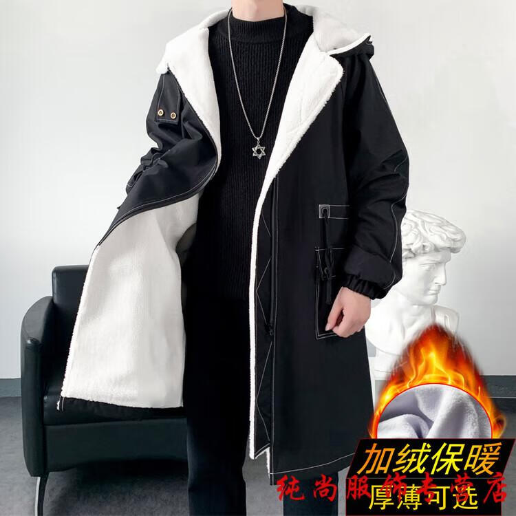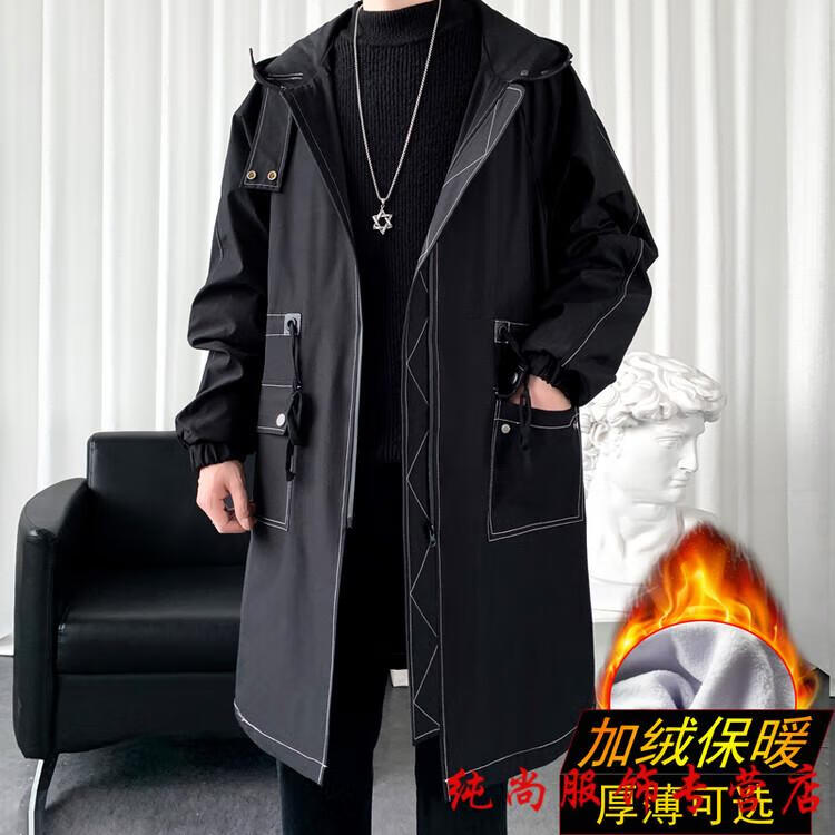 Playboy (PLAYBOY) winter men's mid-length velvet thickened hooded windbreaker men's Korean version slim large size warm coat coat trendy black velvet 3XL